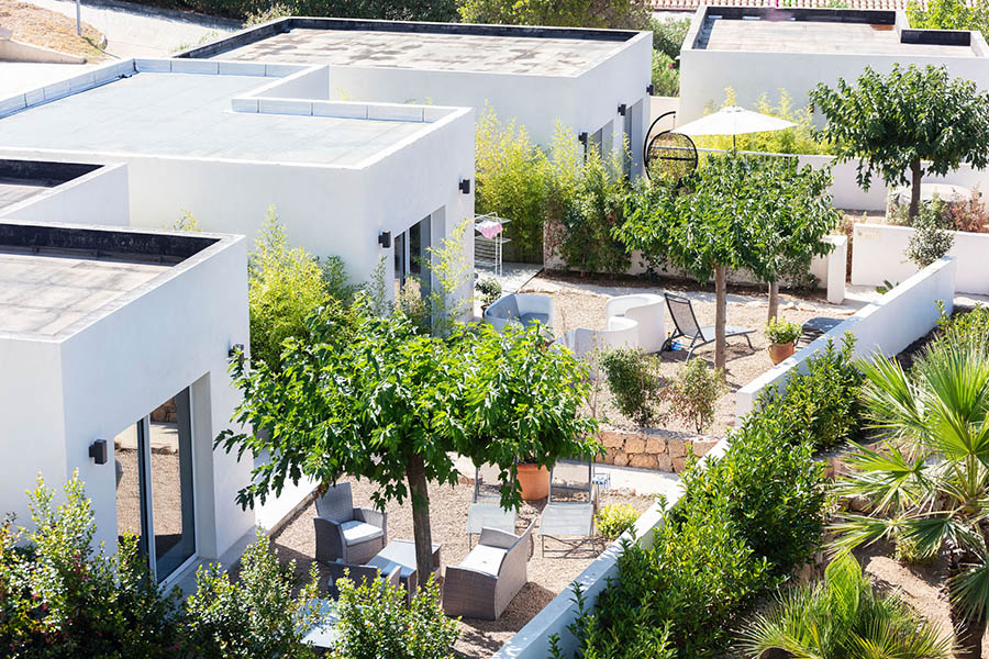 La résidence propose 30 appartements modernes (studios et duplex), 9 suites élégantes et 2 maisons au charme unique : Hibiscus et Lentisque, toutes deux dotées d'une cuisine équipée.