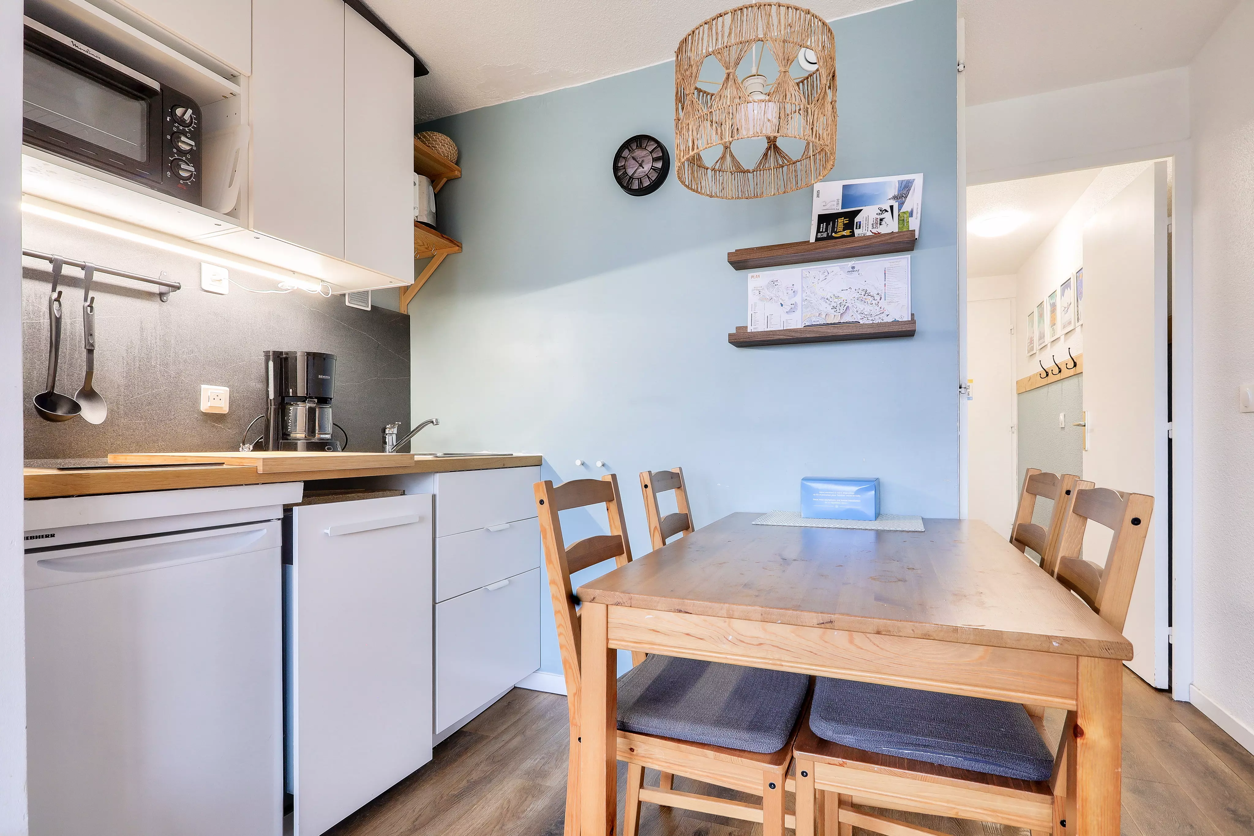 Votre location de vacances comporte : 1 séjour cosy et chaleureux, 1 chambre, 1 coin cuisine moderne, 1 salle de bains et 1 WC.