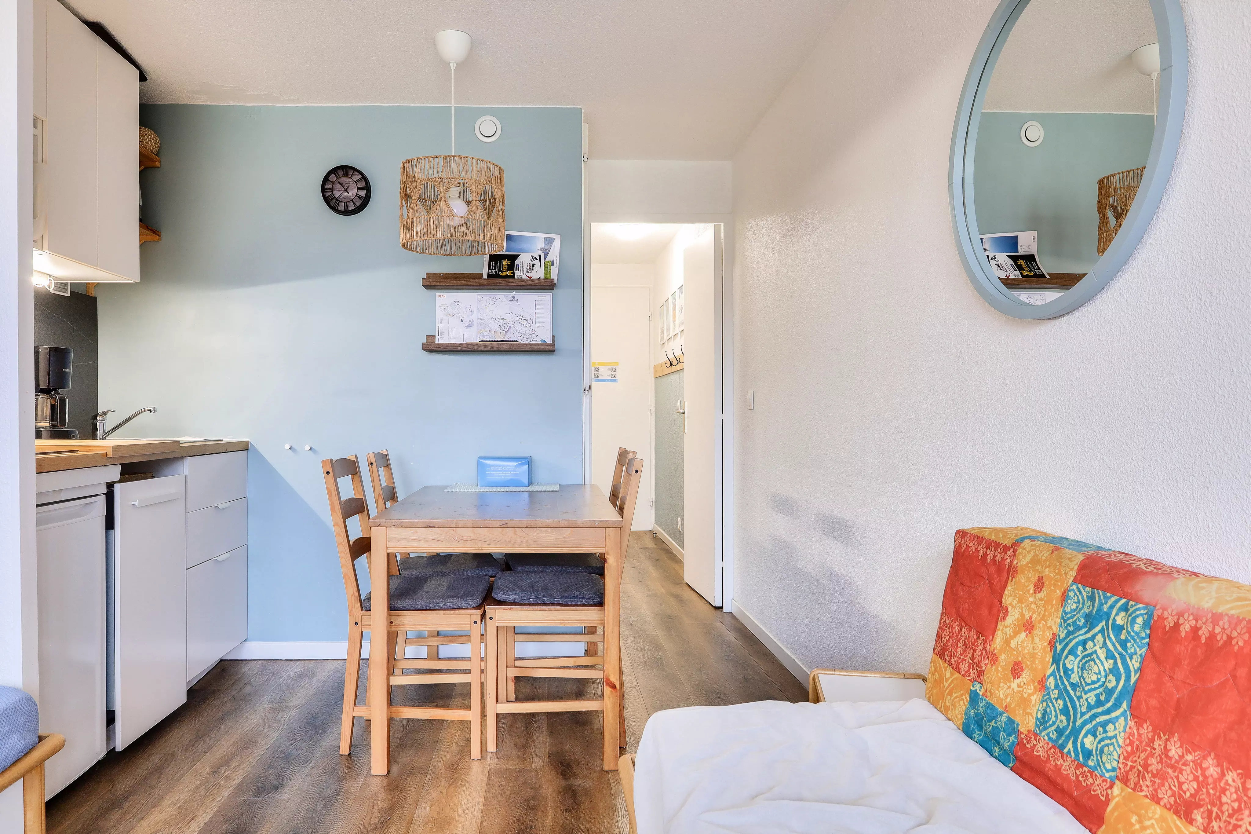 Votre location de vacances comporte : 1 séjour chaleureux, 1 coin cuisine équipé, 1 chambre joliment décoré, 1 salle de bains et 1 WC.