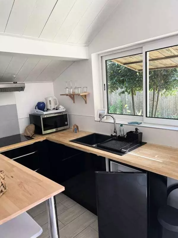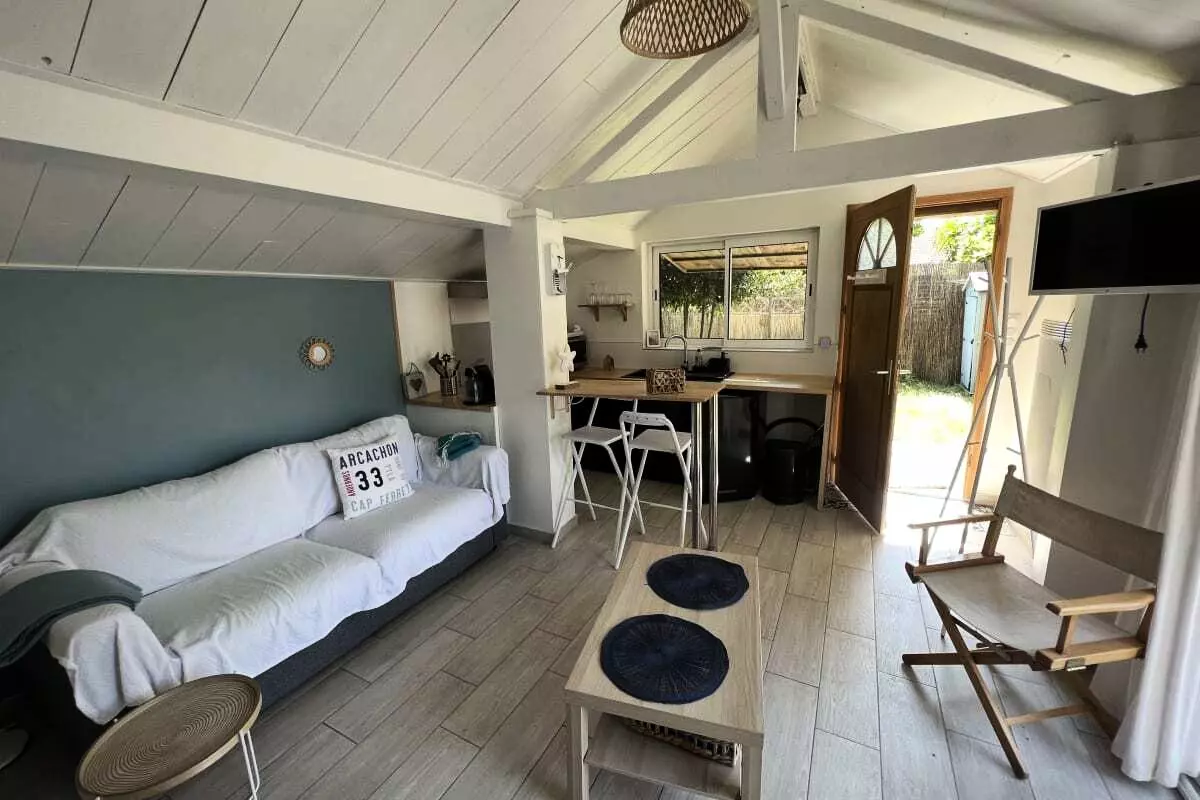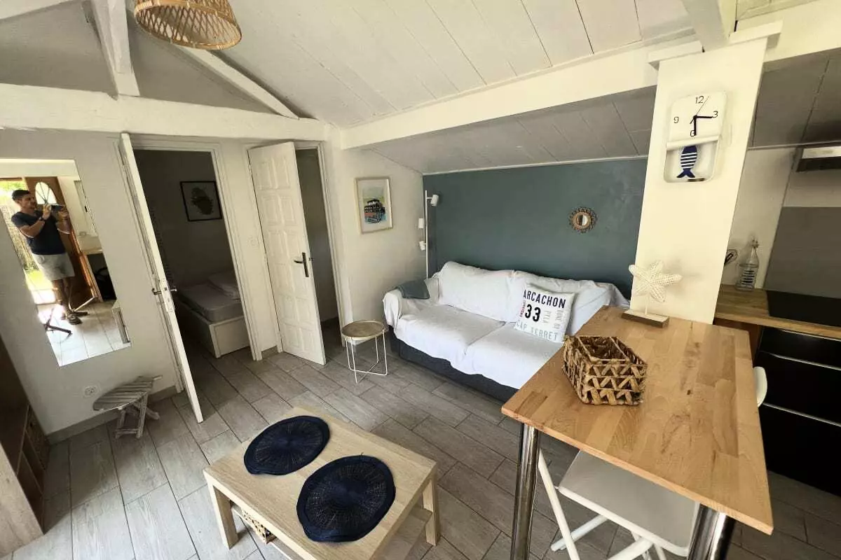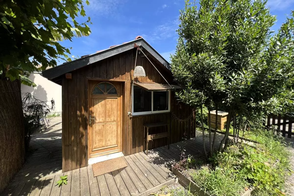 Adorable chalet en bois de 30m² au centre de Lanton avec une belle terrasse.