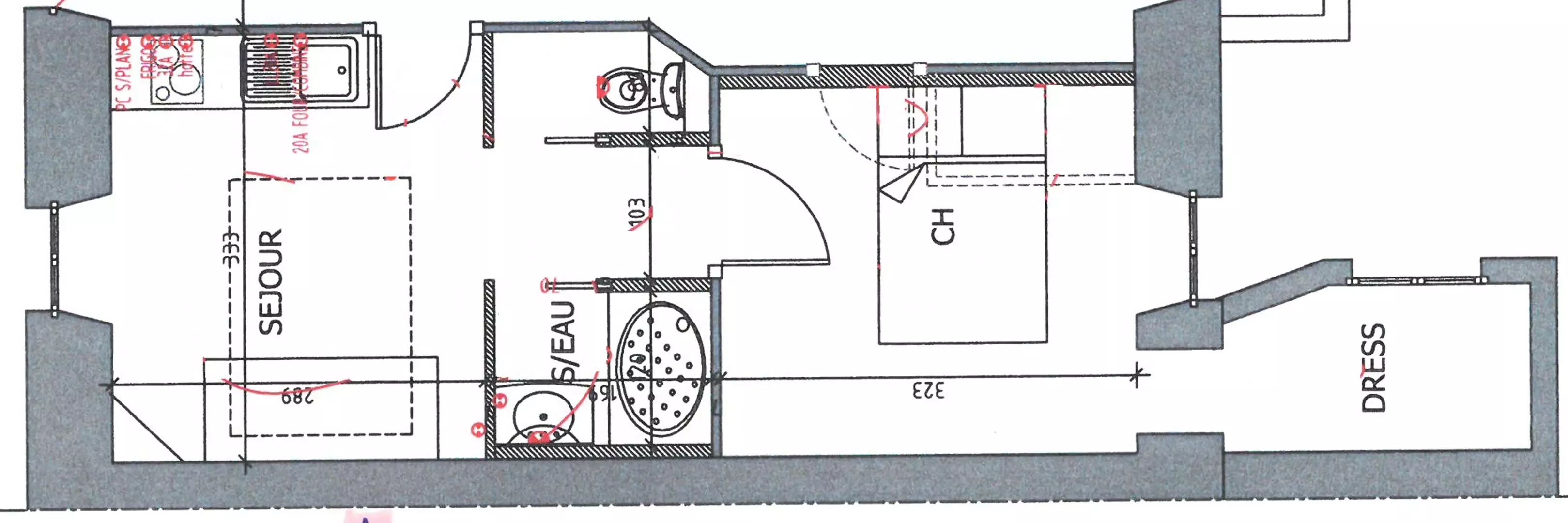 Cet appartement d'une superficie de 26.90 m² de très bon confort exposé est ouest comprend un séjour avec canapé fixe, téléviseur, une kitchenette équipée (micro-ondes, plaques vitrocéramiques deux feux, cafetière électrique filtres, bouilloire), une chambre avec un lit deux personnes 140 et son dressing. salle d'eau attenante à la chambre avec douche et sèche-serviettes électrique. wc séparés.