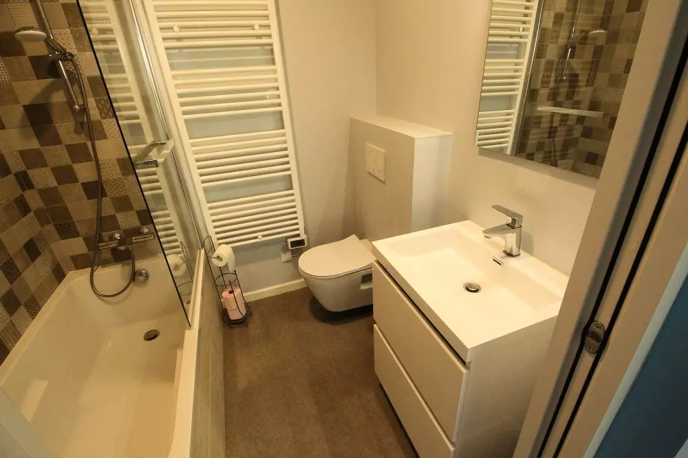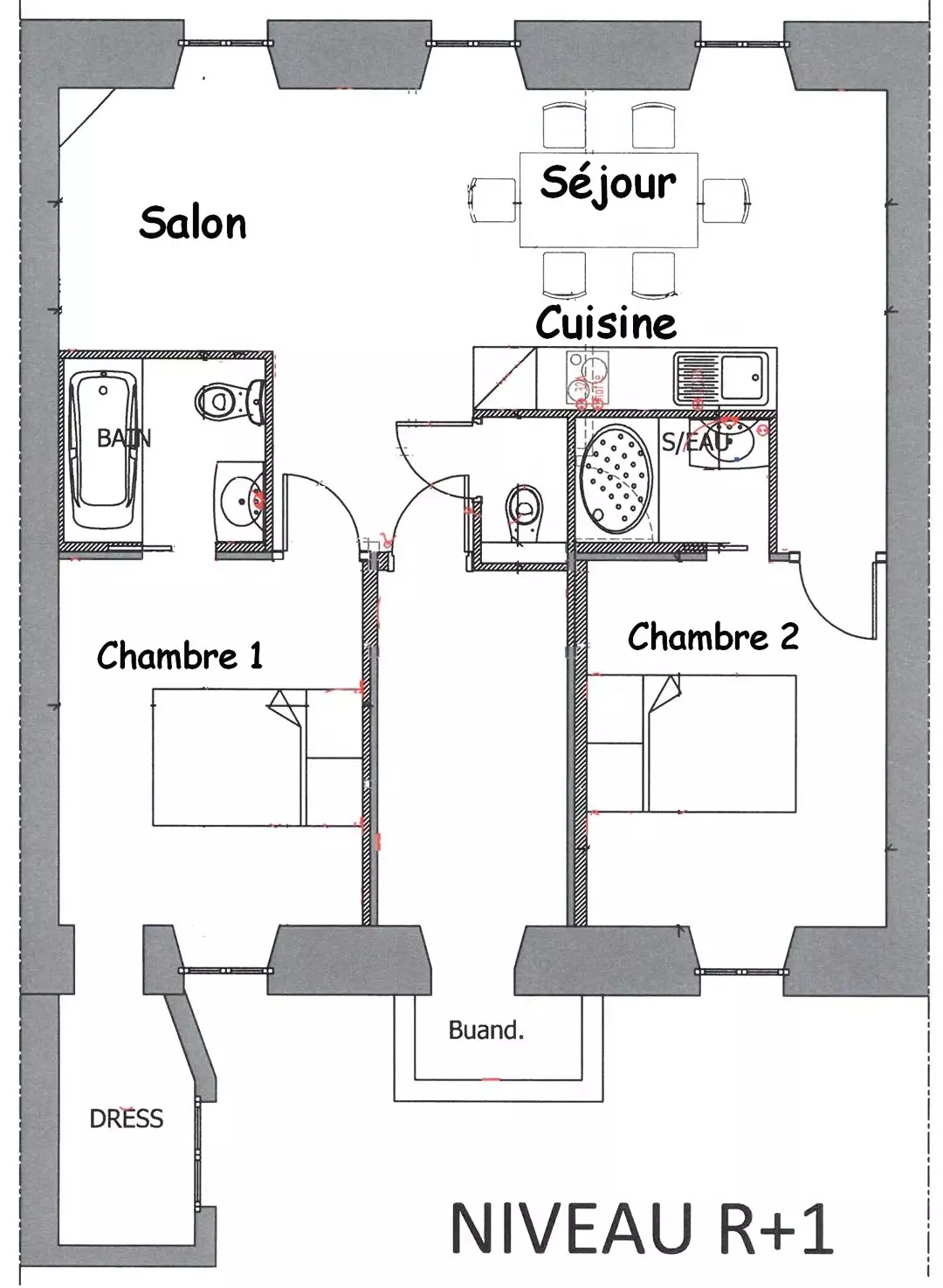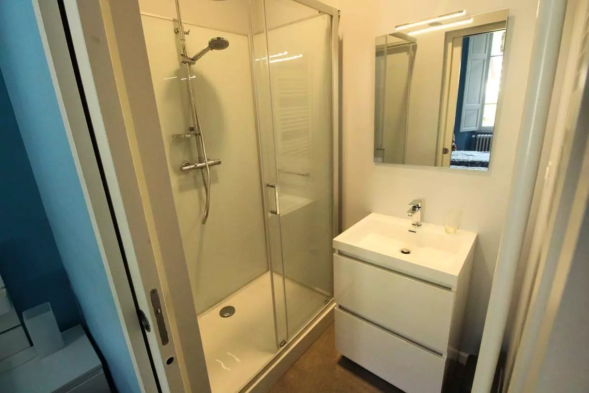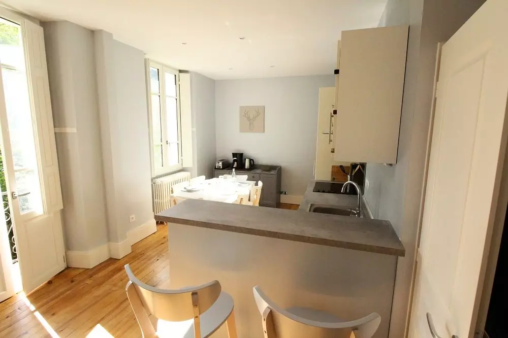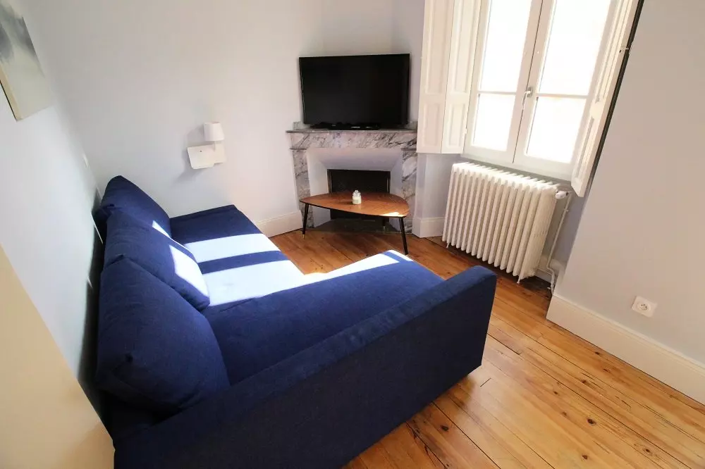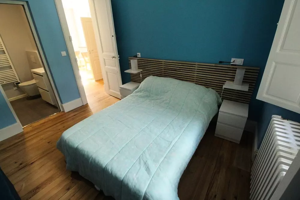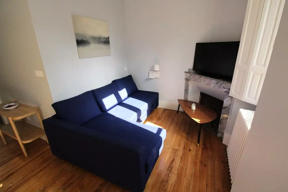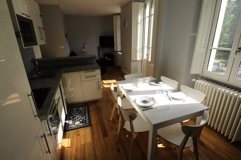 Appartement trois pièces pour quatre personnes dans maison de caractère au 1er étage, état neuf, de grand confort exposé est-ouest.