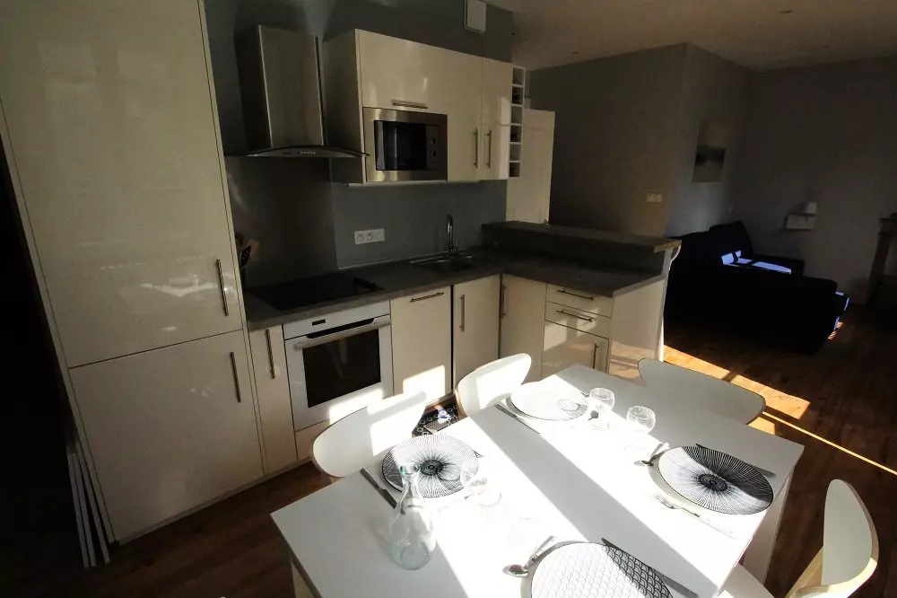 Ce bel appartement d'une superficie de 56,80 m² comprend une cuisine intégrée (lave-vaisselle, micro-ondes, four pyrolyse, plaques vitrocéramiques quatre feux, réfrigérateur congélateur, grille-pain, cafetière électrique filtres, bouilloire) salle à manger, salon avec canapé d'angle, téléviseur connecté, une chambre avec un lit deux personnes 140 avec dressing et sa salle de bain attenante et wc, une chambre avec deux lits 90 rangements et sa salle d'eau attenante avec douche, sèche-serviettes électriques dans chaque pièce d'eau. un wc indépendant.