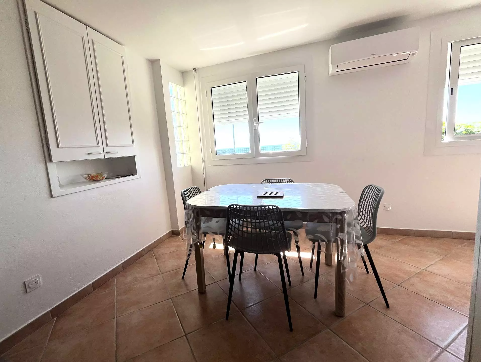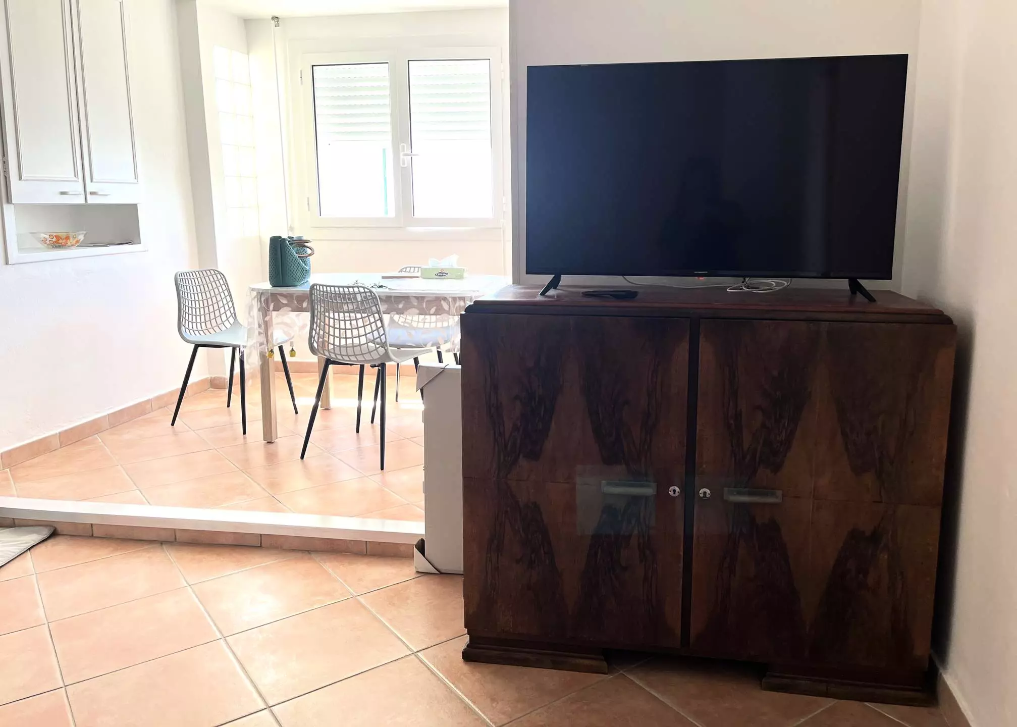 A l'entrée sud de Bastia, à l'entresol d'un immeuble ancien, appartement de 2 pièces climatisé comprenant une entrée, une salle d'eau /WC, une cuisine équipée avec espace repas, un séjour avec canapé convertible BZ (2 couchages) TV, un salle à manger avec coin repas, une chambre avec lit double et placard