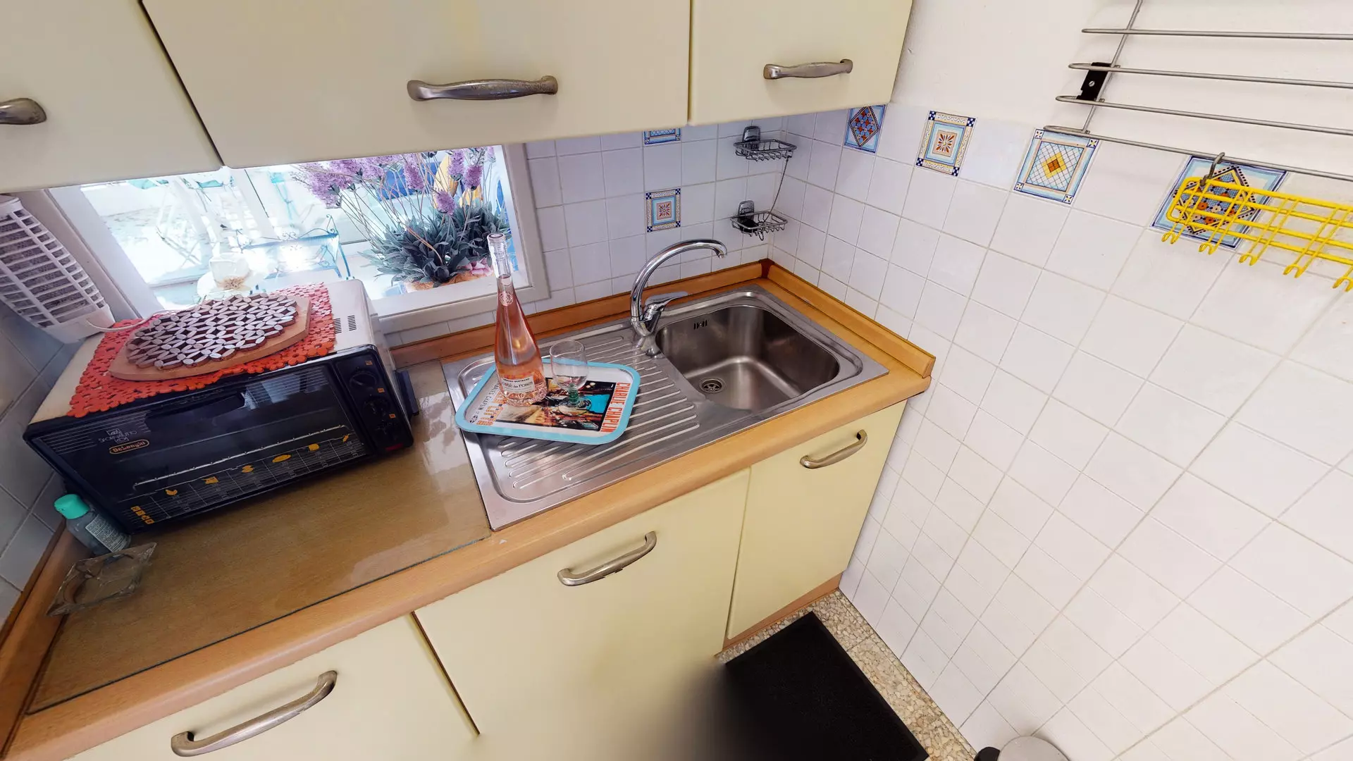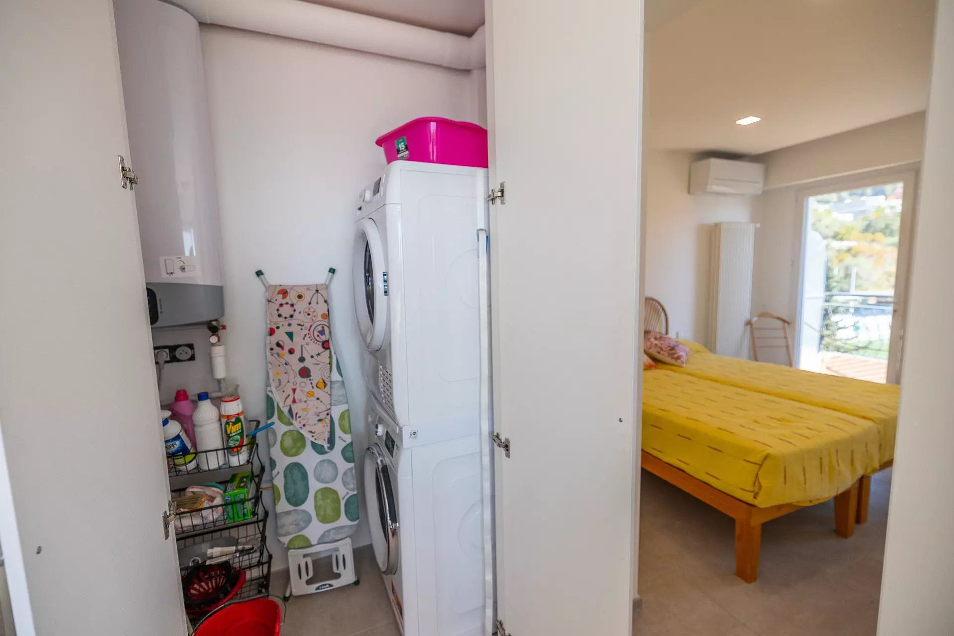 Terrasse avec lave-linge.