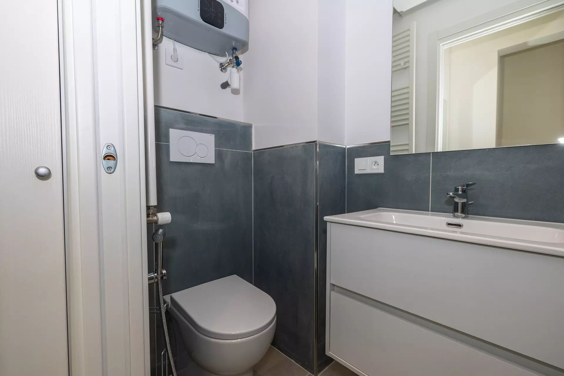Deuxième salle d'eau avec douche, WC et bidet.