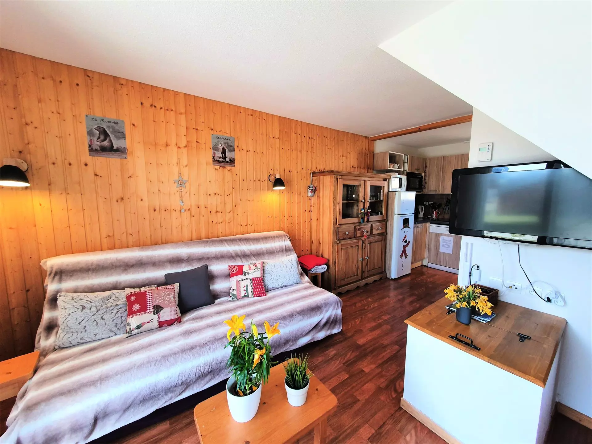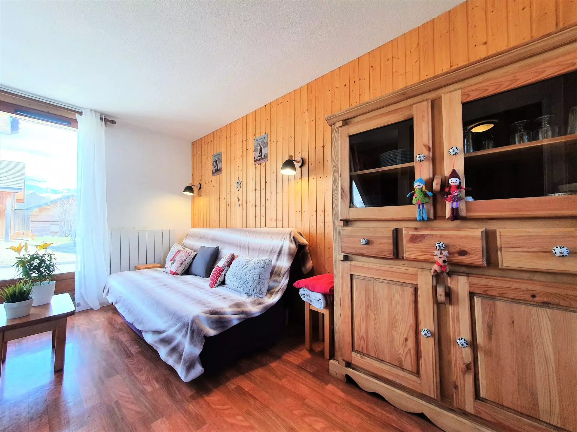 séjour ouvrant sur une terrasse, un canapé convertible 2 personnes dans le séjour.