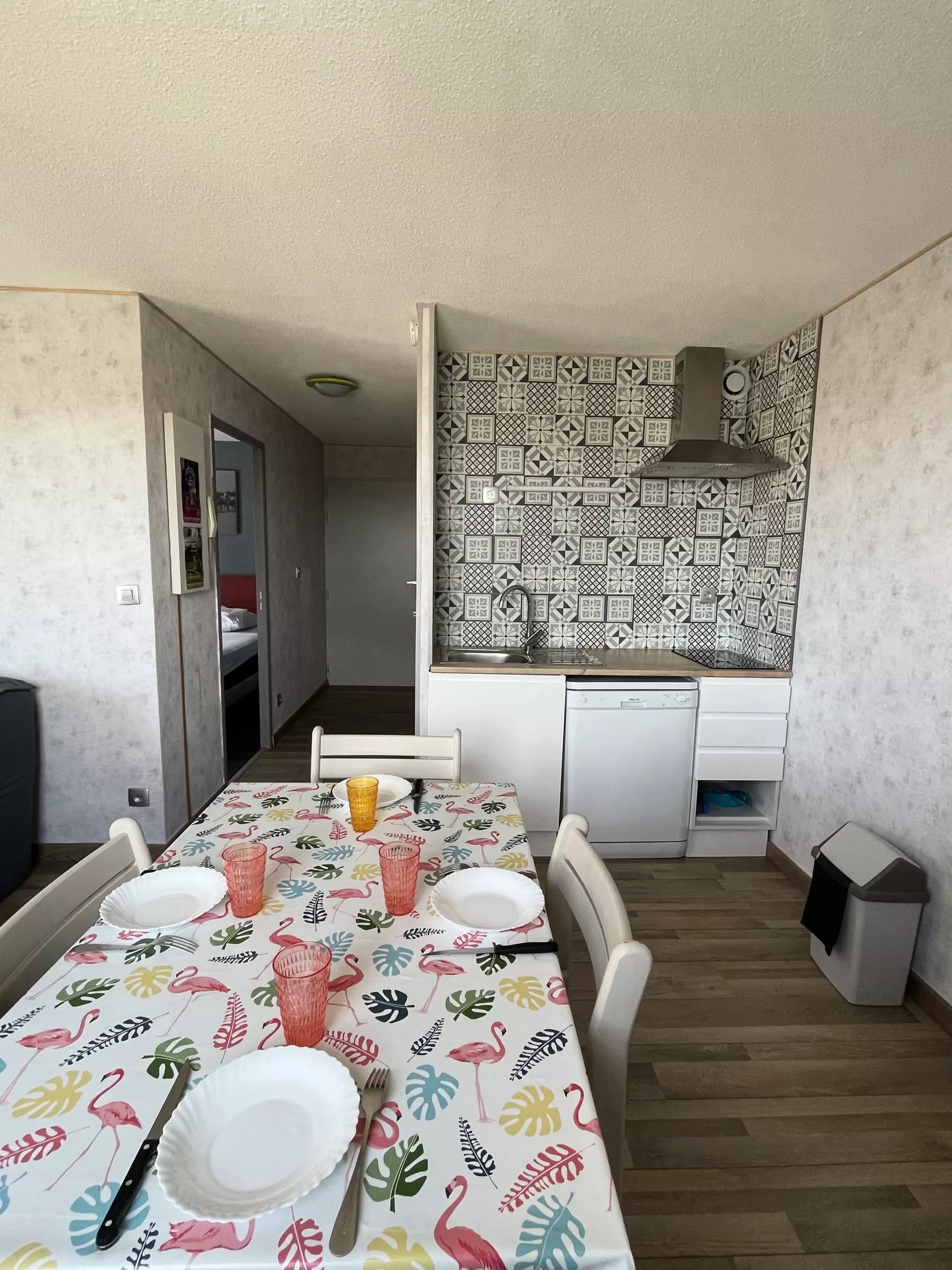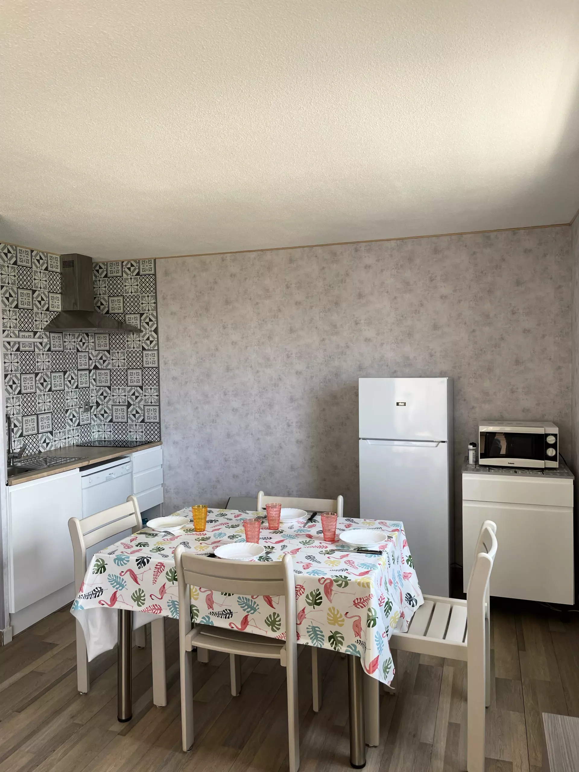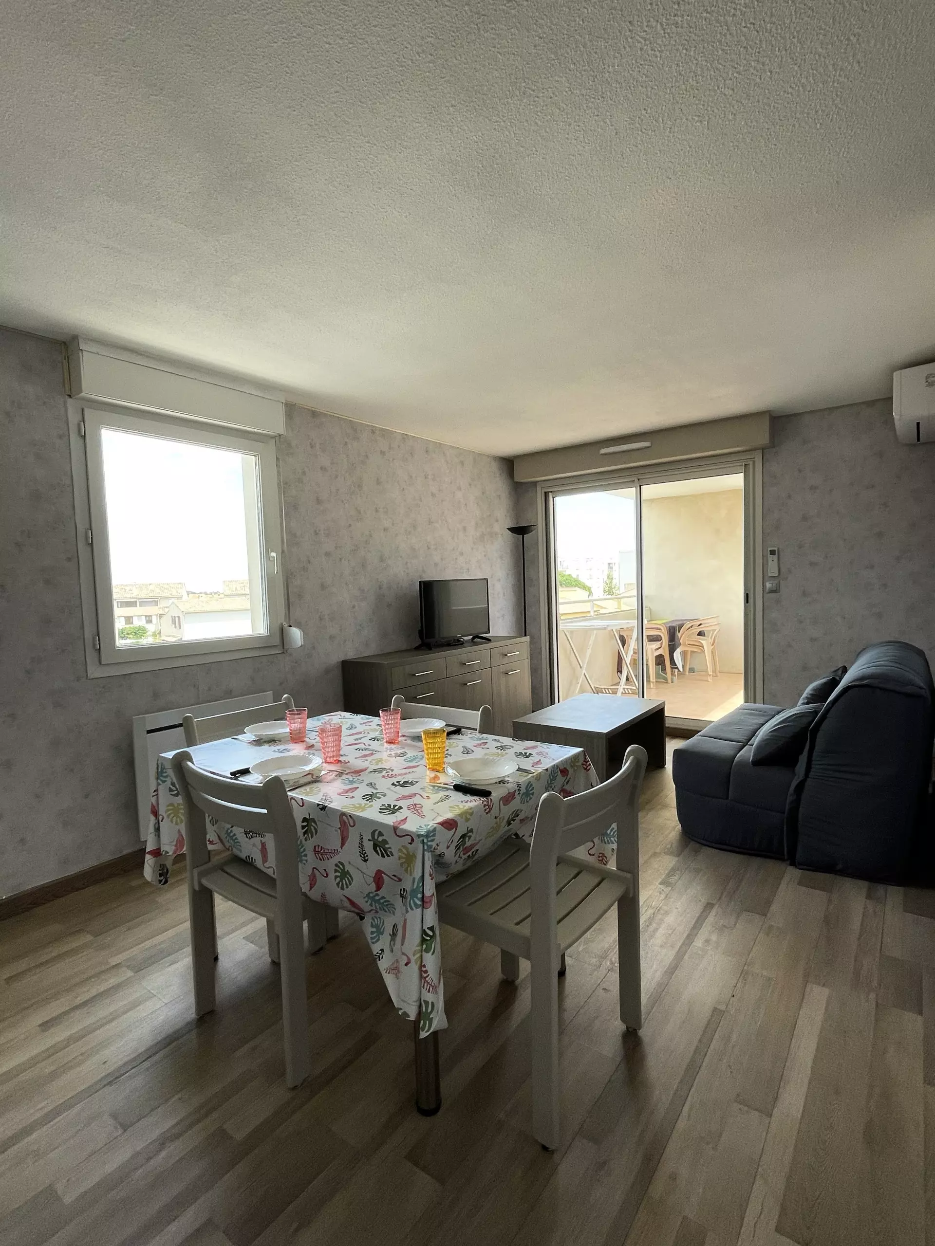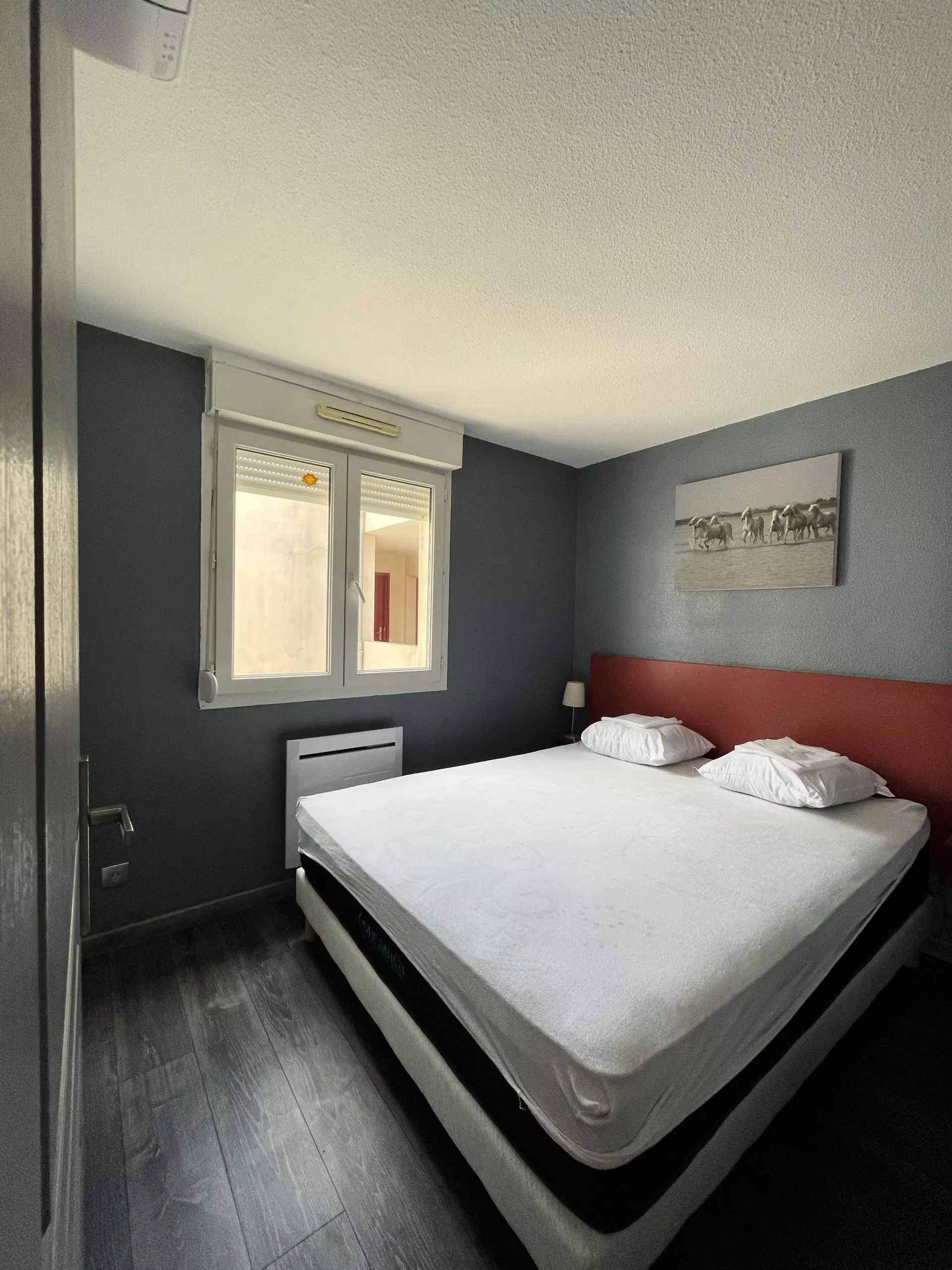 Appartement rénové et climatisé pour 4 personnes situé au 2ème étage d'une résidence très prisée des vacanciers avec piscine et ascenseur, à 500m de la plage et du centre ville. L'appartement possède toutes les fonctionnalités pour un agréable séjour : une chambre avec un lit pour 2 personnes, une salle de bain avec WC séparé, une pièce à vivre avec coin cuisine ouverte sur le salon avec canapé lit. La grande terrasse de 8 m² au 2ème et dernier étage de la résidence est exposée Nord-Est avec vue dégagée sur les salins du midi. Parking privatif avec supplément (8€/jour) sous réserve de disponibilité. Piscine ouverte du 01 mai au 31 octobre.