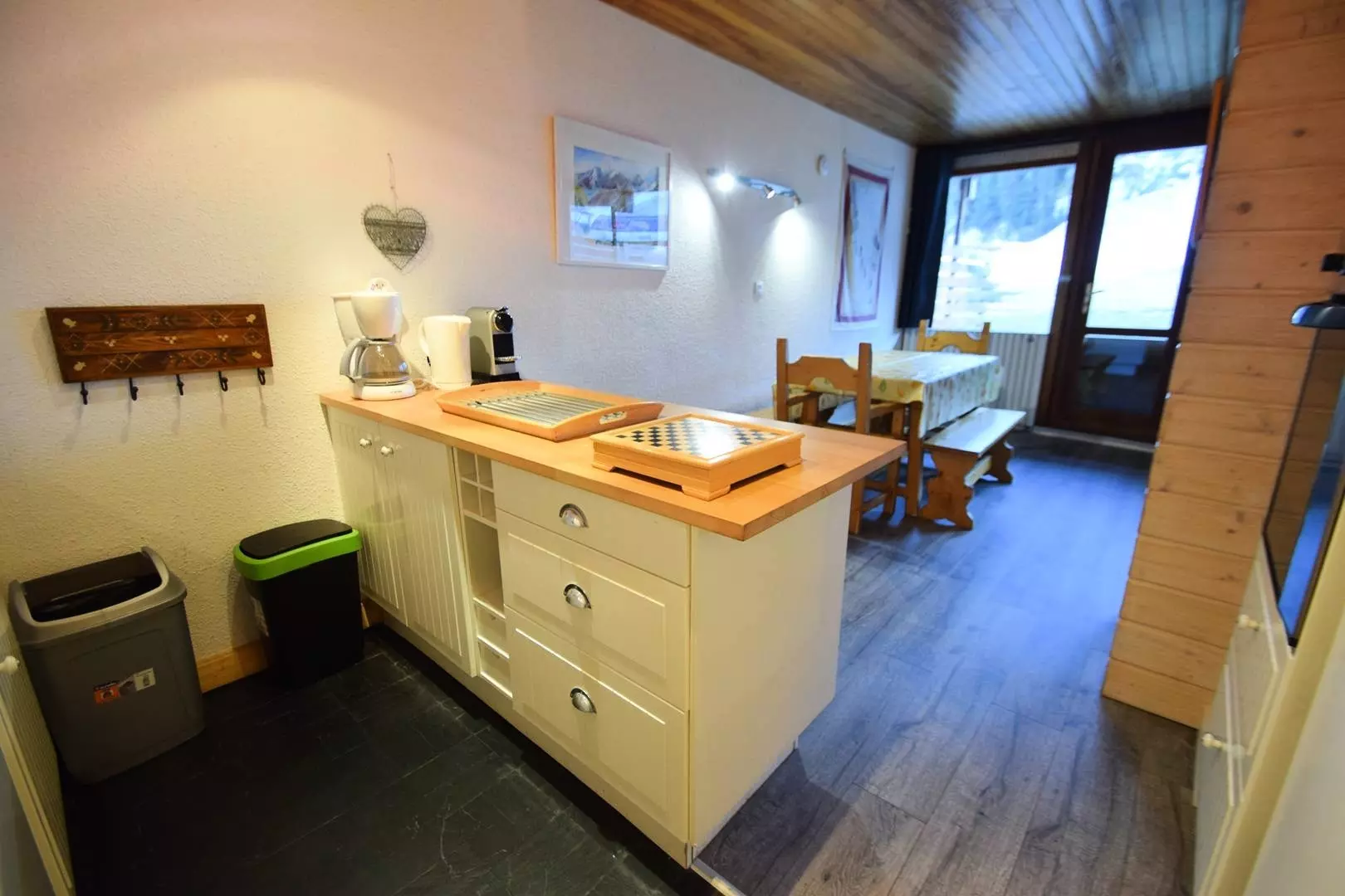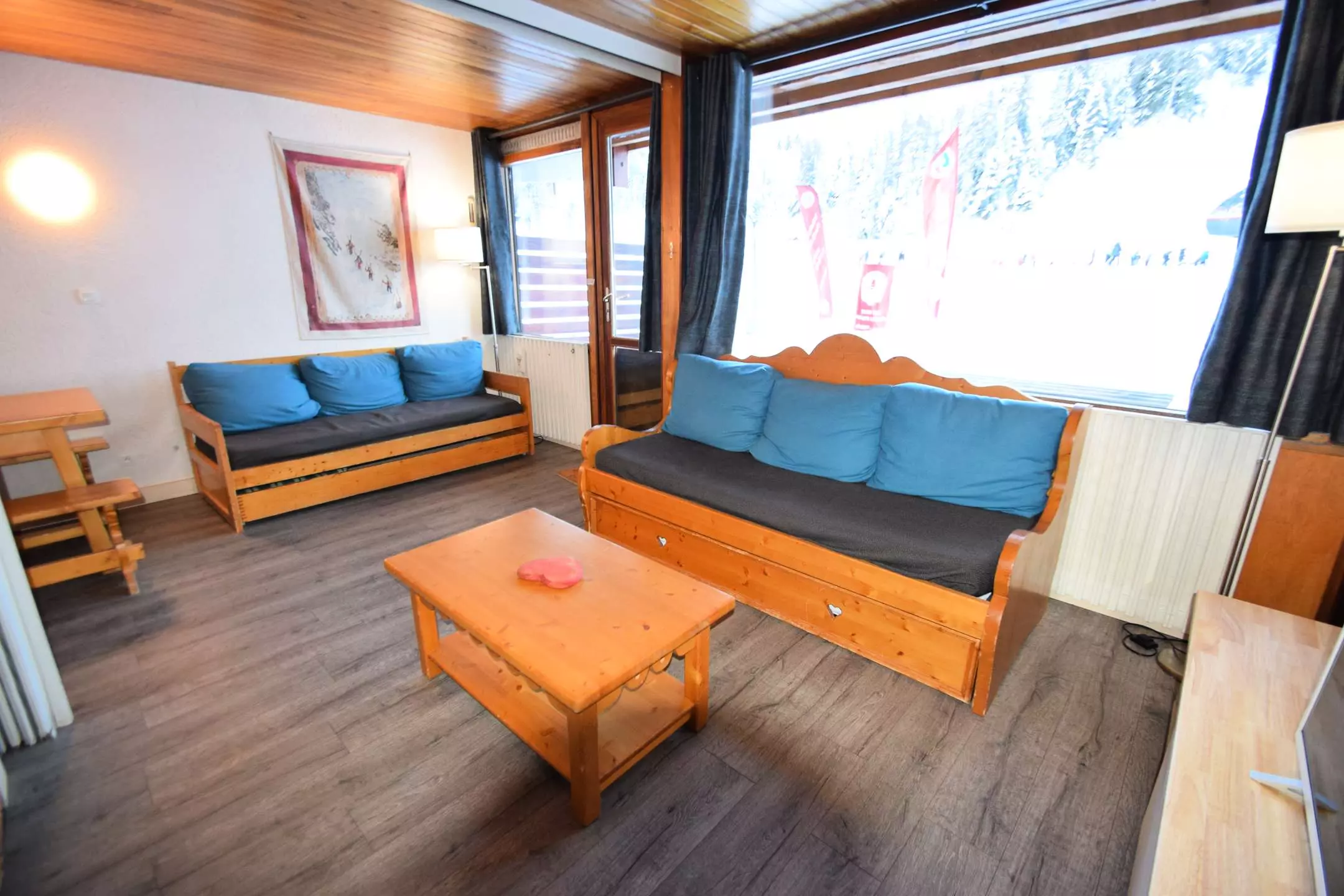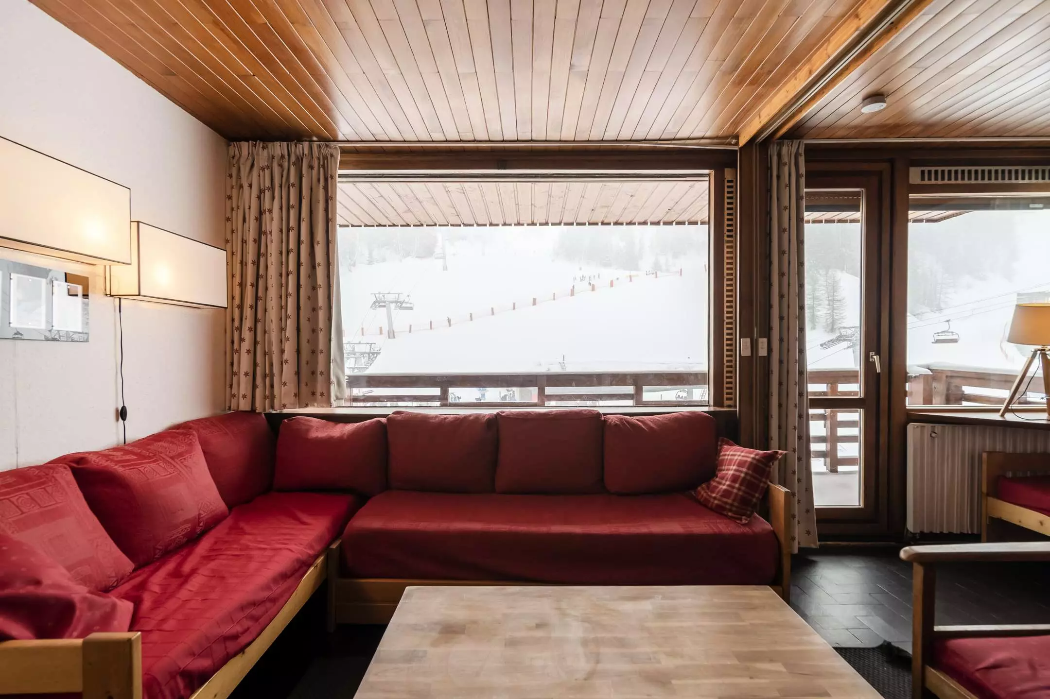 2 pièces, 5 pers, 41m2, idéalement placé sur les pistes, exposé SUD, vue sur les pistes, au rez de chaussée avec terrasse (déneigement non garanti), de plain-pied sur pistes - sans ascenseur. Cuisine ouverte : 3 plaques induction, réfrigérateur, four, four micro-ondes, lave-vaisselle, Nespresso - Séjour : 2 lits gigognes, 1 lit banquette. 1p - TV , accès internet. - Cabine fermée : 1 lit double 140 cm -SDB : grande douche - WC séparés. WIFI inclus. Literie : 1 couette 2p et 3 couettes 1p -