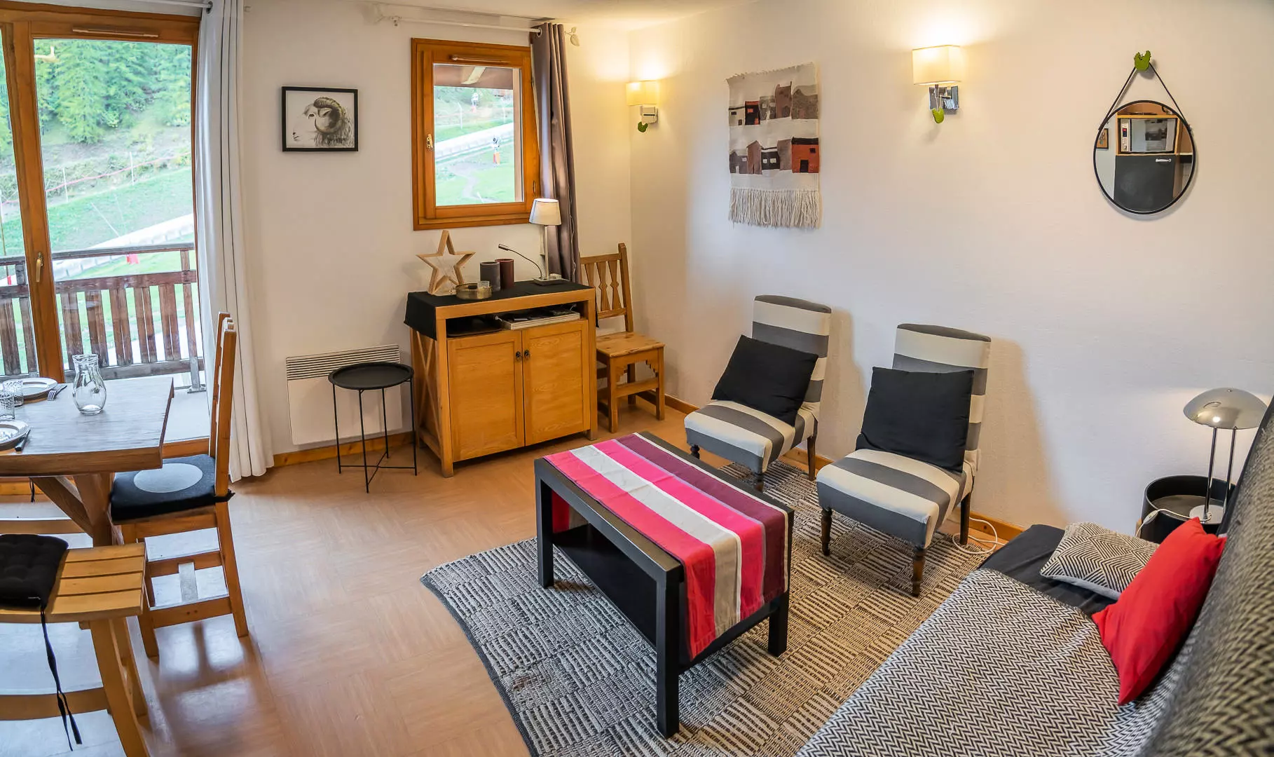 Cet appartement de 33 m², prévu pour 6 personnes, est idéalement situé en rez-de-chaussée, puisqu'il offre un accès direct aux pistes de skis, et se trouve à quelques mètres seulement de toutes les commodités (restaurant, superette, boulangerie, magasin de location de matériel et de produits régionaux).