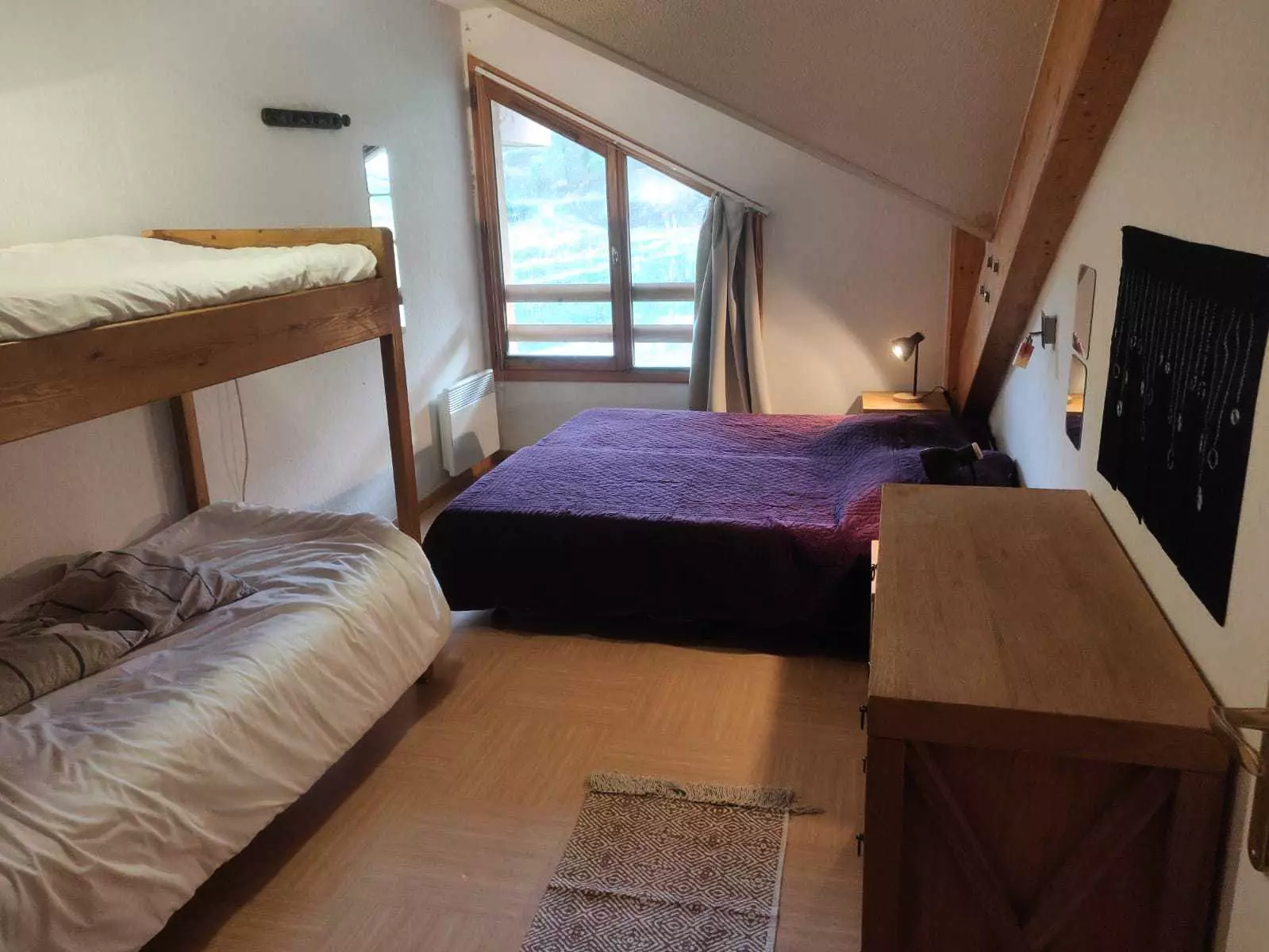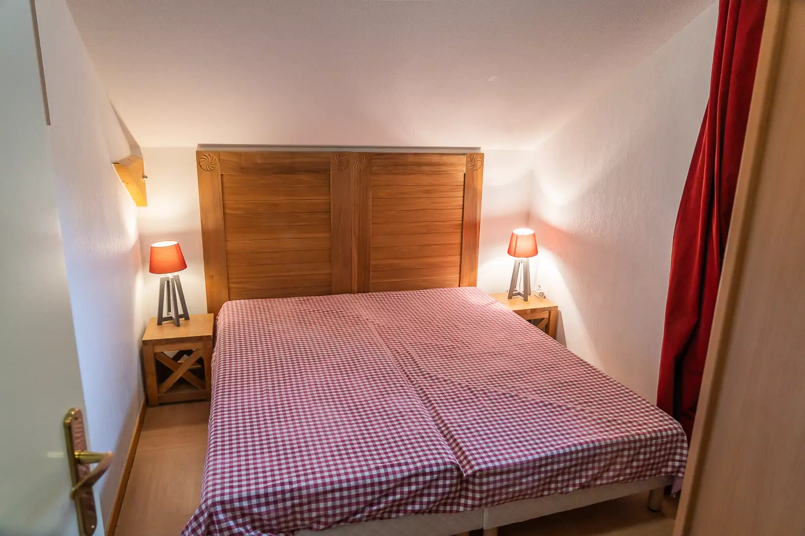 Côté couchage vous disposerez d'une chambre double avec un lit en 140x190 et d'une penderie et un coin montagne avec deux lits simples superposés pour un séjour en famille ou entre amis.