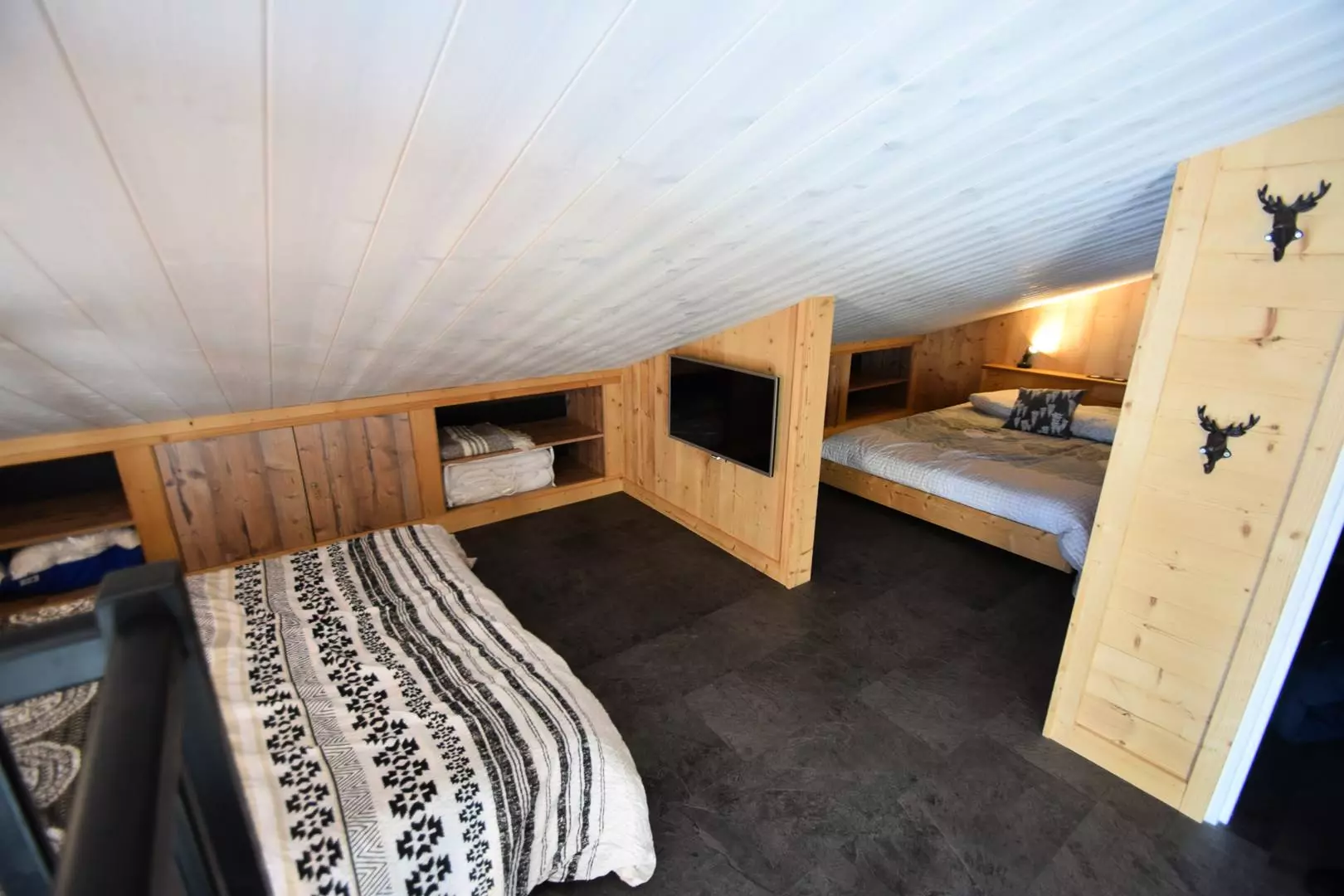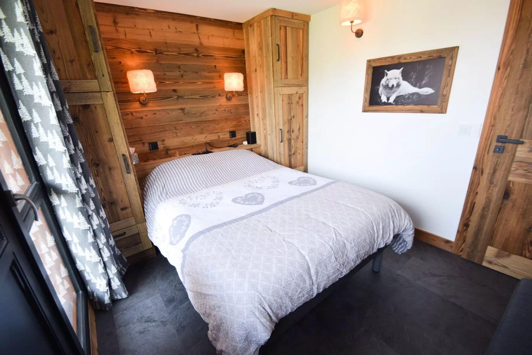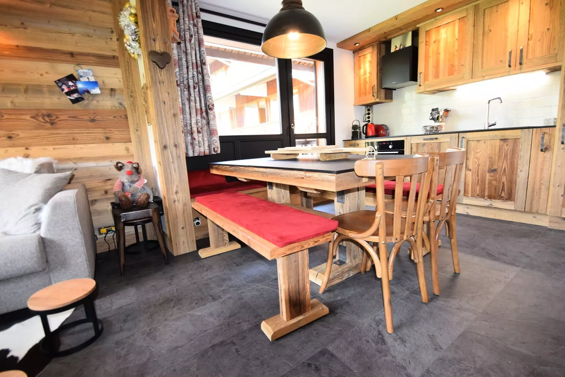Bel appartement de 5 pièces, 60m2 env + sous pente 20m2 utiles env, en triplex, pour 8/10 pers. 2ème étage sans ascenseur, balcon avec belle vue sur les pistes - Étage intermédiaire : séjour avec coin repas, coin salon, 1 canapé-lit convertible 160cm. Cuisine ouverte : four, four micro-ondes, lave-vaisselle, réfrigérateur, 4 plaques induction, Nespresso (dosettes non fournies) hotte. 1 WC séparés, Lave-linge/séchant - ETAGE HAUT : Mezzanine ouverte : 1 lit double 140cm - CH 1 (sans porte) : sous pente : 1 lit double 140cm, TV - Rangements - Salle de douche : douche + WC inclus - ETAGE BAS : CH 2 : 1 lit double 160cm - TV, placard - CH 3 : 1 lit double 140cm - TV - SDB : baignoire - WC séparés -Sols : lames pvc - Ménage de fin de séjour, draps, serviettes et forfaits ski en option. ANIMAUX NON ADMIS Appartement non fumeur- Équipement musique - WIFI inclus - Volets roulants - 3 casiers à skis - Très Bel appartement chaleureux, rénové style contemporain Montagne, très belle vue sur Pistes.