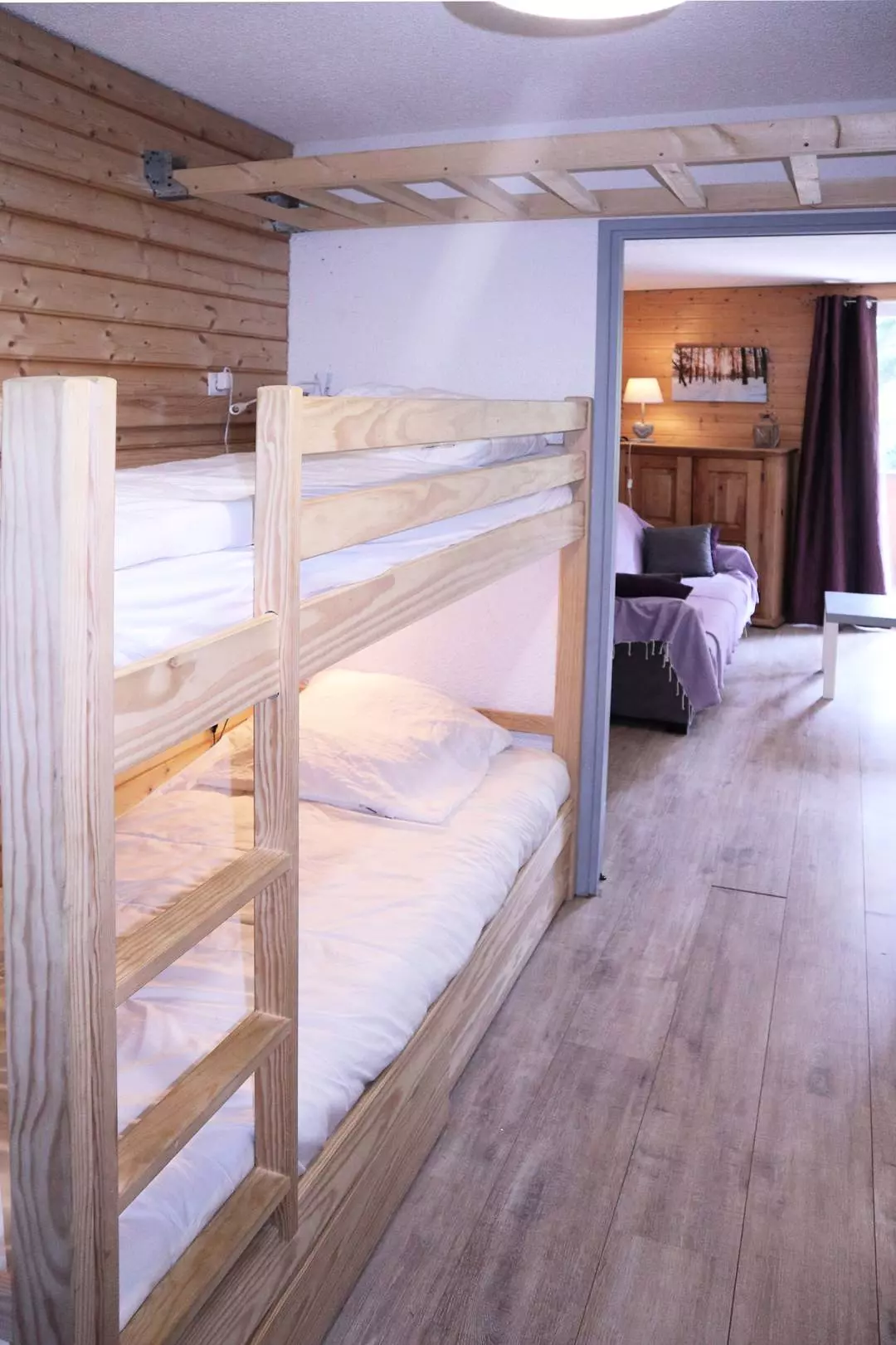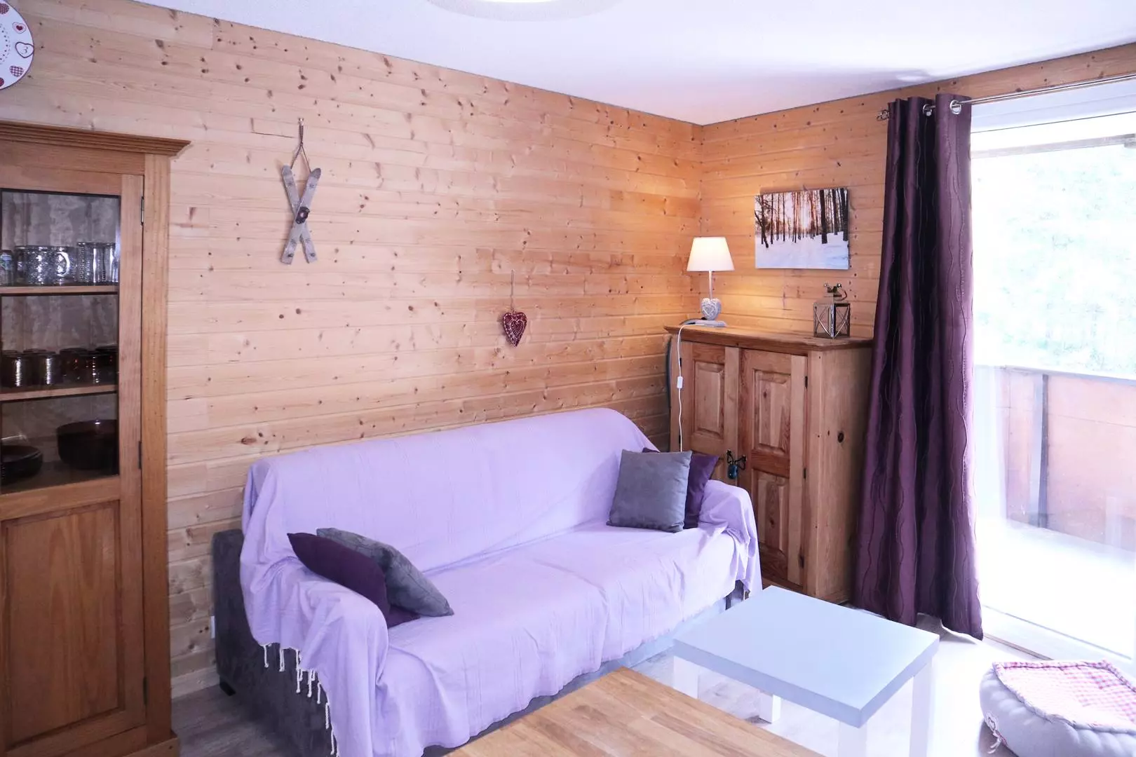 Dans le quartier calme de Prébois, à 200 m à pied du centre de la station et de toutes les activités. Appartement deux pièces pour 6 personnes, comprenant une entrée avec 2 lits superposés 1 place, un séjour avec 2 lits gigognes 1 place, une chambre avec 1 banquette convertible 2 places et 1 lit mezzanine 1 place, un coin cuisine équipé d'un lave-vaisselle, une salle d'eau, une salle de bains et wc séparés. Balcon offrant une très belle vue sur la forêt exposition Sud.