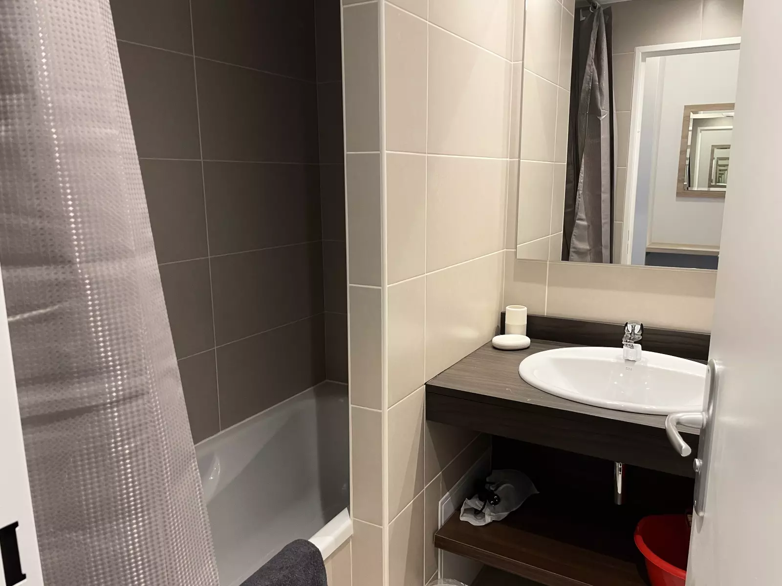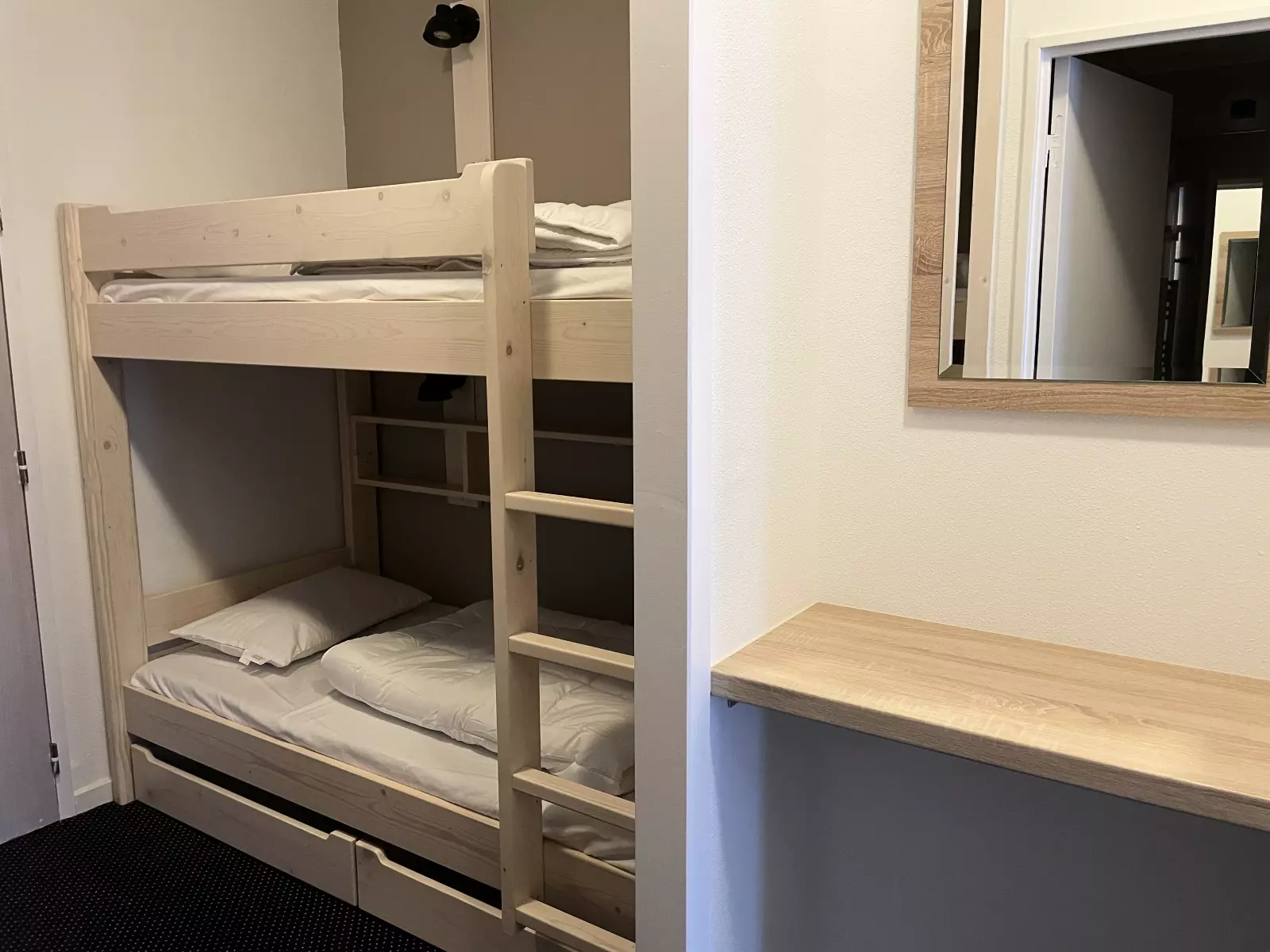 Studio équipé et meublé pour 6 personnes, de 38m², exposé Sud-Ouest, vue pistes et station, situé au 1°étage avec balcon. Entrée : coin montagne avec 2x2 lits superposés en 90.Salle de bain : lavabo, baignoire et sèche-cheveux.WC indépendant. Séjour : canapé lit 2 places en 160, télévision - Cuisine américaine : frigo avec bac conservateur, plaque vitro 4 feux, four, micro-ondes,lave-vaisselle, cafetière à filtre, grille-pain, bouilloire, robot.