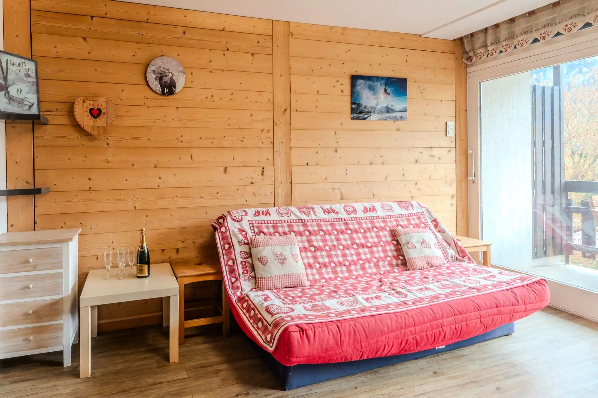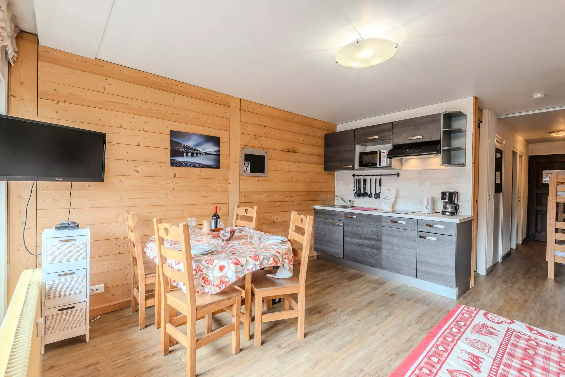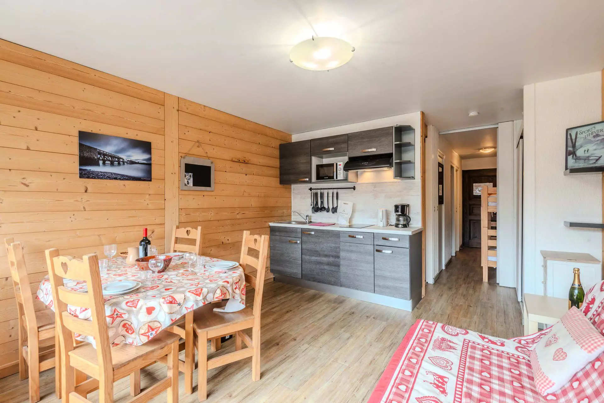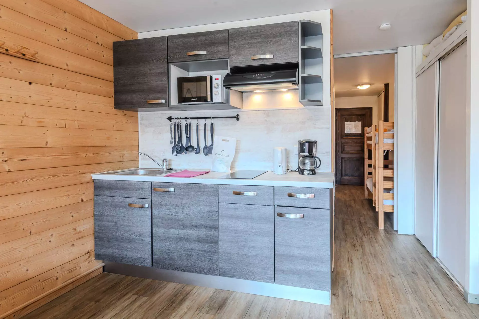 Studio cabine situé au 1er étage (avec ascenseur) de la Résidence LE SCHUSS, situé au centre du village et à 200m des pistes de ski.