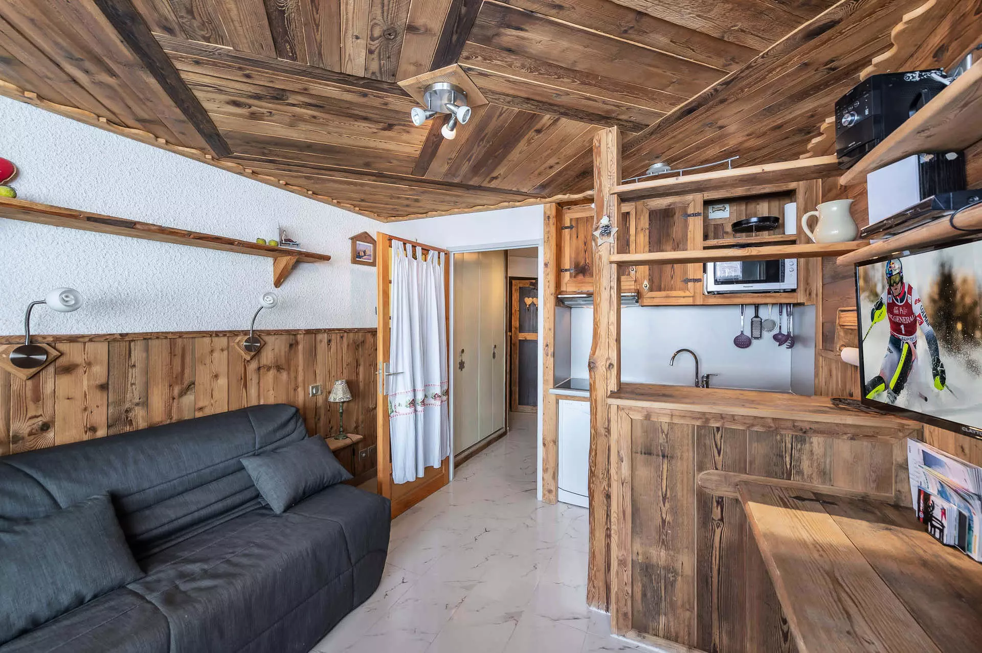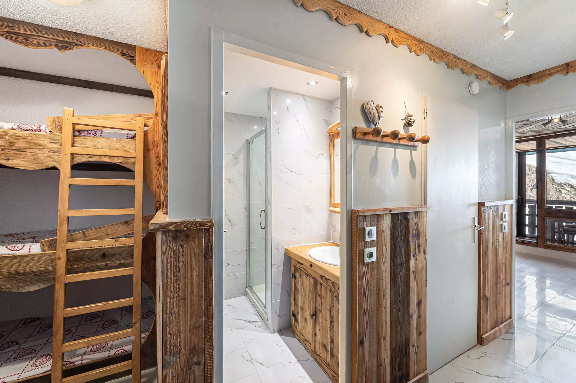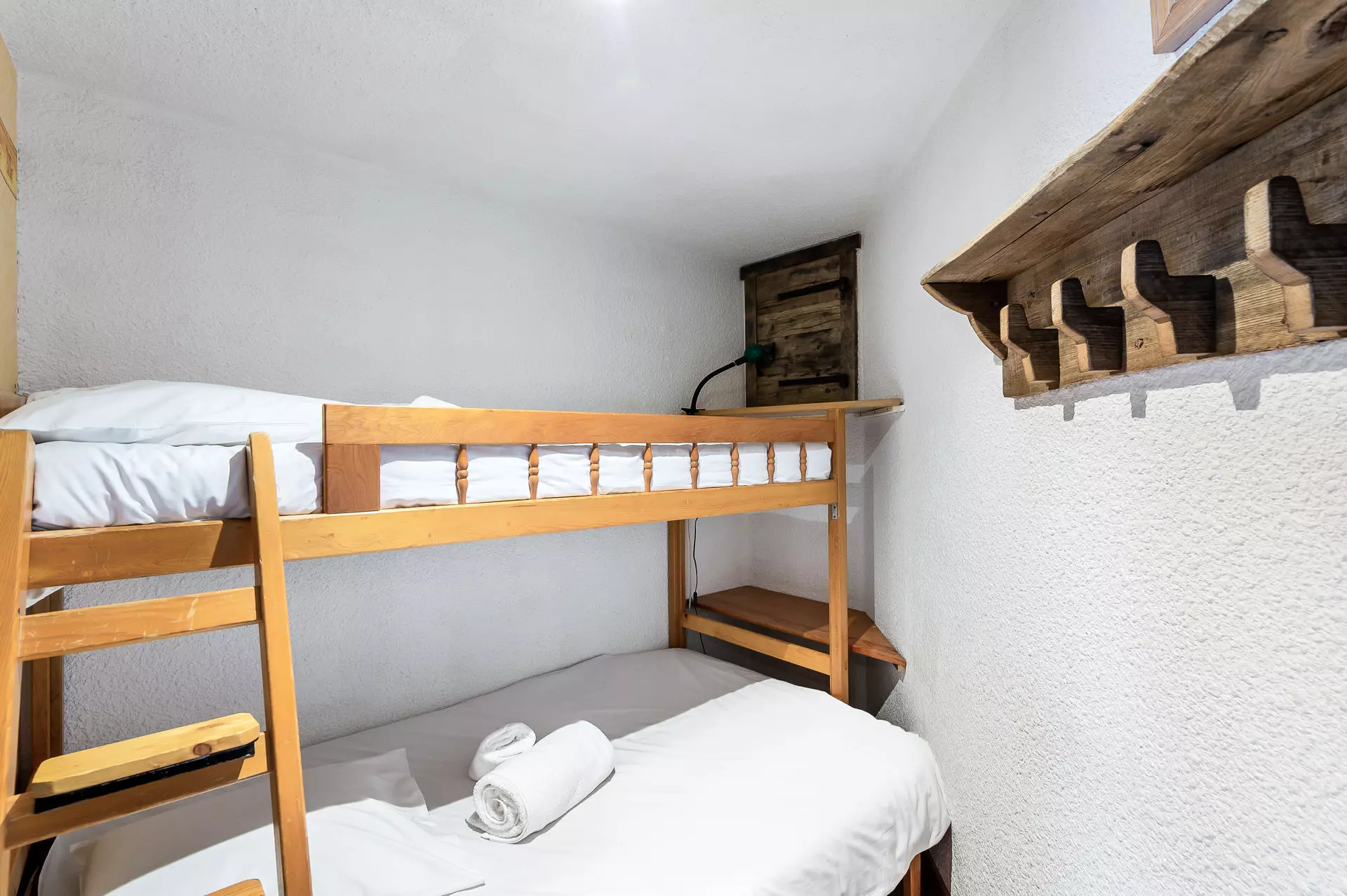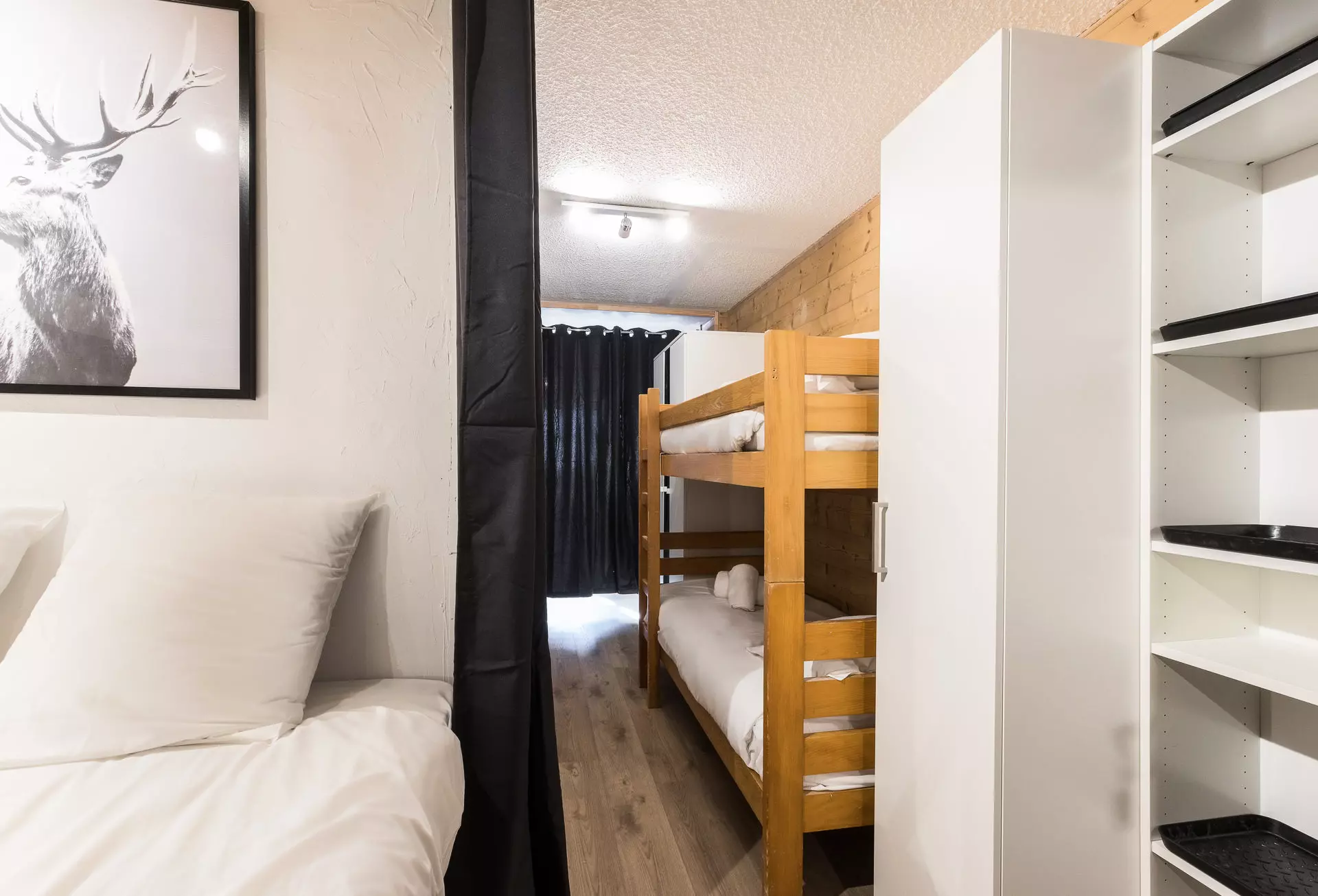 ienvenue dans cet appartement de 27m² au sein de la Résidence Le Sérac à Val Thorens, station emblématique des Alpes Françaises. Avec une décoration montagnarde modernisée, cet espace offre un équilibre parfait entre style contemporain et charme alpin. L'entrée accueille un espace nuit avec des lits superposés, tandis que le séjour, ouvert sur la cuisine, dispose d'un canapé convertible pour un confort optimal.