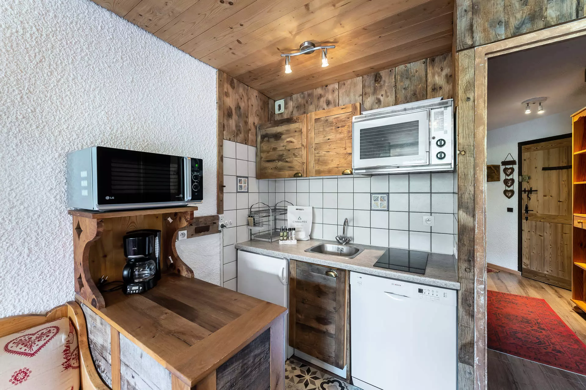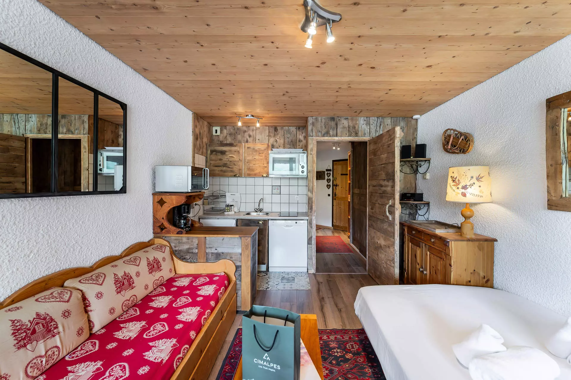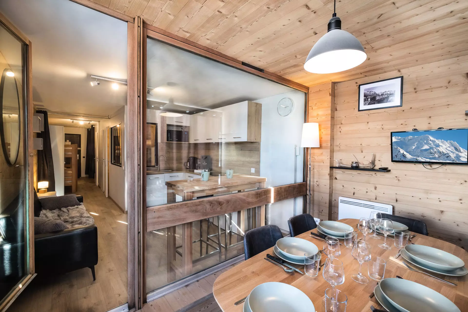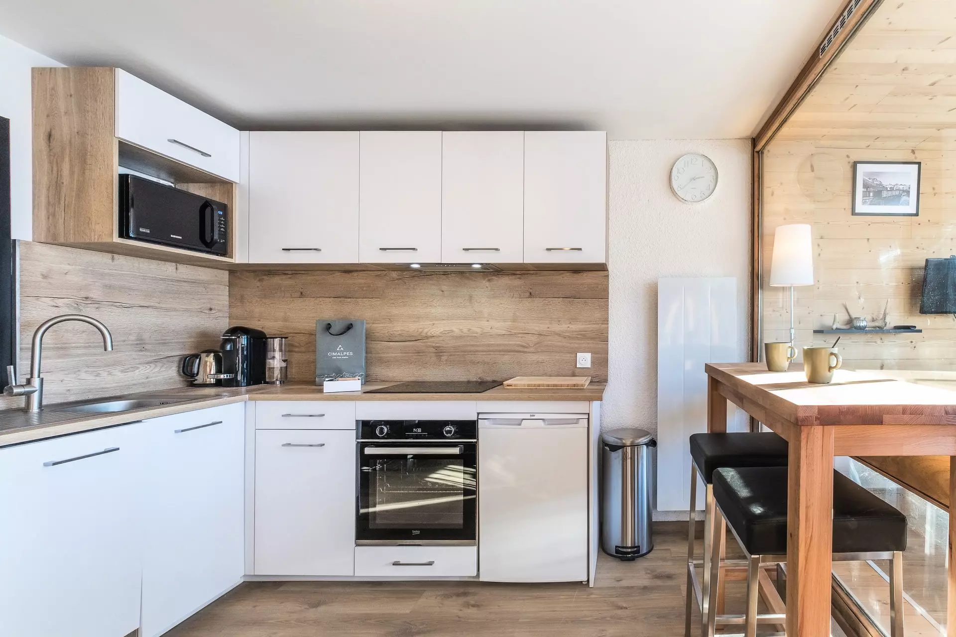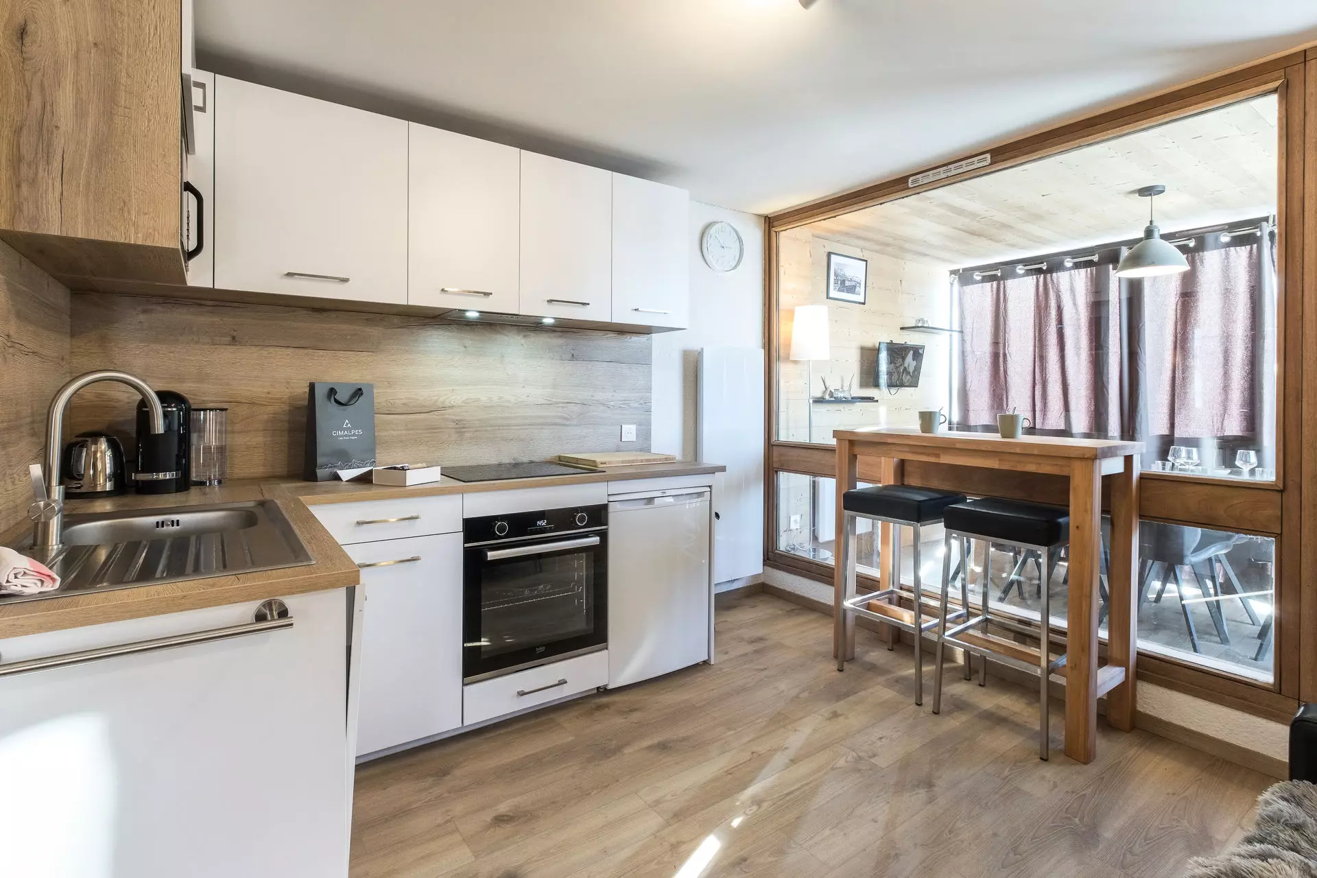 ienvenue dans cet appartement de 27m² au sein de la Résidence Le Sérac à Val Thorens, station emblématique des Alpes Françaises. Avec une décoration montagnarde modernisée, cet espace offre un équilibre parfait entre style contemporain et charme alpin. L'entrée accueille un espace nuit avec des lits superposés, tandis que le séjour, ouvert sur la cuisine, dispose d'un canapé convertible pour un confort optimal.