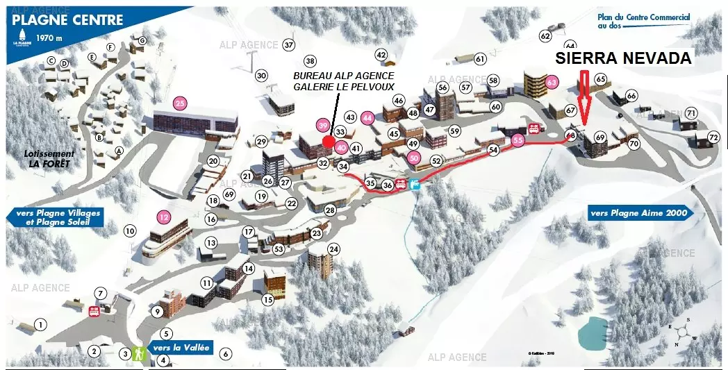 LE SIERRA NEVADA : résidence composée de 2 étages située à 50m des pistes et environ 200m des commerces. Sans ascenseur. Casier à skis au rez de chaussée. Possibilité de parking extérieur non privé devant la résidence
