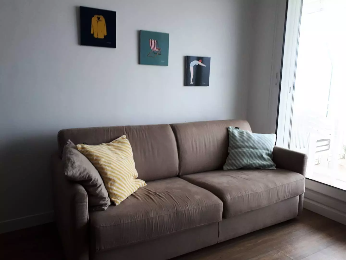 Superbe T2 refait à neuf avec une décoration soignée et une magnifique vue sur toute la Baie de La Baule. Située au 2ème étage étage d'une résidence sécurisée avec ascenseur. Entrée, pièce de vie lumineuse avec doubles baies donnant sur une grande terrasse sud de 12m² ( canapé convertible de qualité 160 cm). Une cuisine ouverte entièrement équipée et aménagée ( lave vaisselle). Une chambre à l'arrière avec un lit de 160 cm et de nombreux rangements. Une salle d'eau avec douche et wc ( lave linge).