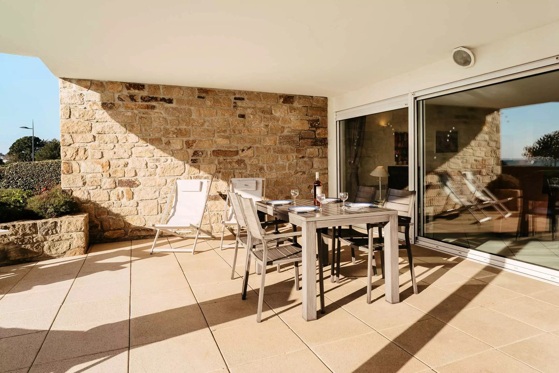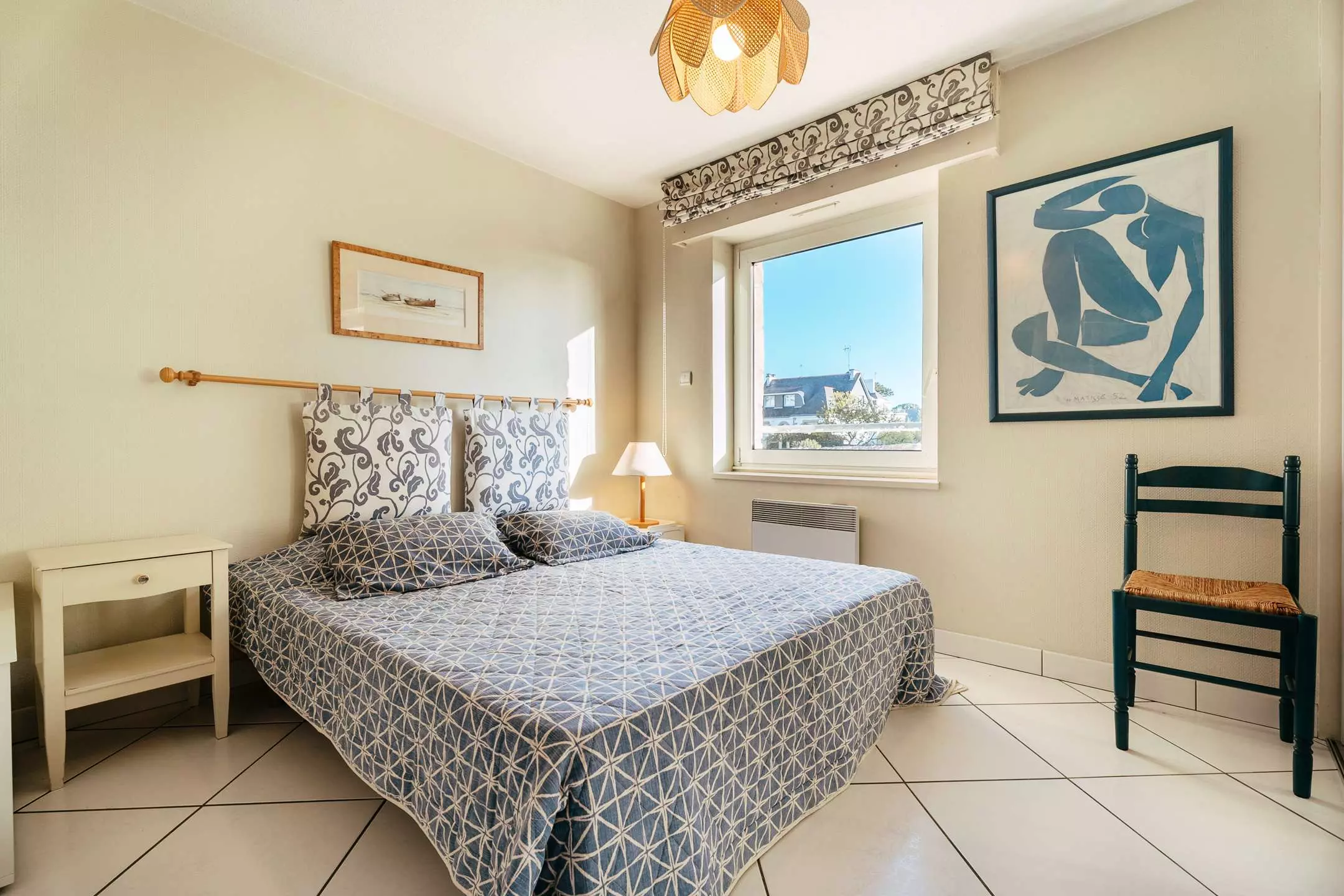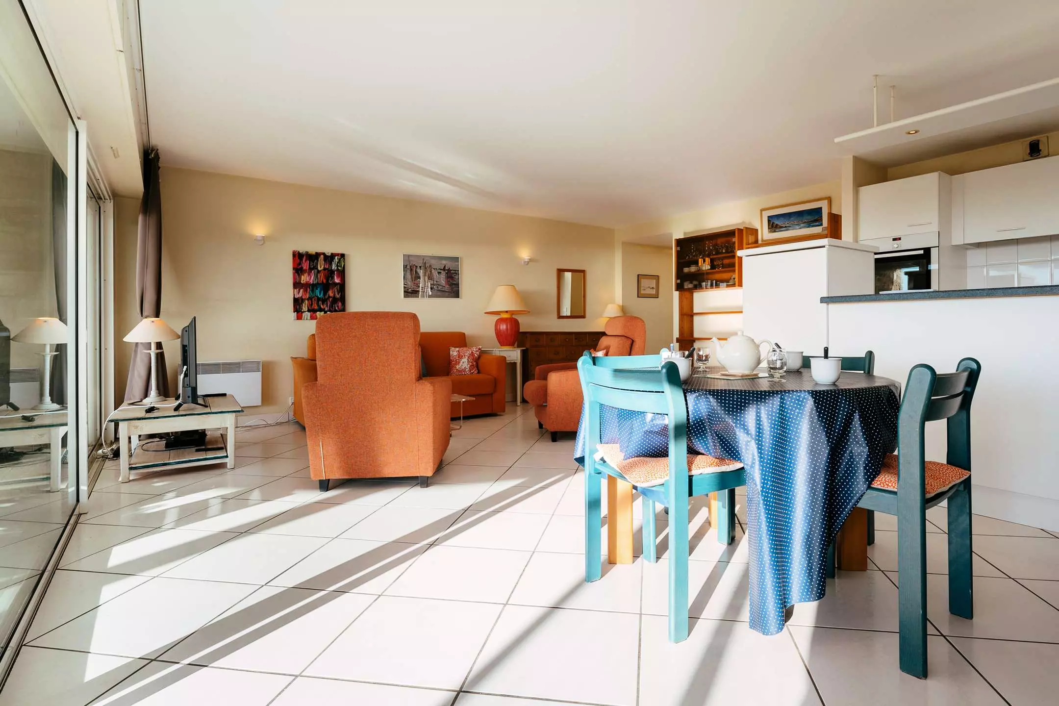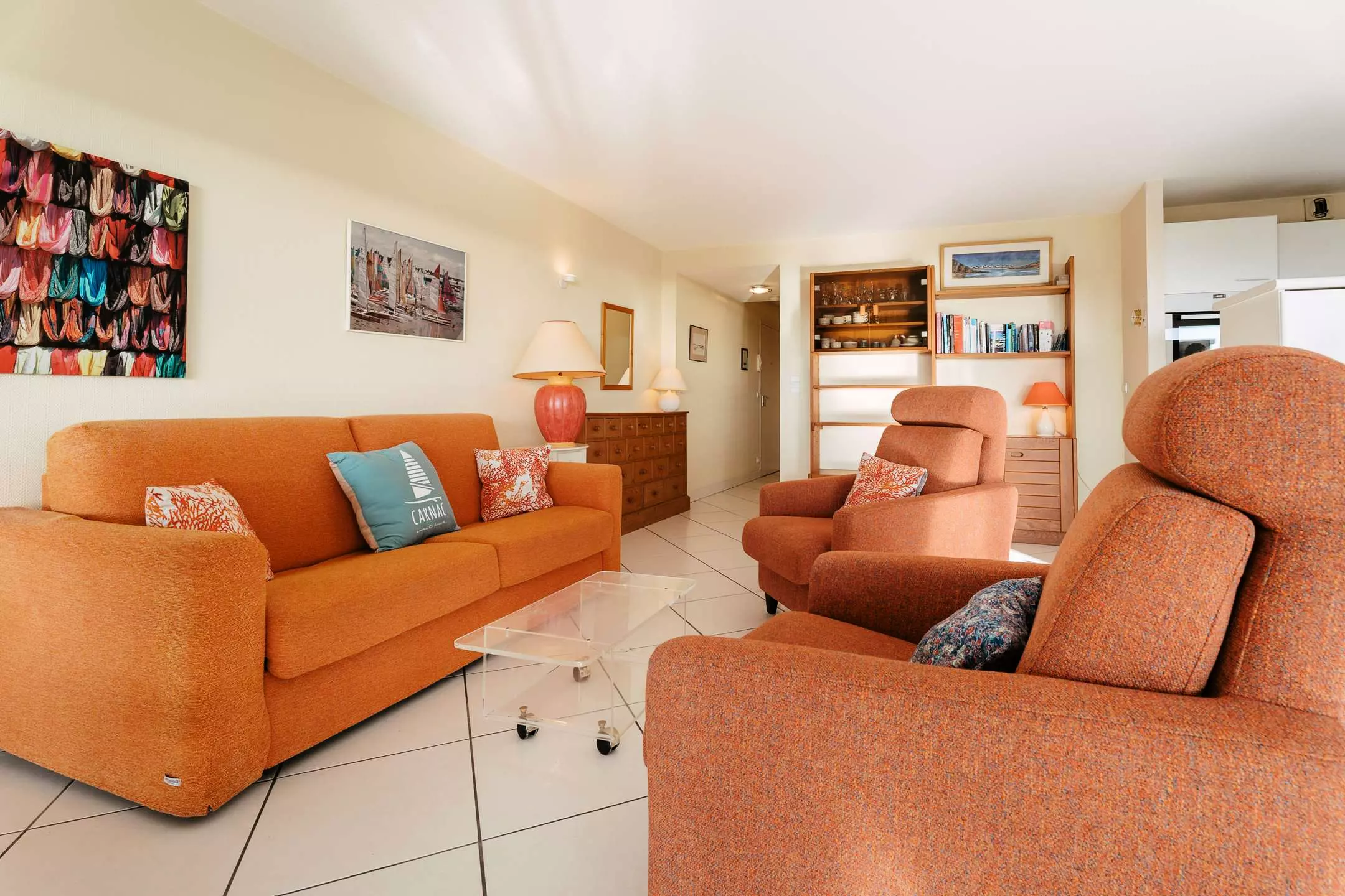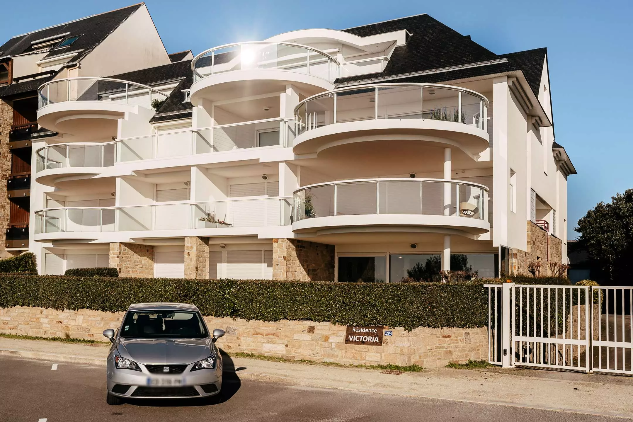 Face à la Grande Plage de Carnac et proche des commerces, bel et spacieux appartement de 2 pièces (env. 65 m²) pour 4 personnes, situé dans la résidence de standing LE VICTORIA (RDC, porte 3 à gauche) :
