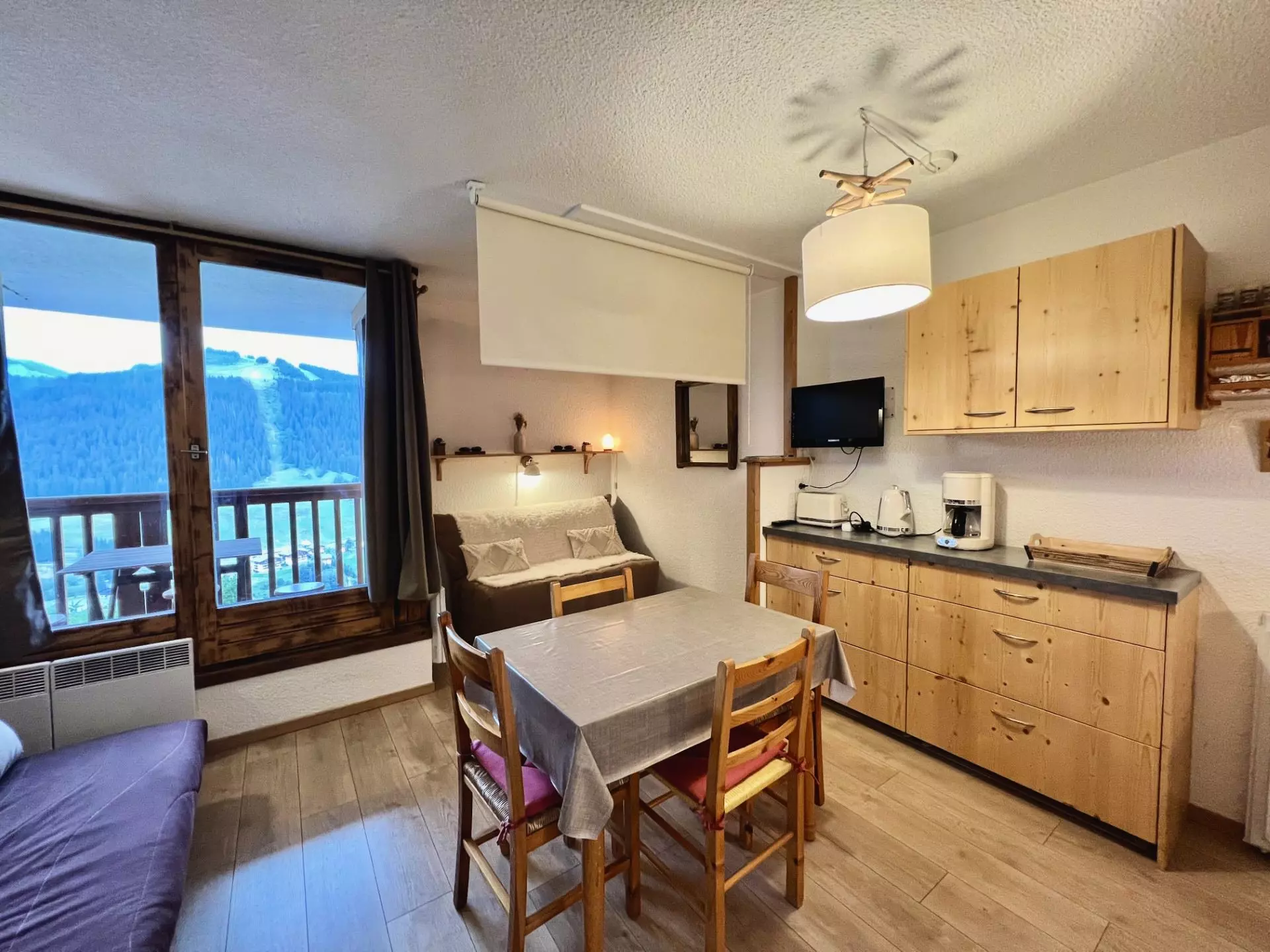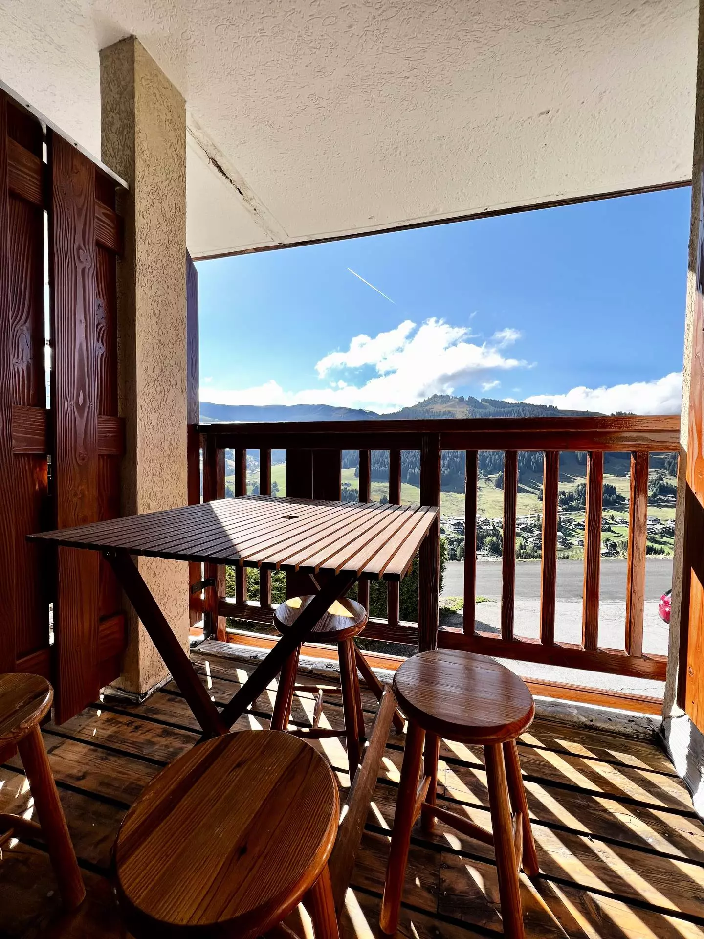 Sur les côteaux du Mont Lachat, appartement de quatre couchages, d'une surface de 23 m². Au 1er étage, il bénéficie d'un balcon sud offrant une vue exceptionnelle sur la vallée et le massif du Mont Rond.