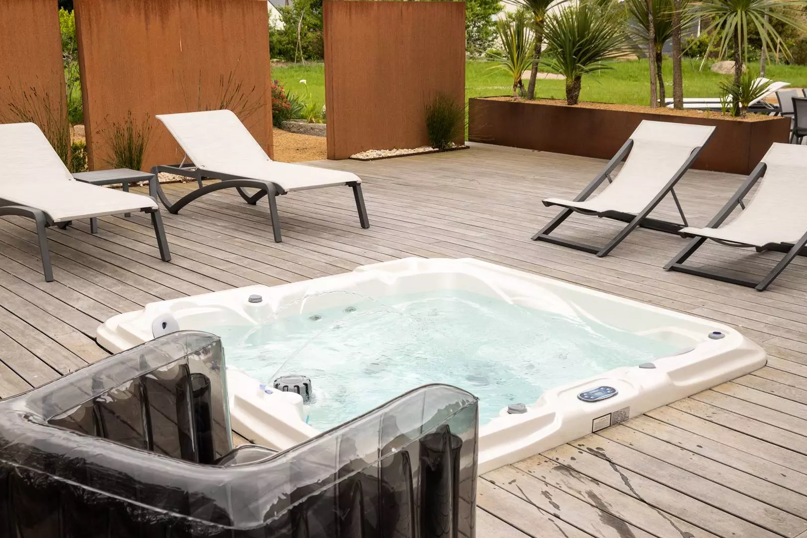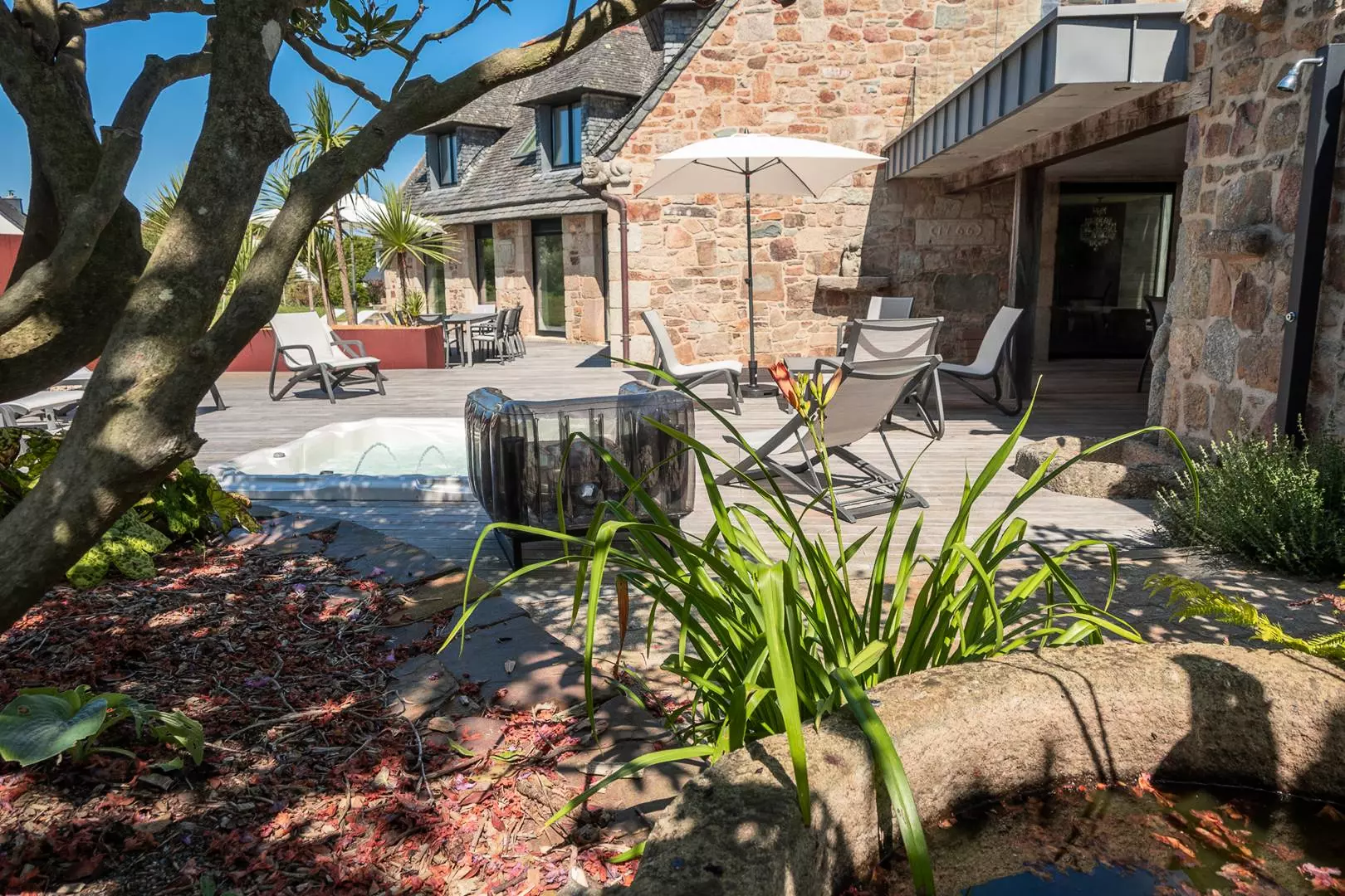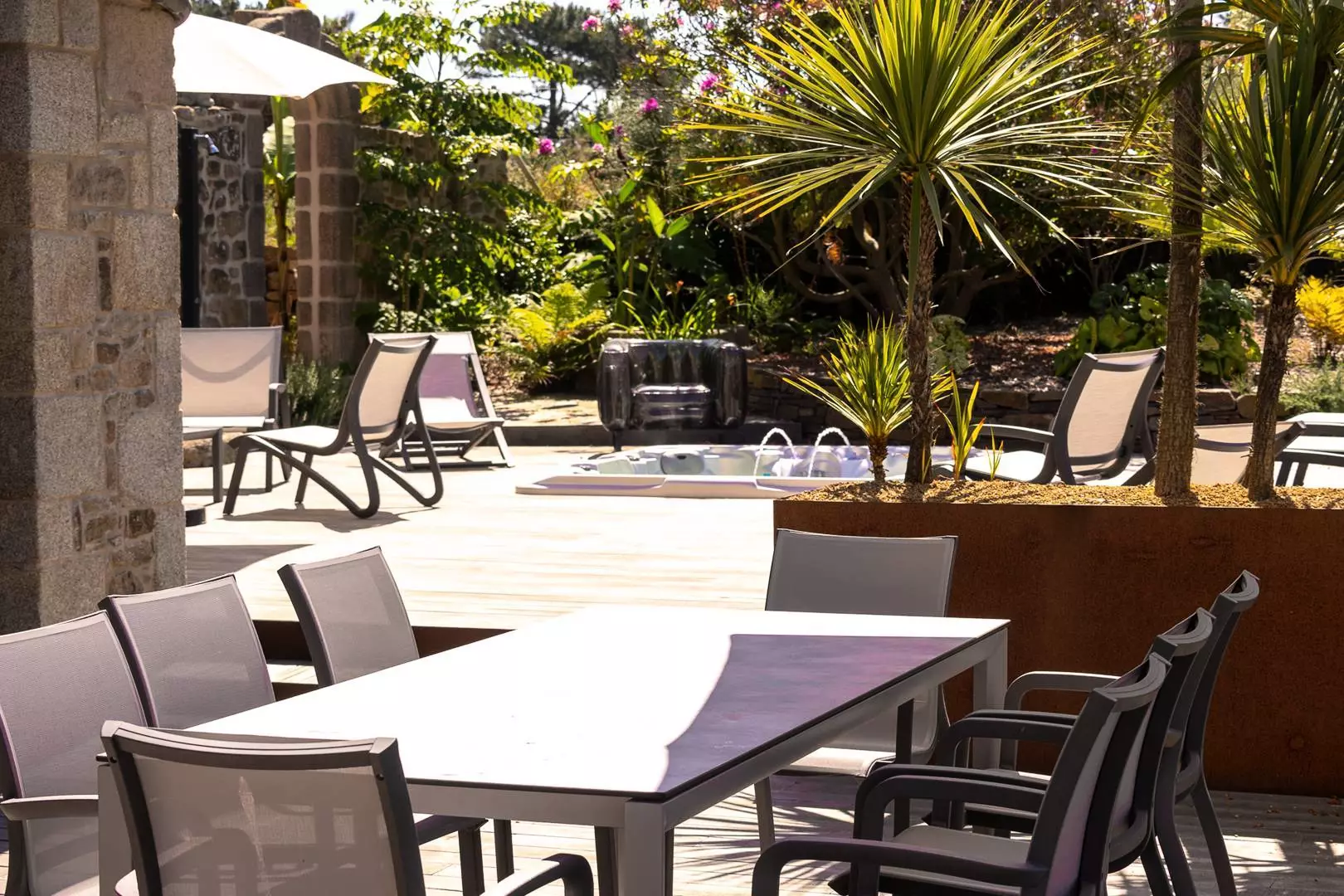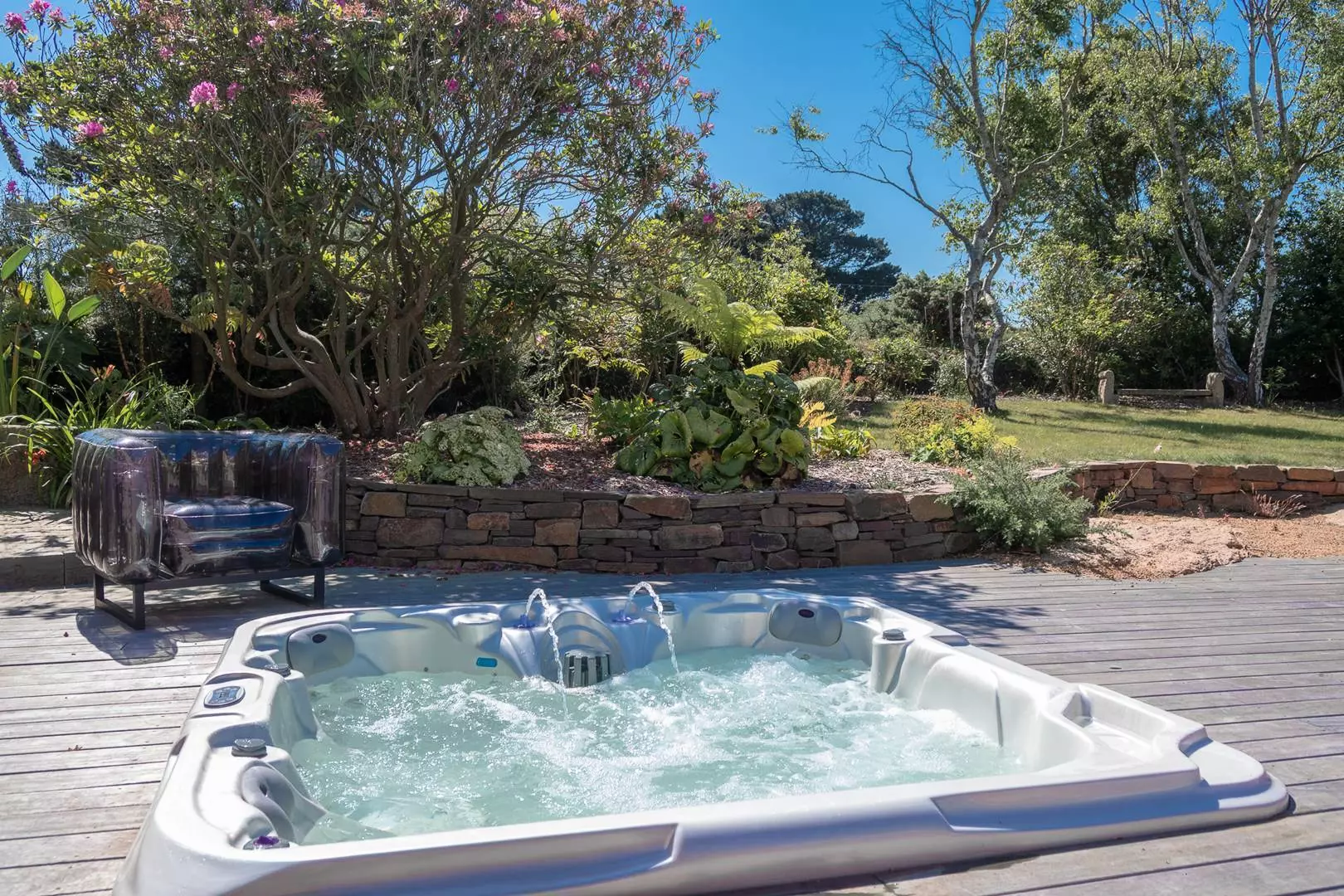 Détendez-vous à l'abri des regards dans son agréable jardin clos et fleuri et partagez des moments de convivialité autour du Spa, du barbecue, de son salon de jardin et chaises longues.