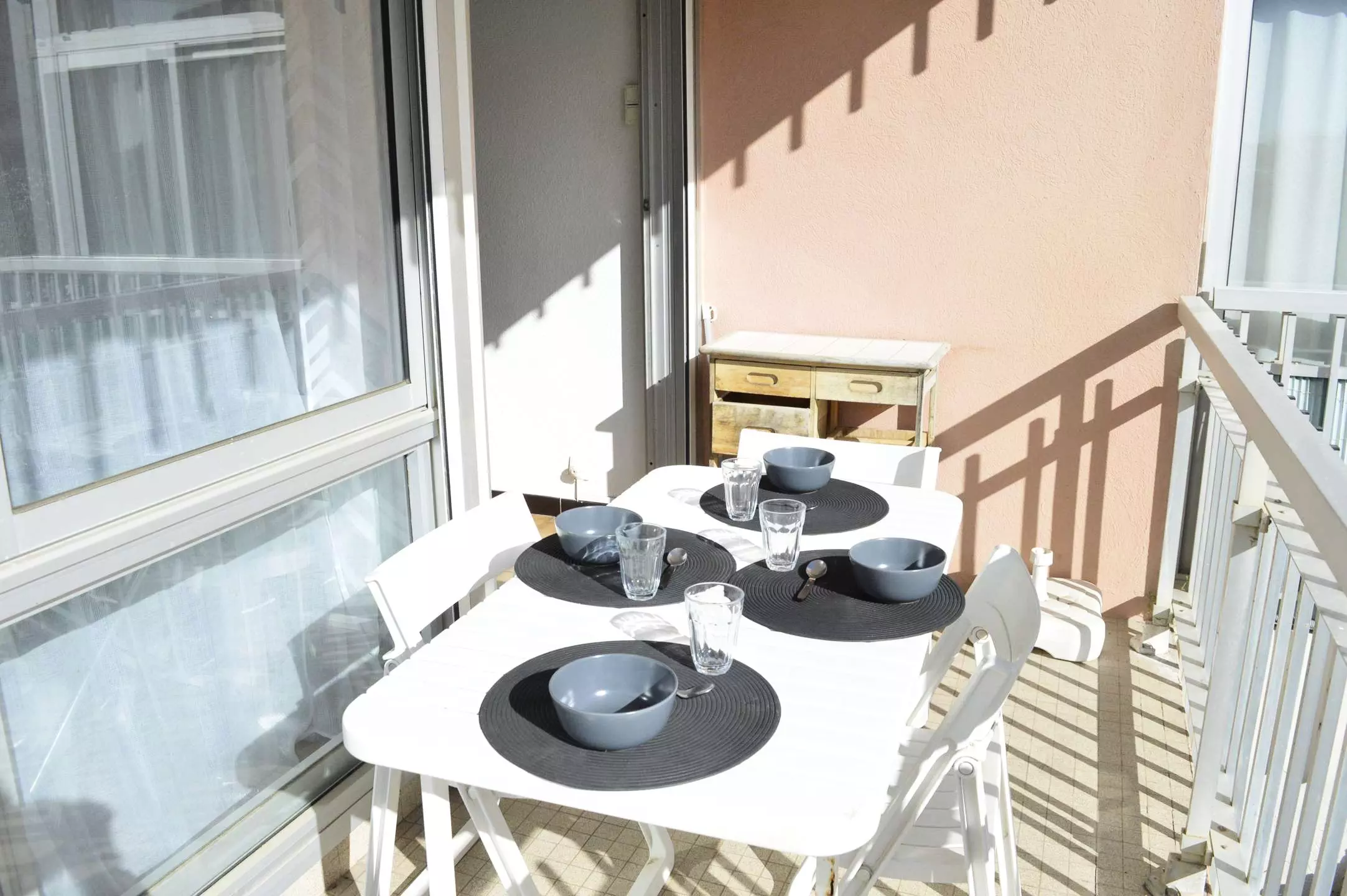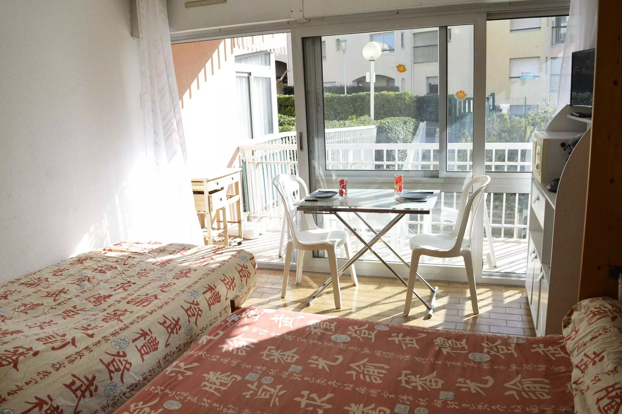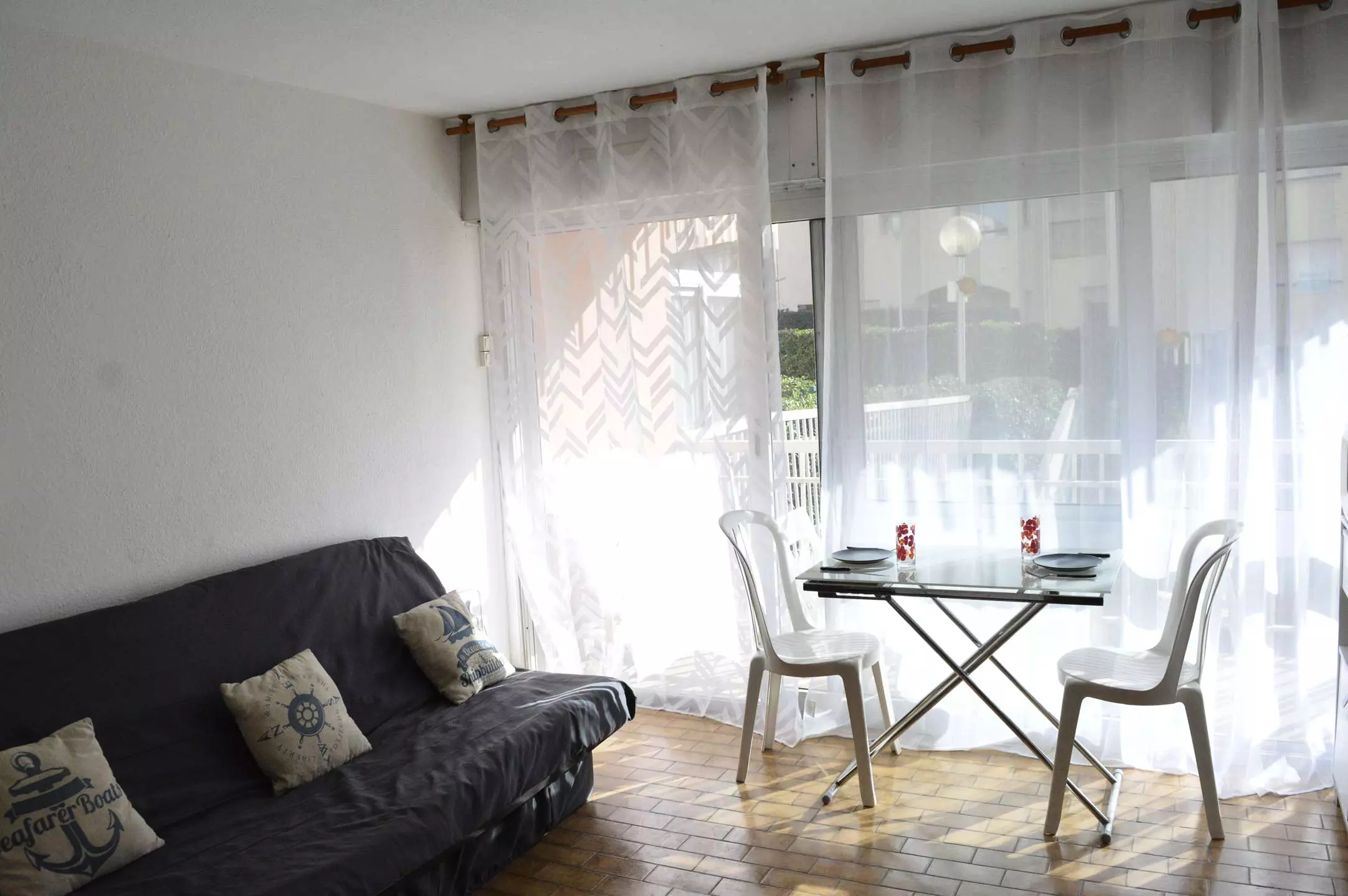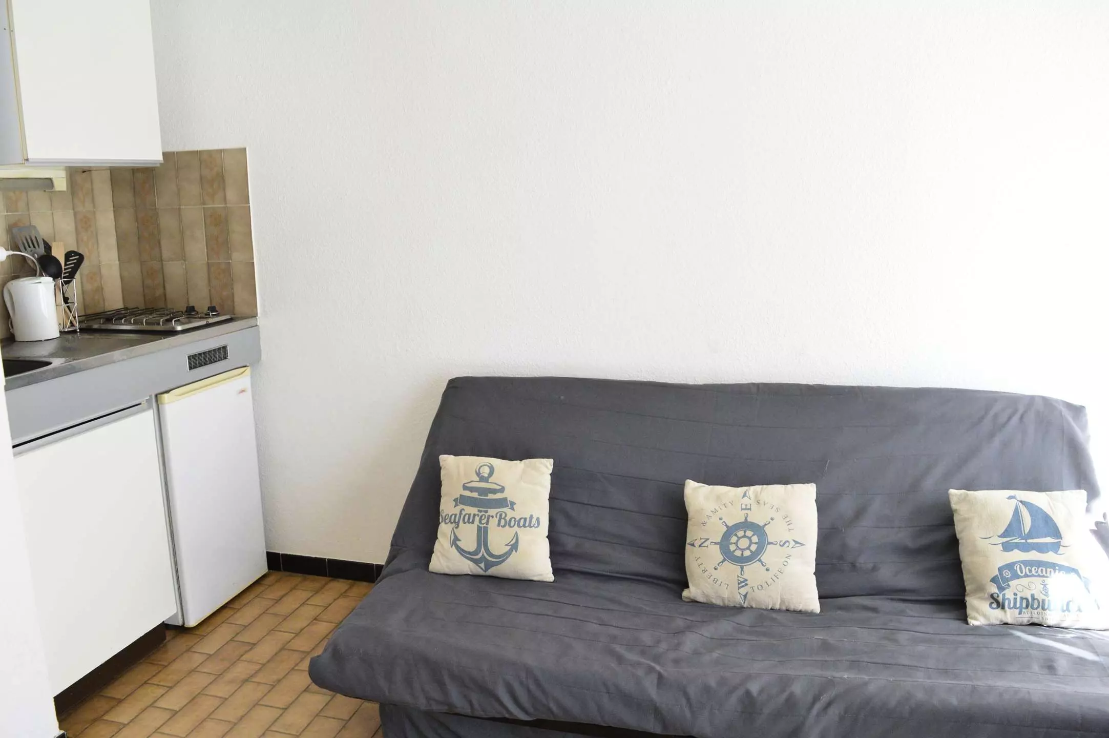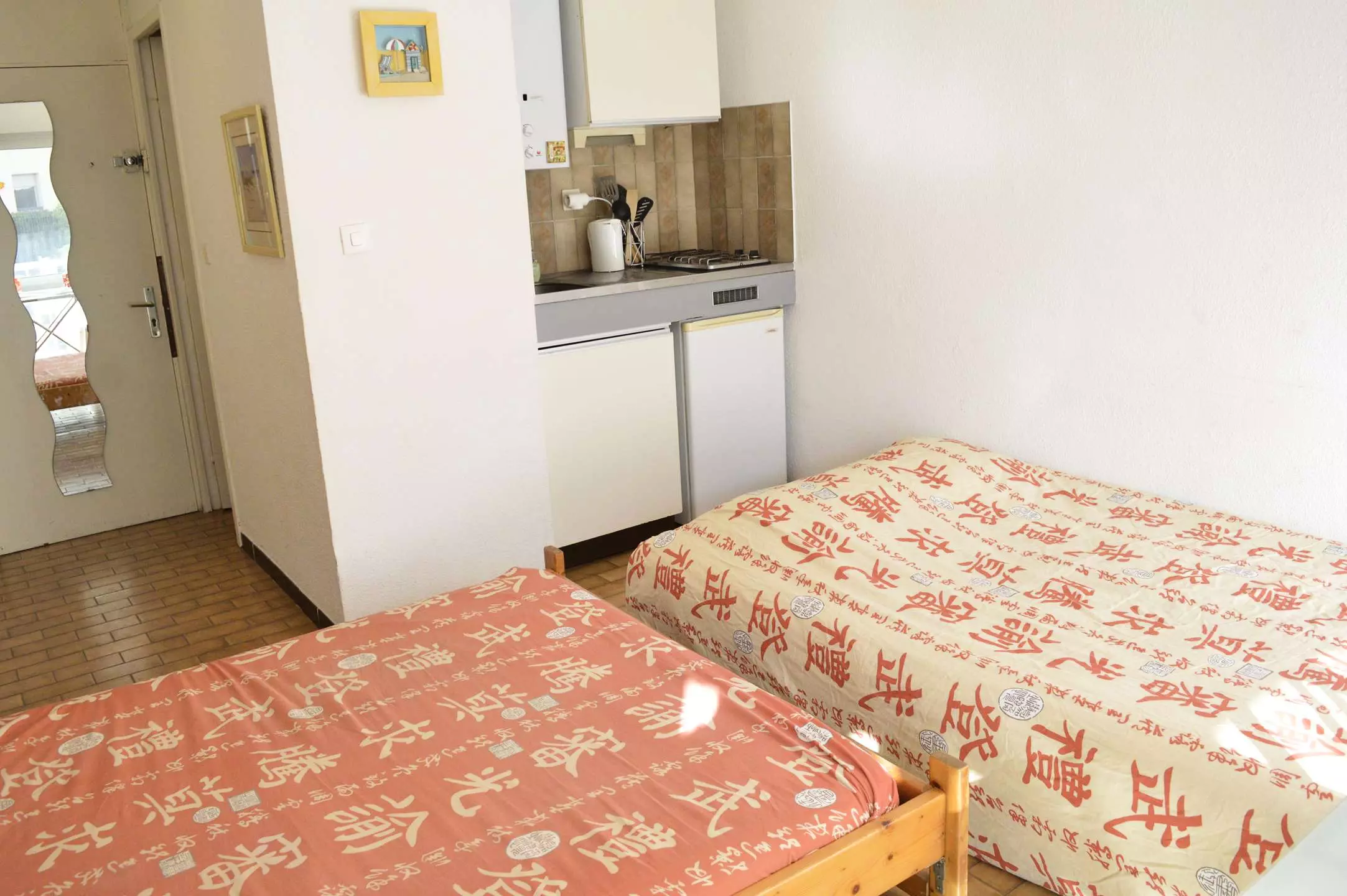 Cet appartement de vacances, situé au 1er étage avec ascenseur comprend un séjour avec un canapé convertible 2 places en 140 et une télévision ainsi qu'un lit armoire 2 places en 140, un coin kitchenette avec micro-ondes et réfrigérateur ainsi qu'une salle de bain avec WC .