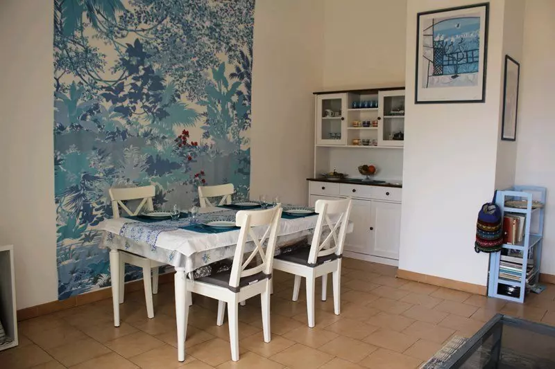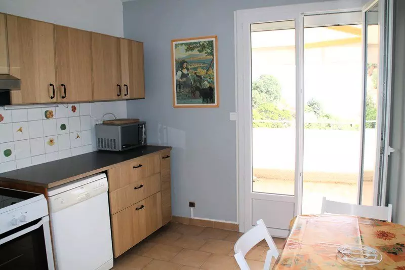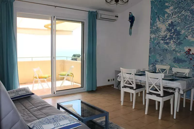 L'appartement comprend: une entrée, une cuisine équipée indépendante, un salon salle à manger climatisé (avec canapé convertible) ouvert sur la terrasse, deux chambres non climatisées, une salle de bains et un WC indépendant.