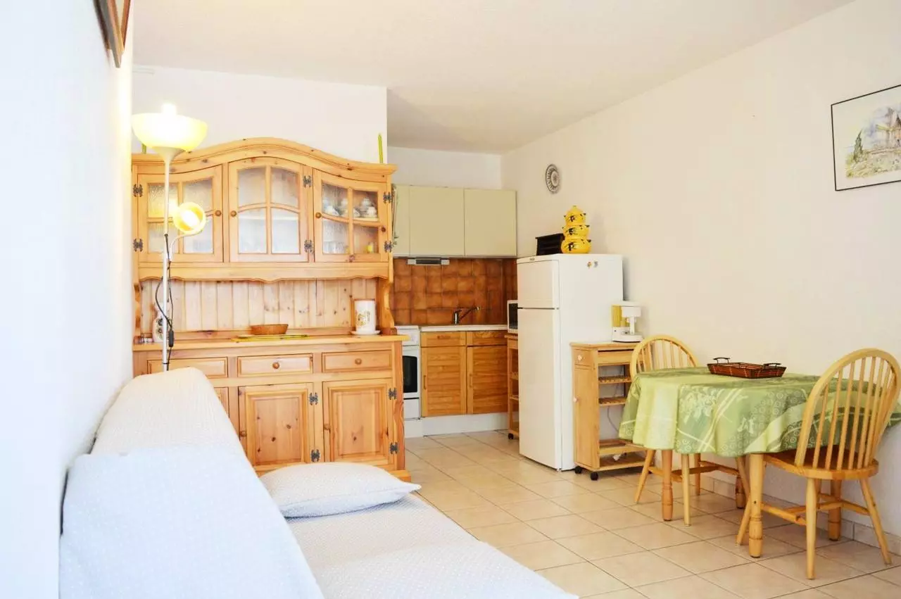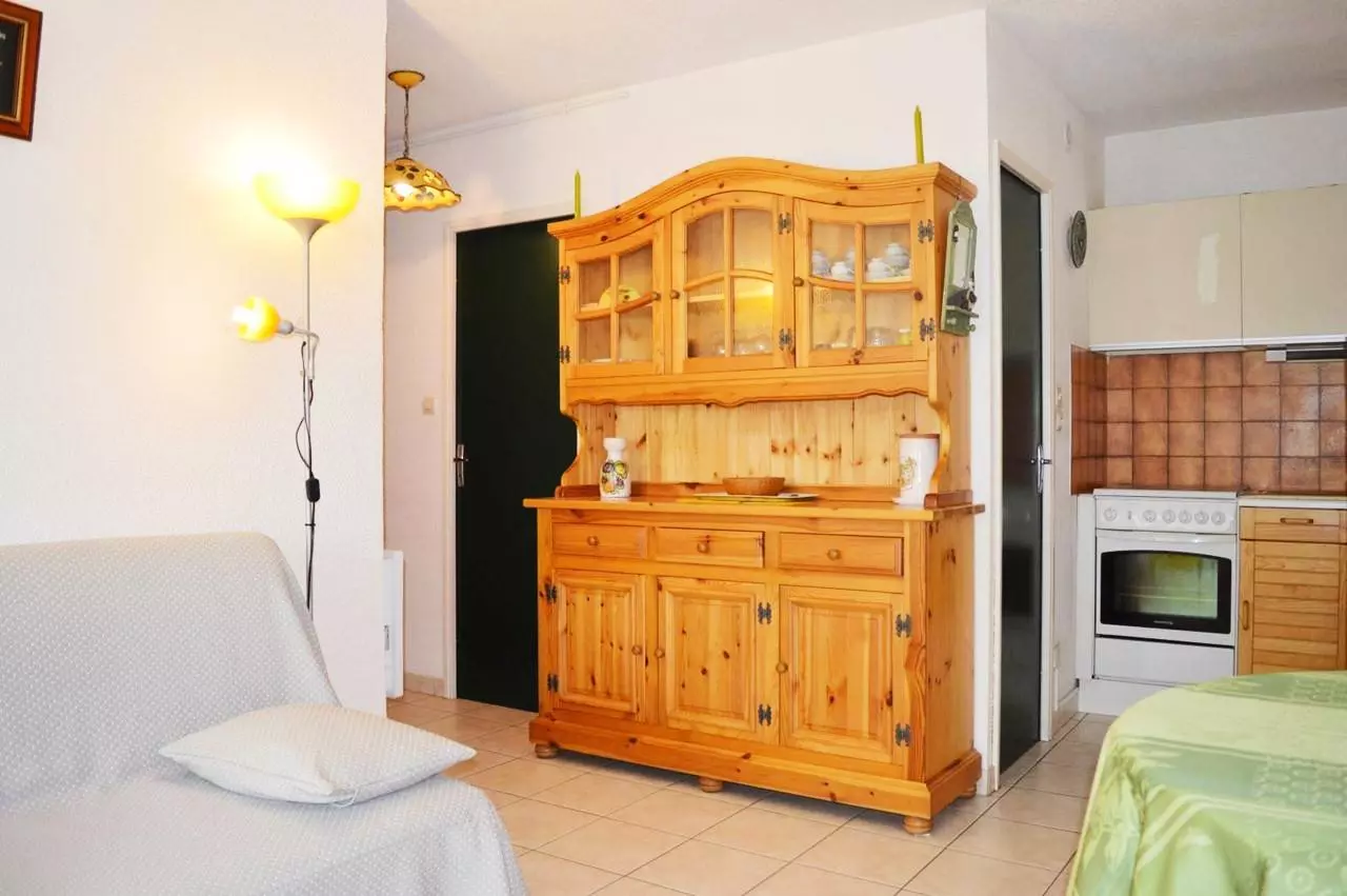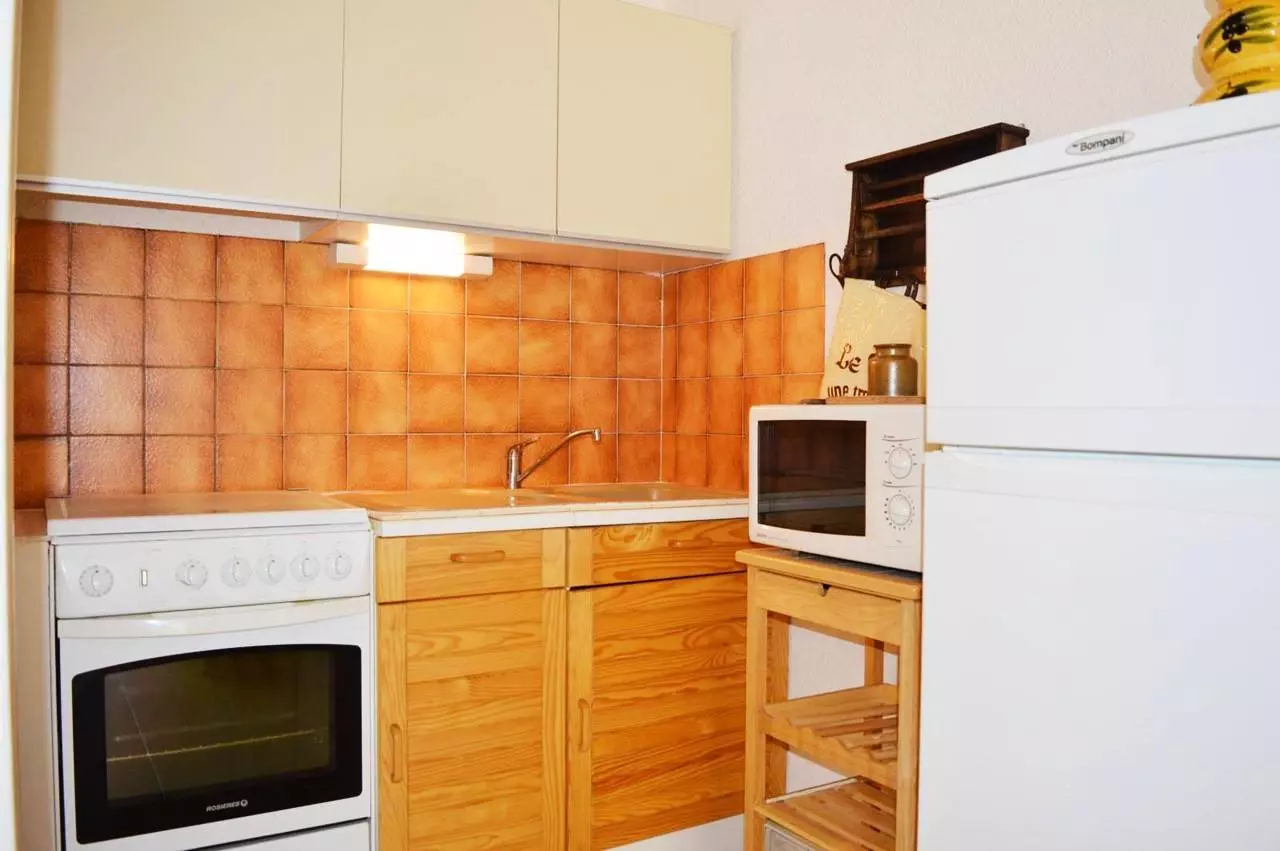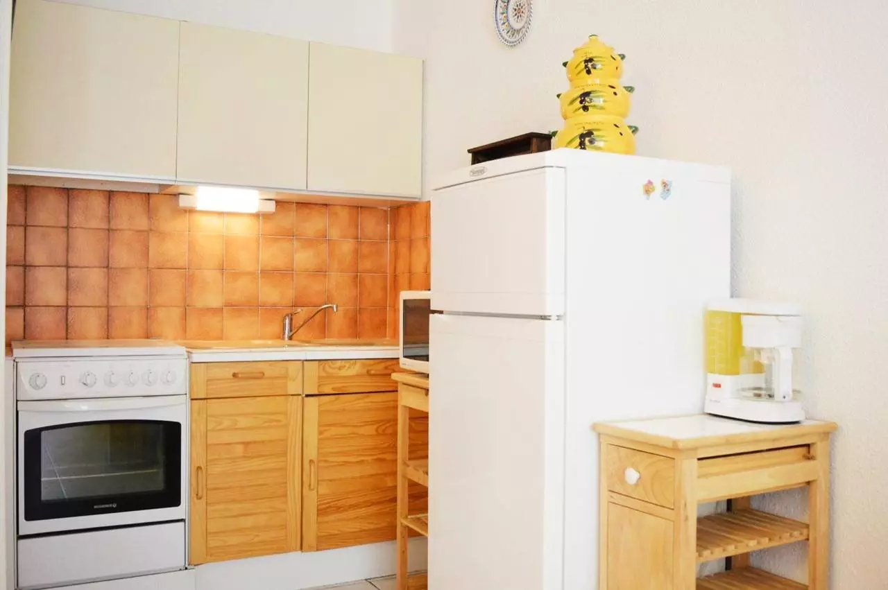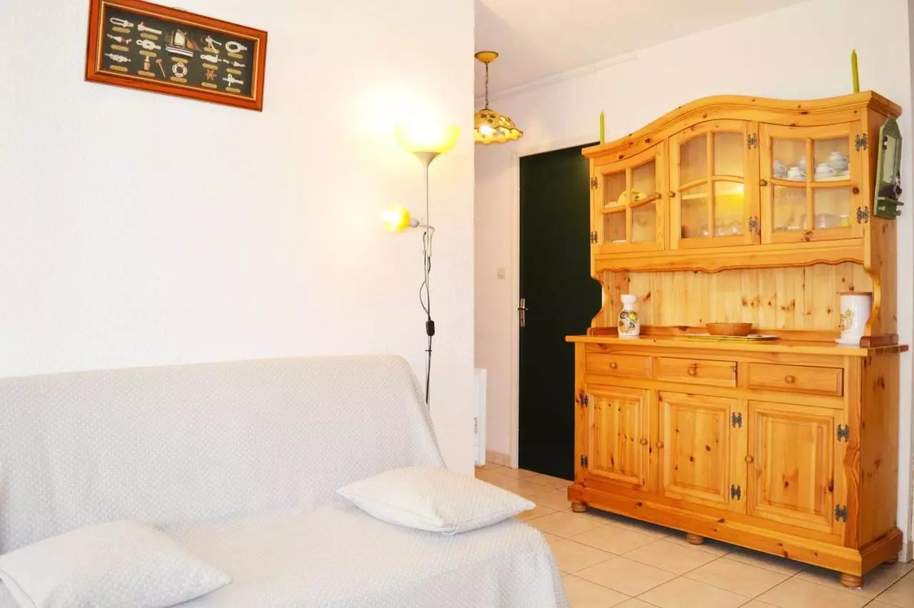 Cette location saisonnière à la mer se trouve au rez de chaussé et est constituée d'un séjour avec un canapé convertible 2 places et télévision, d'un coin cuisine équipé, d'une chambre avec 1 lit 2 personnes et d'une salle d'eau avec wc.