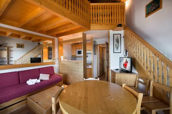 Appartement chaleureux de 65m²,situé au 1er étage de la résidence, exposé ouest, peut acceuillir 6 personnes (ascenseur de droite dans le hall). Ce T4 est skis aux pieds avec l'accès aux pistes au 3ème étage et à côté des commerces. Il dispose d'une vue splendide sur la vallée et les pistes de 1850.