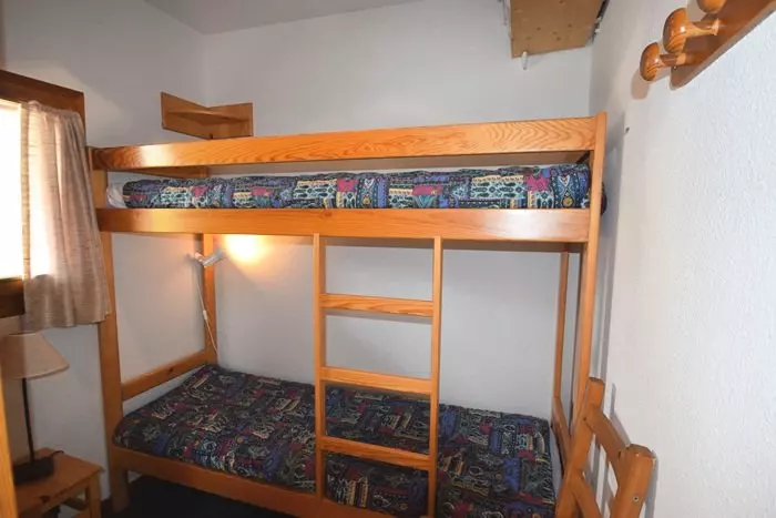 Appt 2 pièces, 4/5 pers, 25m2, balcon, expo sud, vue pistes, 4 ème étage, asc. Cuisine : 2 plaques élec, four, micro-ondes, réfrigérateur, lave-vaisselle - Séjour : coin repas, coin salon, 1 canapé-lit 2 pers, 1 lit banquette 1 pers, TV . Chambre : 2 lits superposés pour enfants (70cm). Salle de Bains : baignoire, WC séparés. Sols : plastique, sauf cuisine, SDB, WC : carrelage. Literie : couettes - Appt très bien situé par rapport aux pistes et aux commerces, très agréable avec un grand balcon ensoleillé. Casier à skis n°409 au niveau sortie pistes. En option et en supplément: Ménage de fin de séjour, draps, serviettes, forfaits ski.