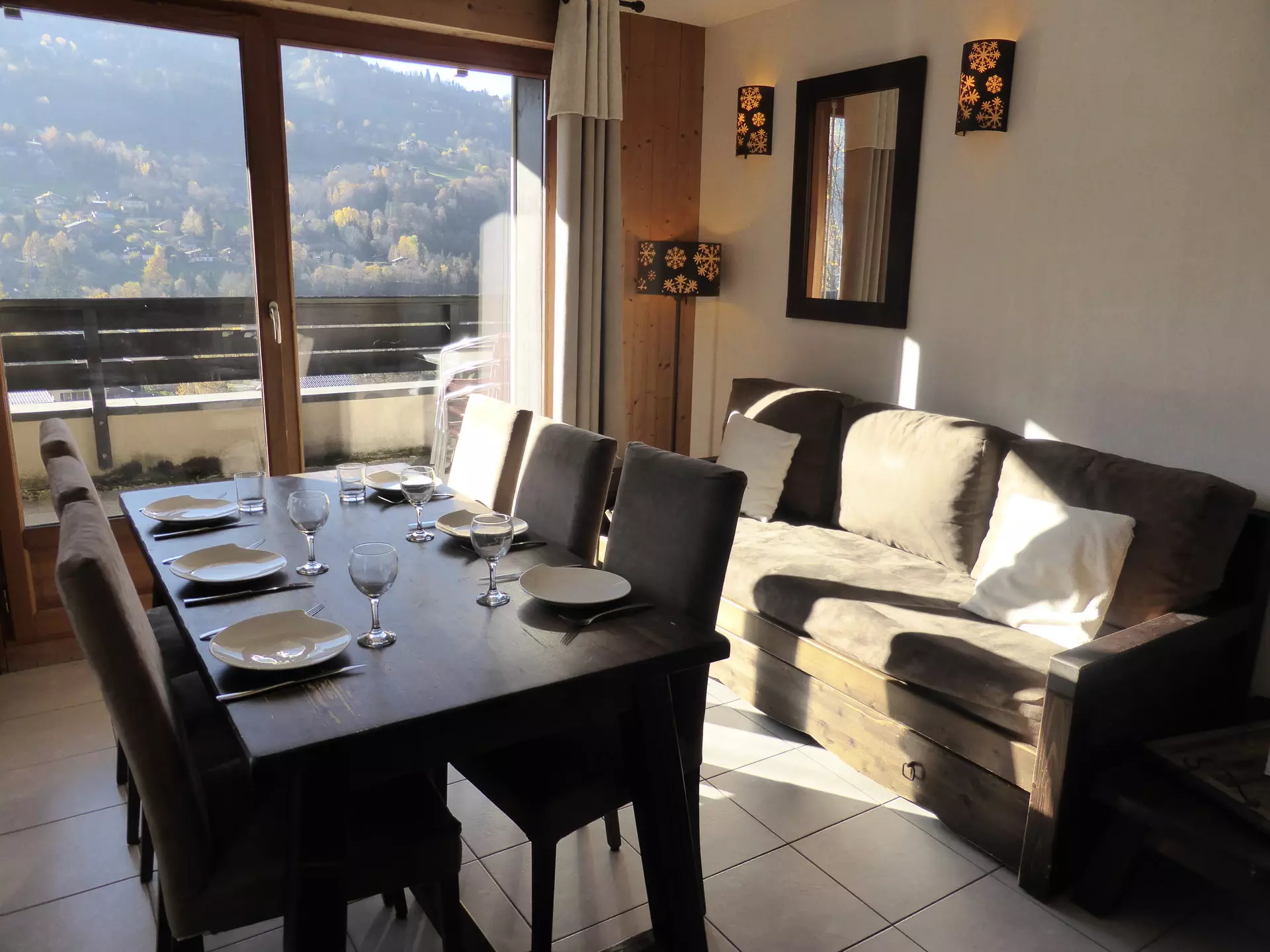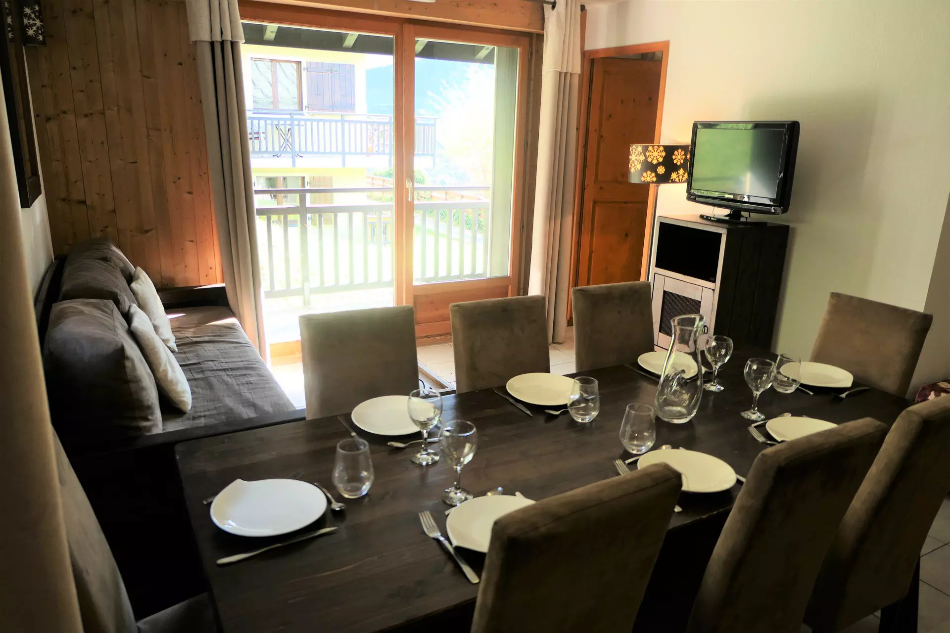 L'appartement se situe au 3ème étage et offre une exposition Sud-Est. Il possède un balcon avec table extérieure qui vous permettra de contempler la vue offerte sur le Mont-Joly.