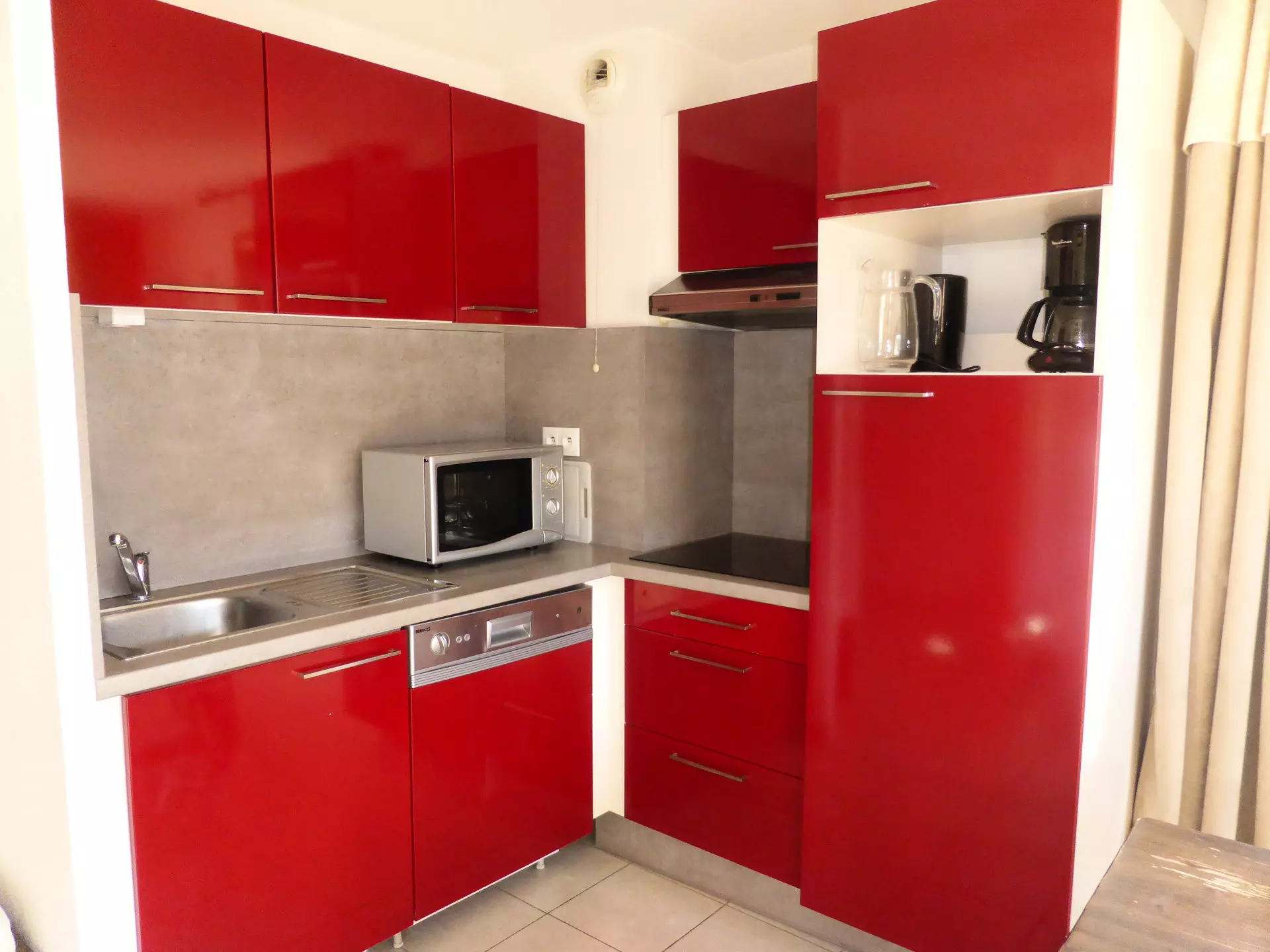 • Cuisine équipée avec lave-vaisselle, plaques vitrocéramiques, réfrigérateur, micro-onde, cafetière, grille-pain et bouilloire.