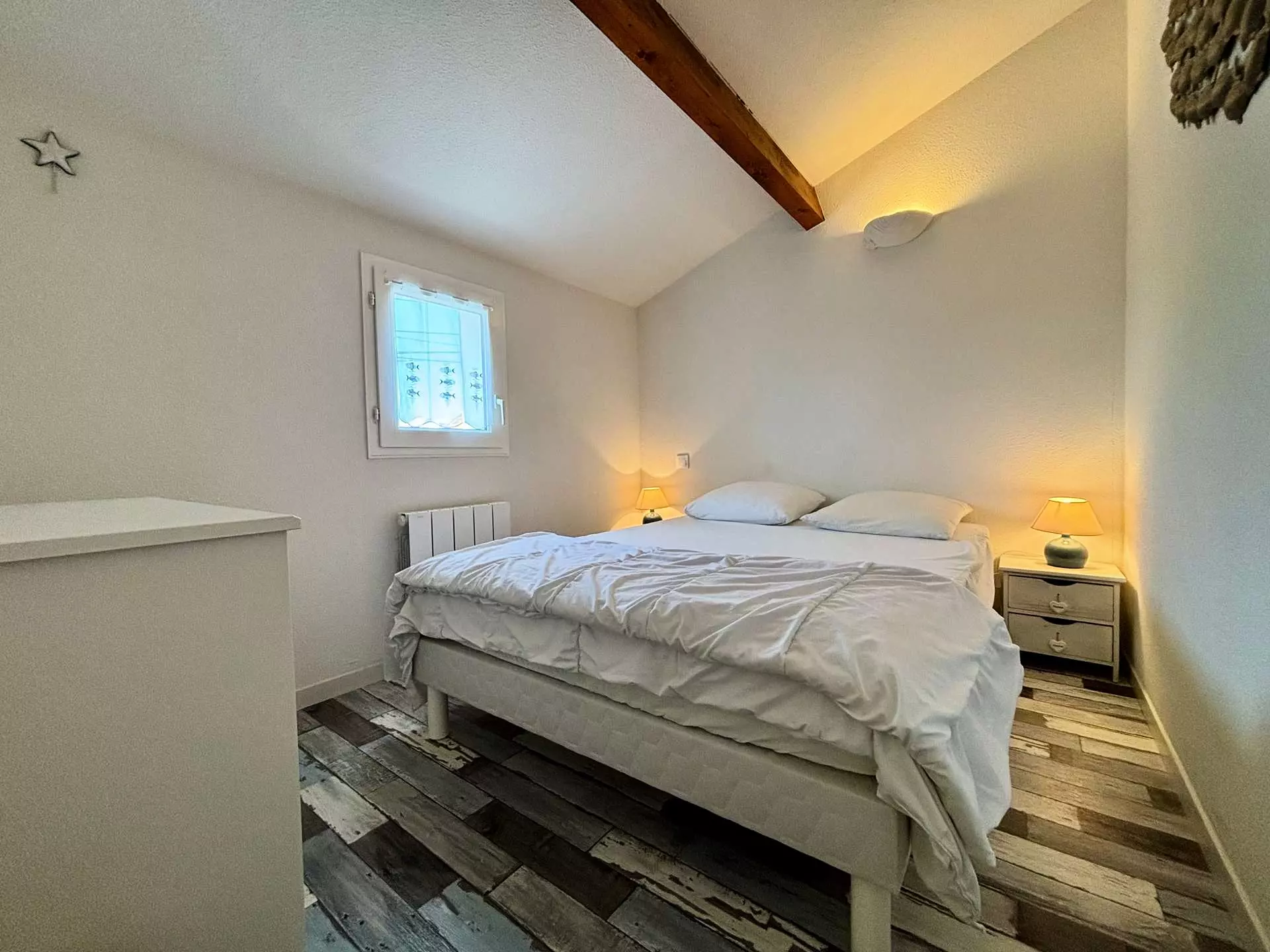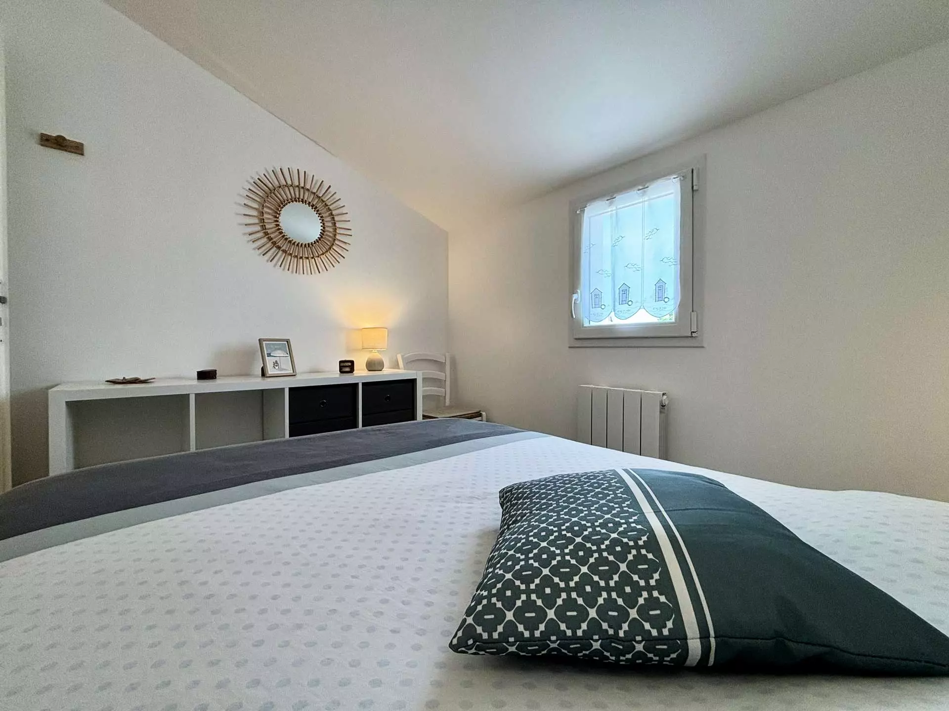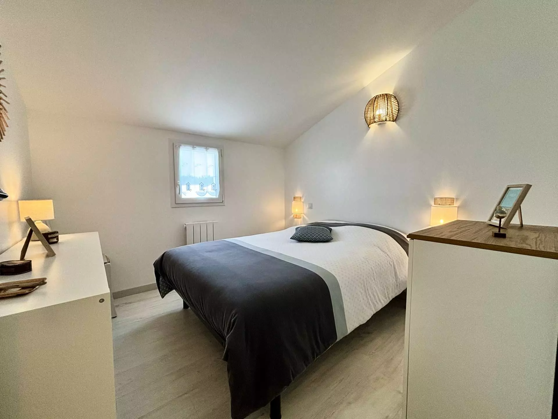 Située à deux pas de la plage, maison rénovée en résidence calme, se composant d'un séjour avec cuisine ouverte entièrement équipée et aménagée, coin salon avec télévision écran plat, d'une première salle d'eau avec douche et WC et d'une seconde salle d'eau avec douche à l'italienne et lave-linge, à l'étage d'une première chambre deux couchages (90), d'une seconde chambre deux couchages (140), d'un WC indépendant et d'une troisième chambre deux couchages ( 140).