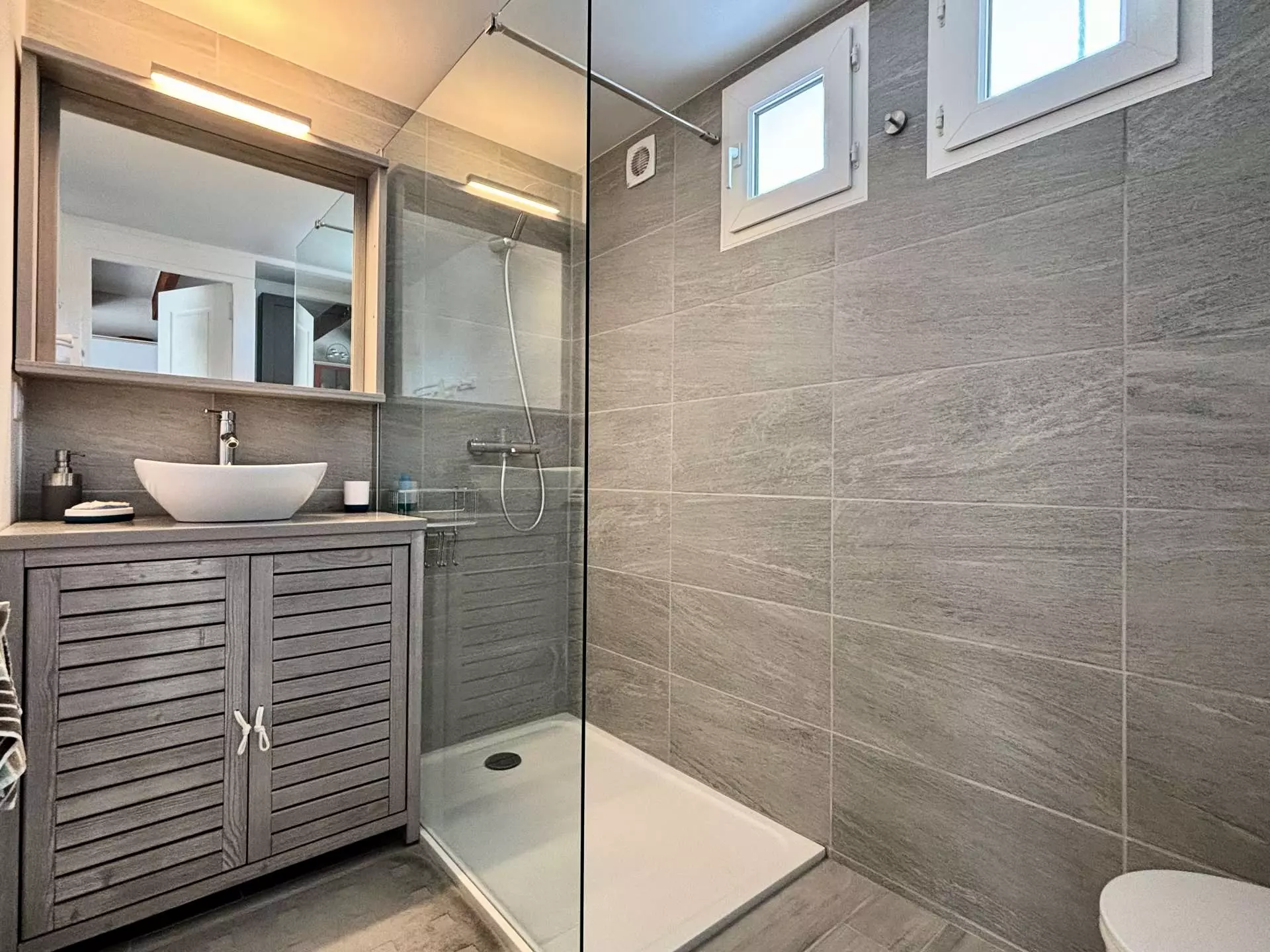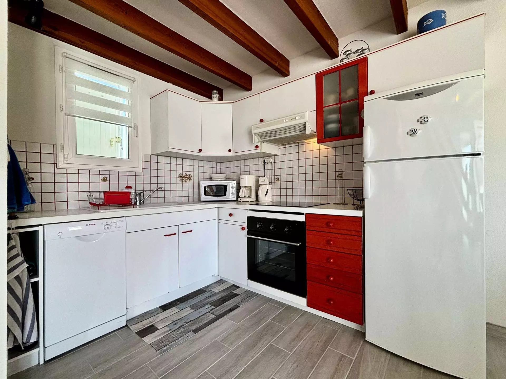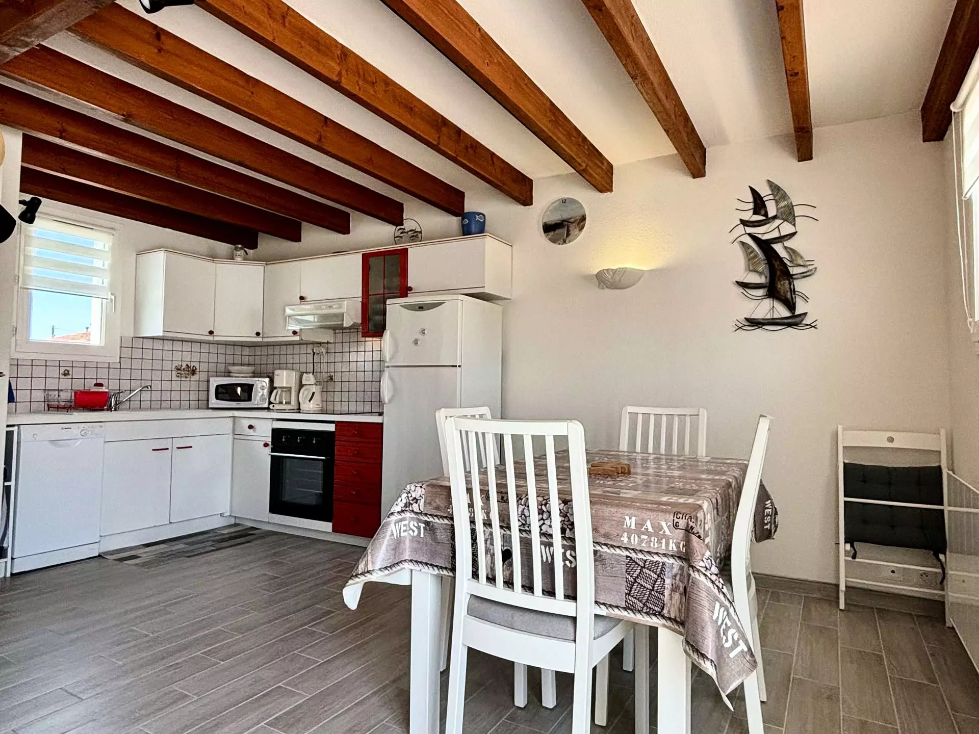 Située à deux pas de la plage, maison rénovée en résidence calme, se composant d'un séjour avec cuisine ouverte entièrement équipée et aménagée, coin salon avec télévision écran plat, d'une première salle d'eau avec douche et WC et d'une seconde salle d'eau avec douche à l'italienne et lave-linge, à l'étage d'une première chambre deux couchages (90), d'une seconde chambre deux couchages (140), d'un WC indépendant et d'une troisième chambre deux couchages ( 140).
