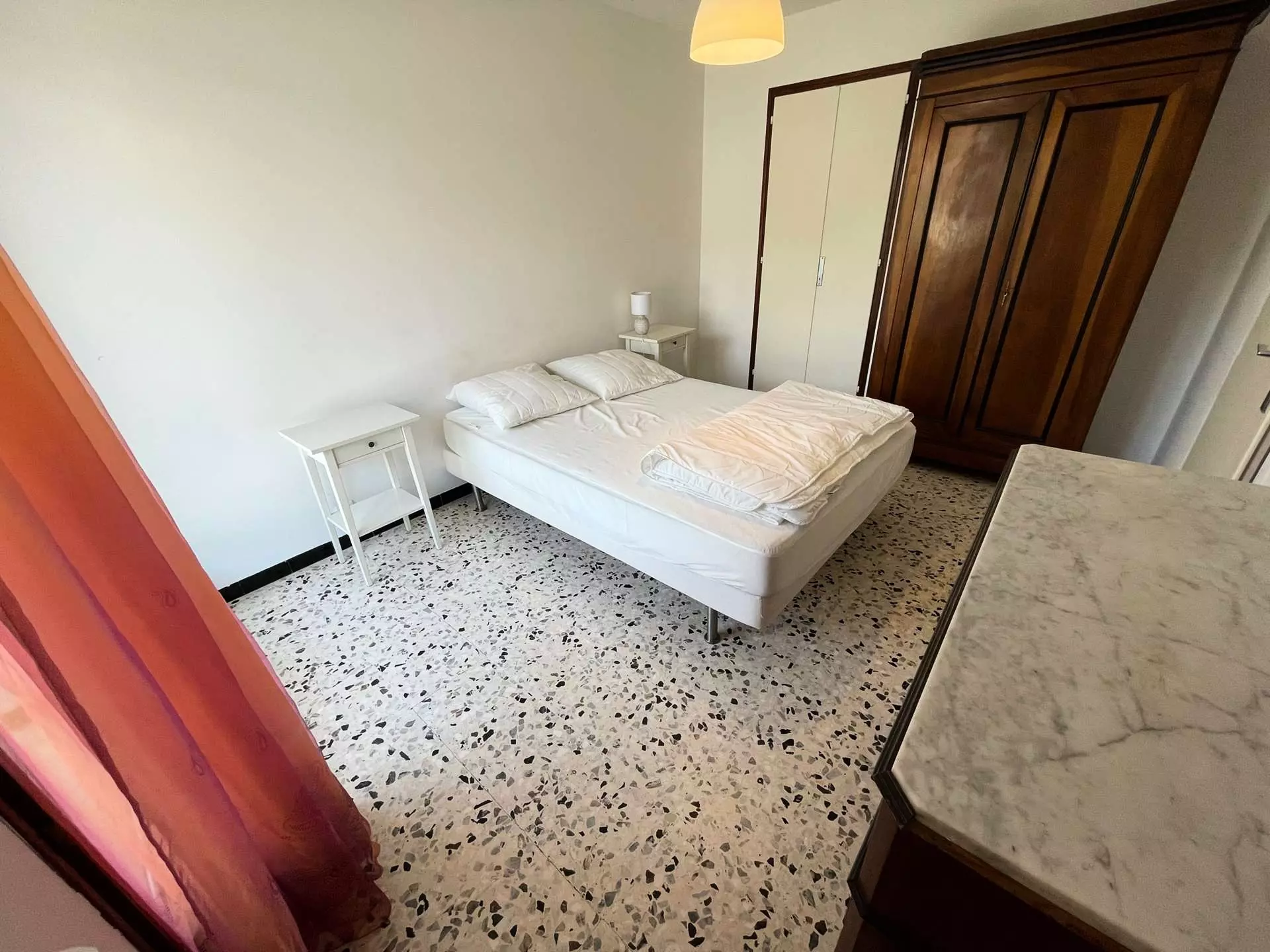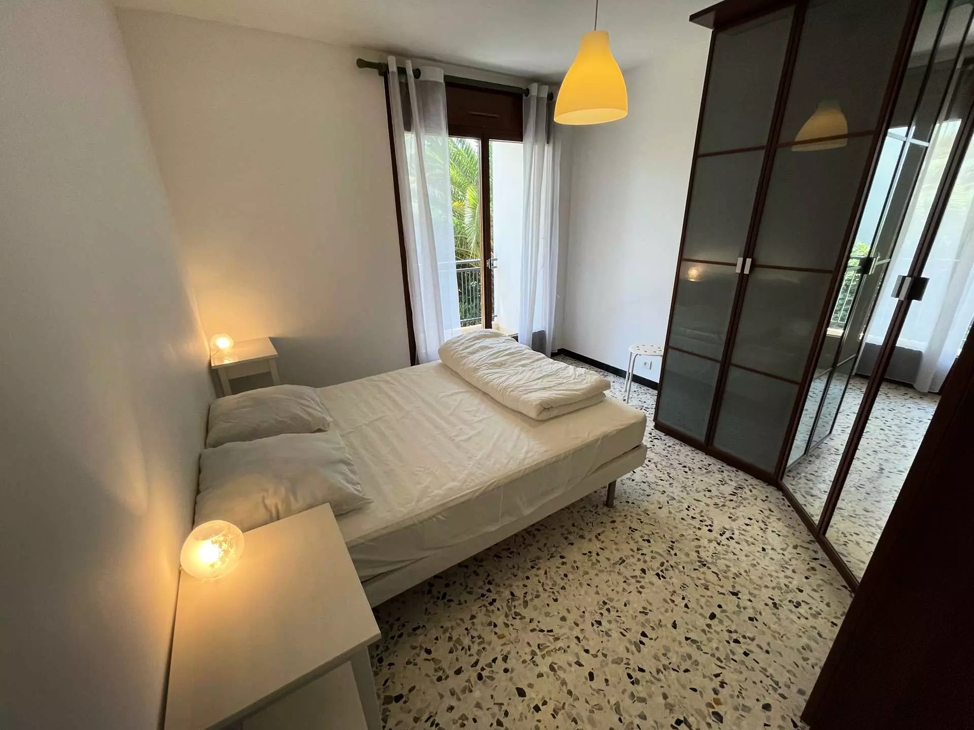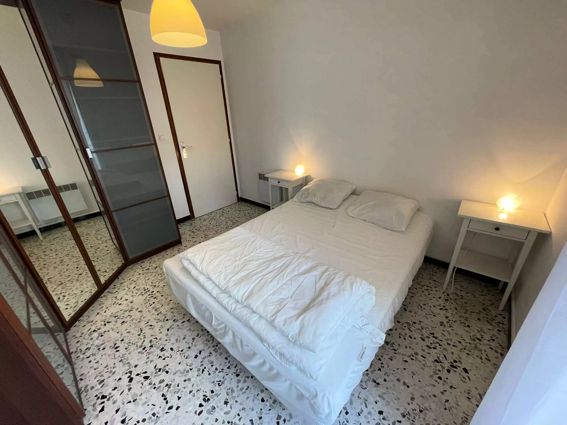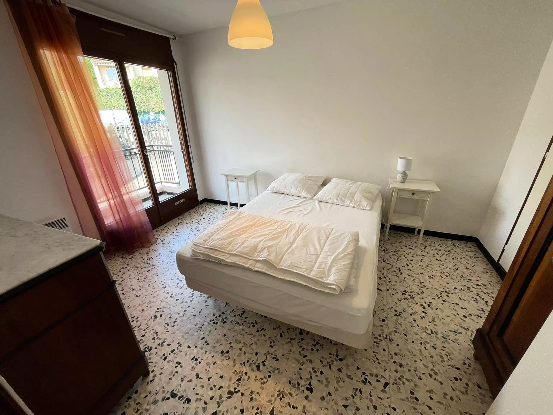Dans belle résidence fleurie, au calme, au 1° étage, confortable appartement traversant de 70 m², deux chambres, 4/6 couchages, deux balcons, chambre ouverte sur terrasse Sud : 1 lit double, seconde chambre (ouverte sur balcon nord) : 1 lit double en 140, Salle de bains avec baignoire, W.C séparés.