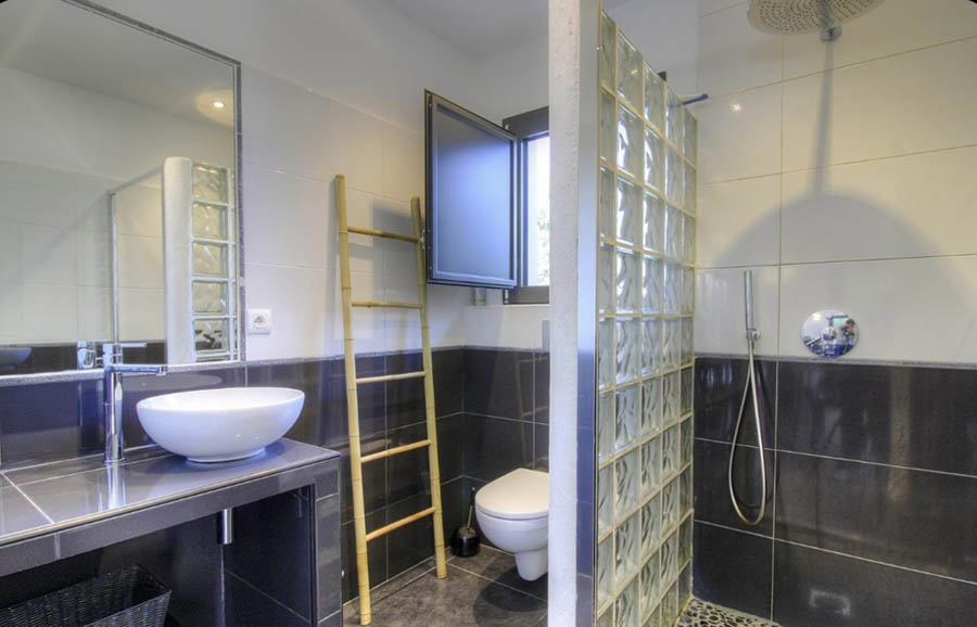 Salle d'eau avec douche à l'italienne, sèche-cheveux et WC privative dans chaque chambre.