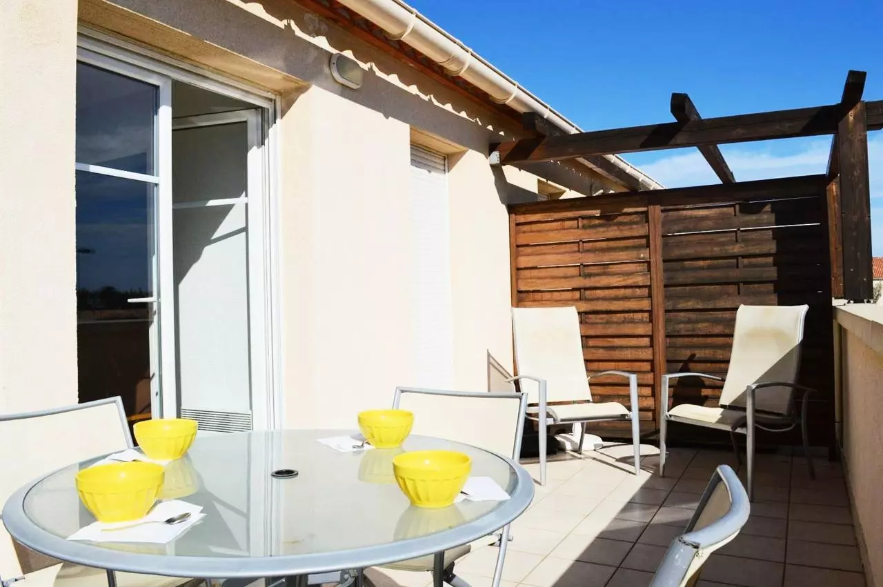 Les avantages de cette location à la plage : Ce logement bénéficie d'un parking privé, d'une grande terrasse exposée Sud avec salon de jardin et d'une vue piscine.