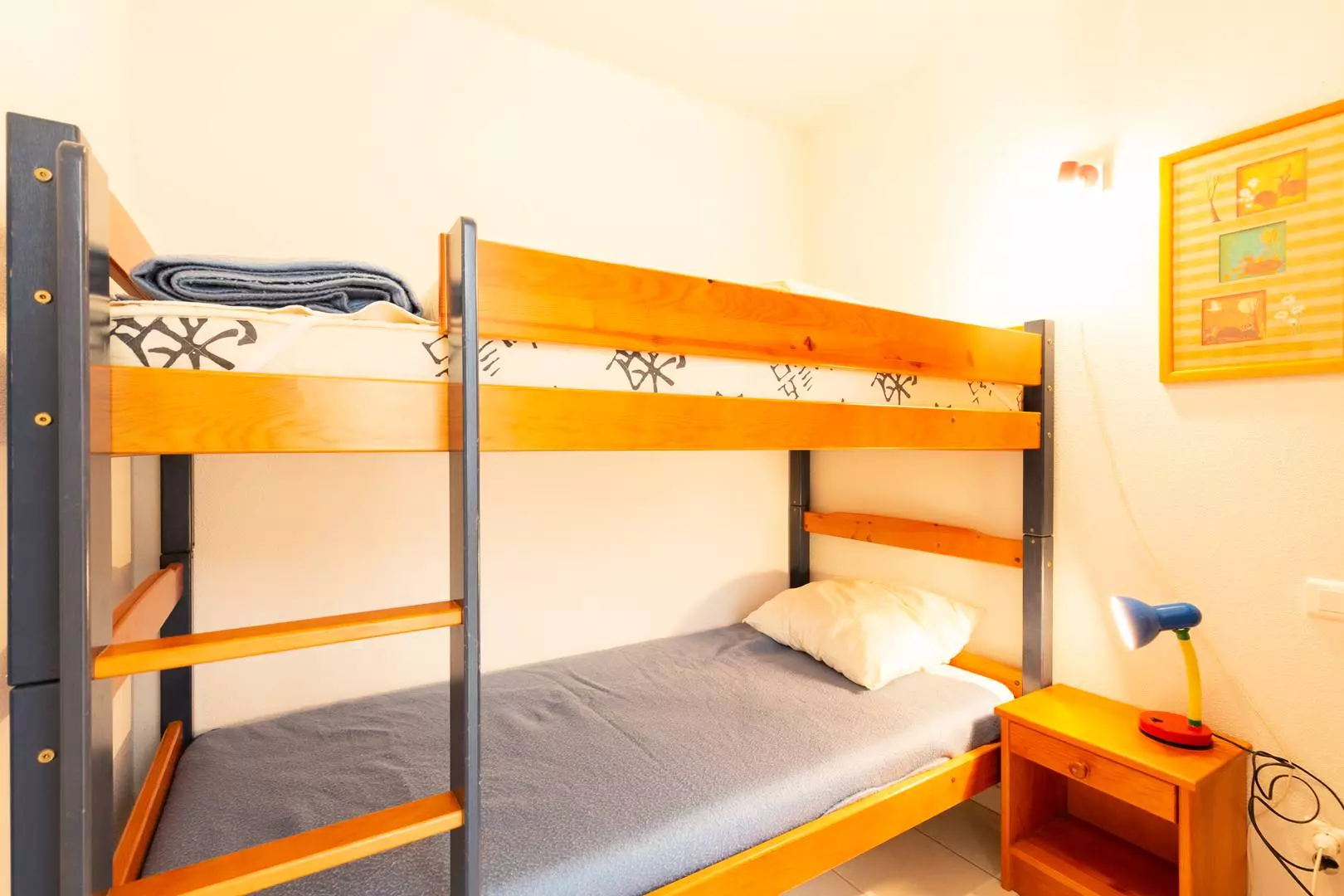 Une chambre avec 1 grand lit et une chambre avec 2 lits superposés
