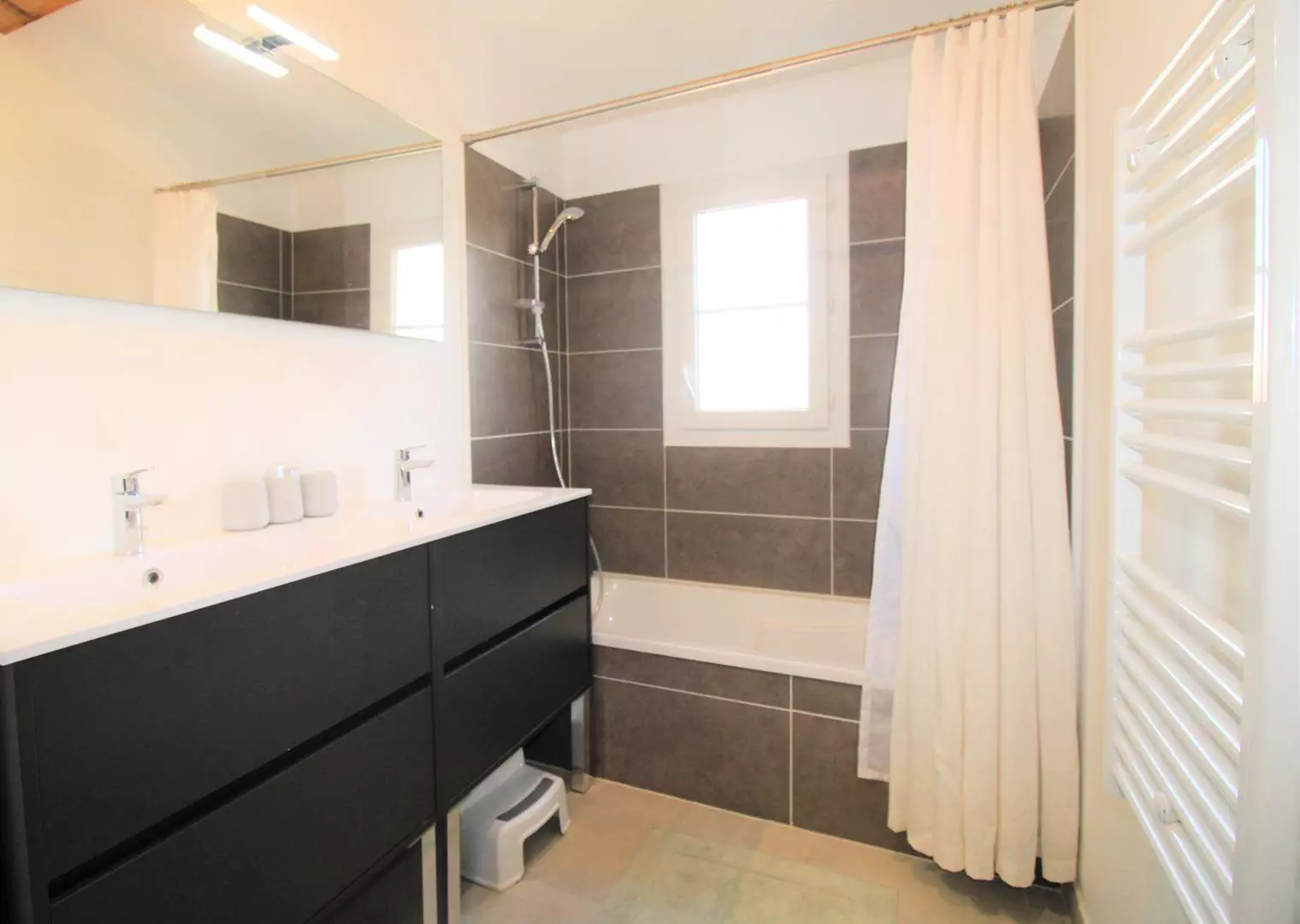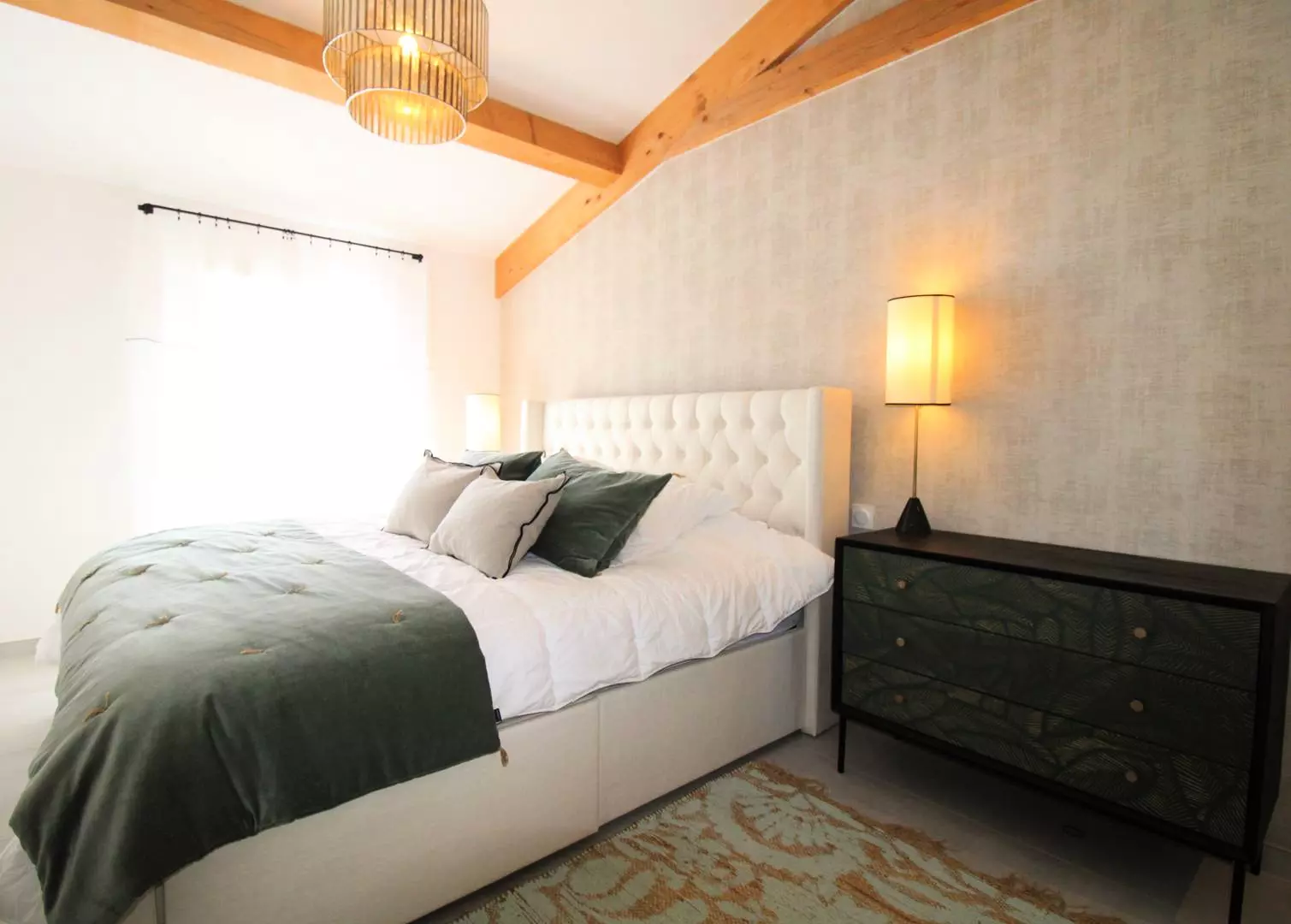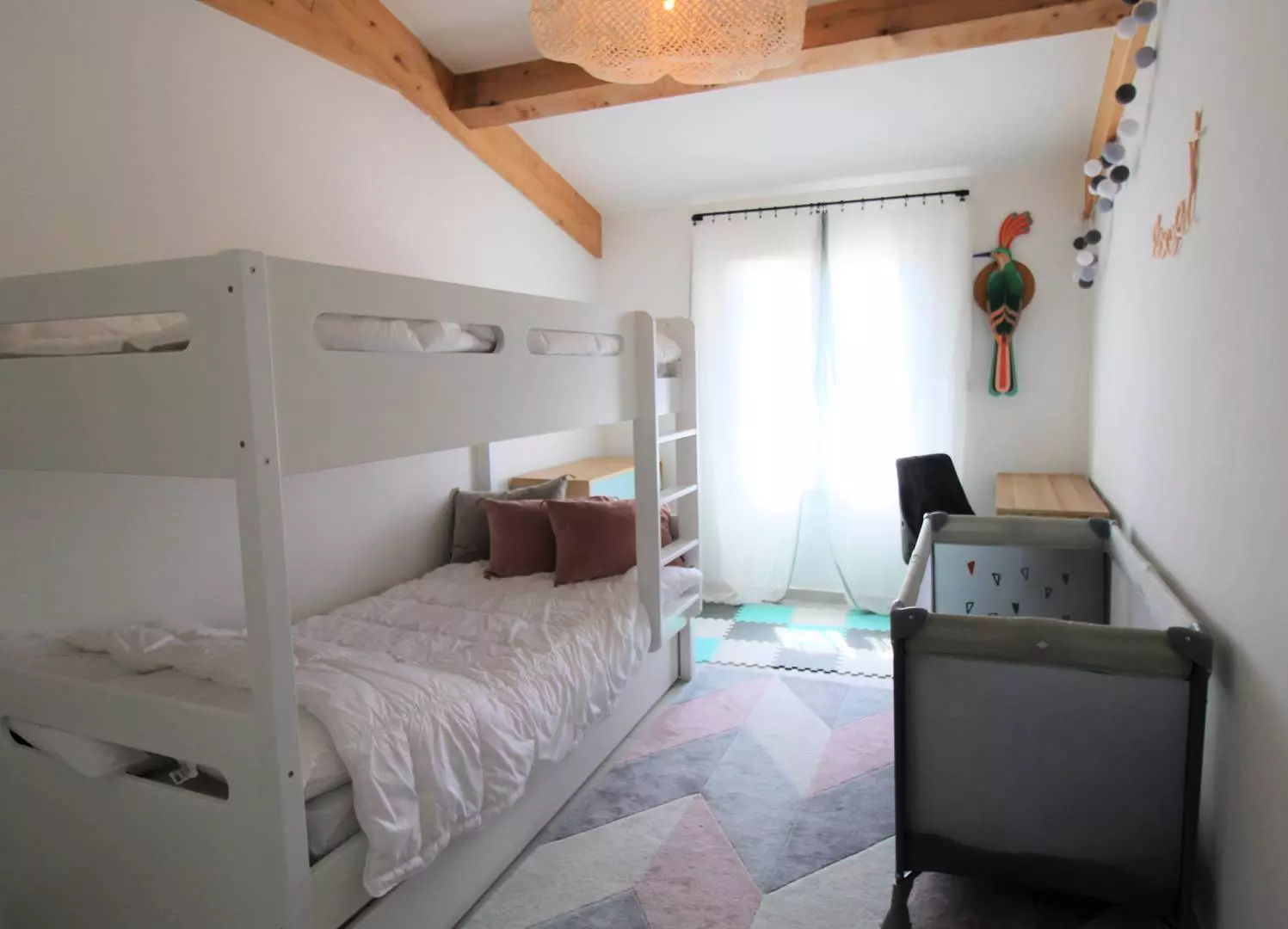 Découvrez une suite parentale élégante avec literie king-size (180 cm), salle de bain privative (WC séparés) et dressing. Deux autres chambres vous attendent : l'une avec un lit double (180 cm), l'autre, parfaite pour les enfants, équipée de deux lits superposés et d'un lit bébé. Ces chambres partagent une salle de bain et un WC séparé.