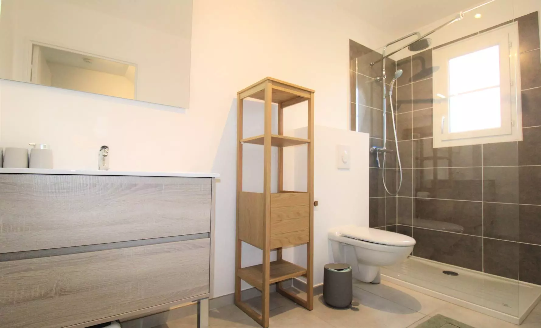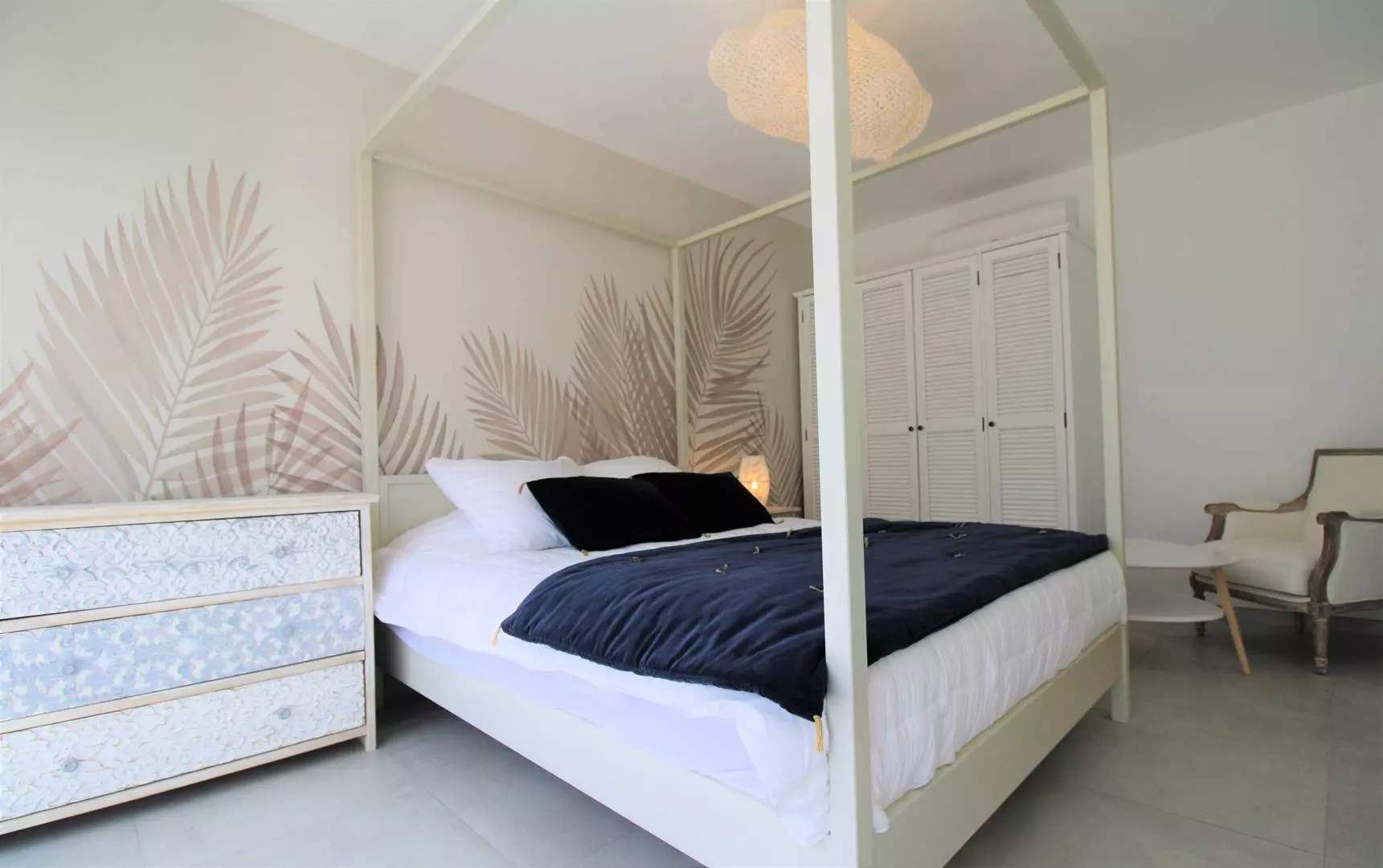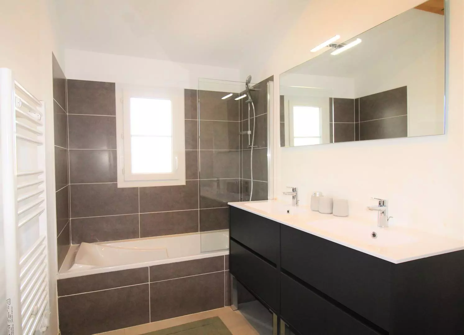 Découvrez une suite parentale élégante avec literie king-size (180 cm), salle de bain privative (WC séparés) et dressing. Deux autres chambres vous attendent : l'une avec un lit double (180 cm), l'autre, parfaite pour les enfants, équipée de deux lits superposés et d'un lit bébé. Ces chambres partagent une salle de bain et un WC séparé.
