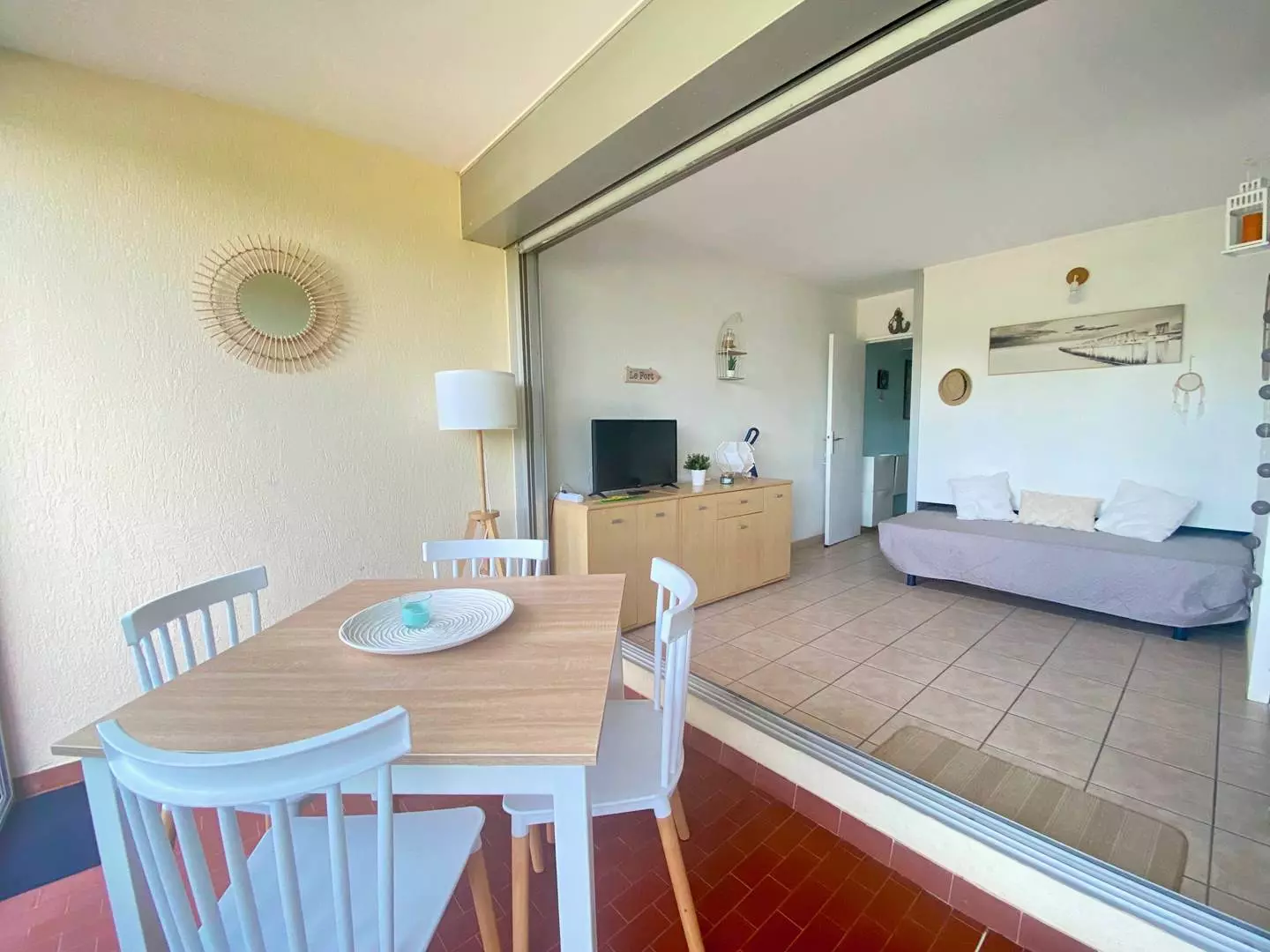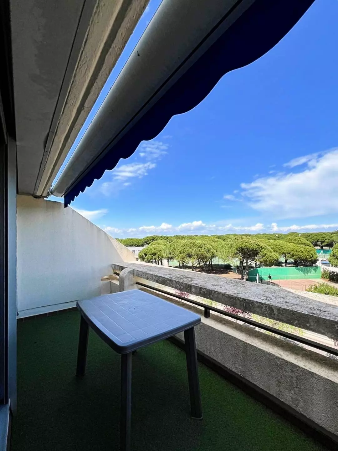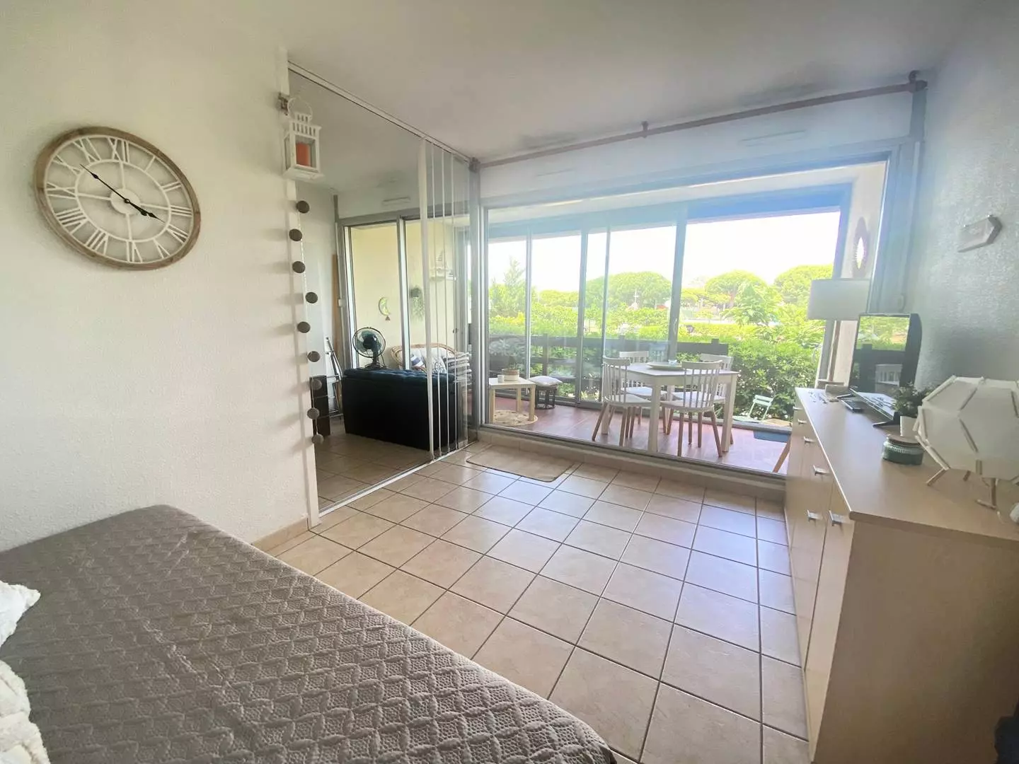Situé au 3ème et dernier étage de la résidence Les Jardins du Port, nous vous proposons ce charmant appartement de 23m². Il se compose d un coin cuisine ouverte sur une grande pièce à vivre, une salle d eau.. Avec son canapé convertible et ses 2 lits simples depliables, sa capacité de couchage est de 4 personnes . Vous pourrez profiter de son grand balcon avec vue sur les jardins et les courts de tennis de Port Camargue. Vous bénéficierez d une place de parking et de la piscine de la résidence dès le mois de juin. Venez passer d agréables vacances au Grau du Roi et vous découvrir notre belle région.