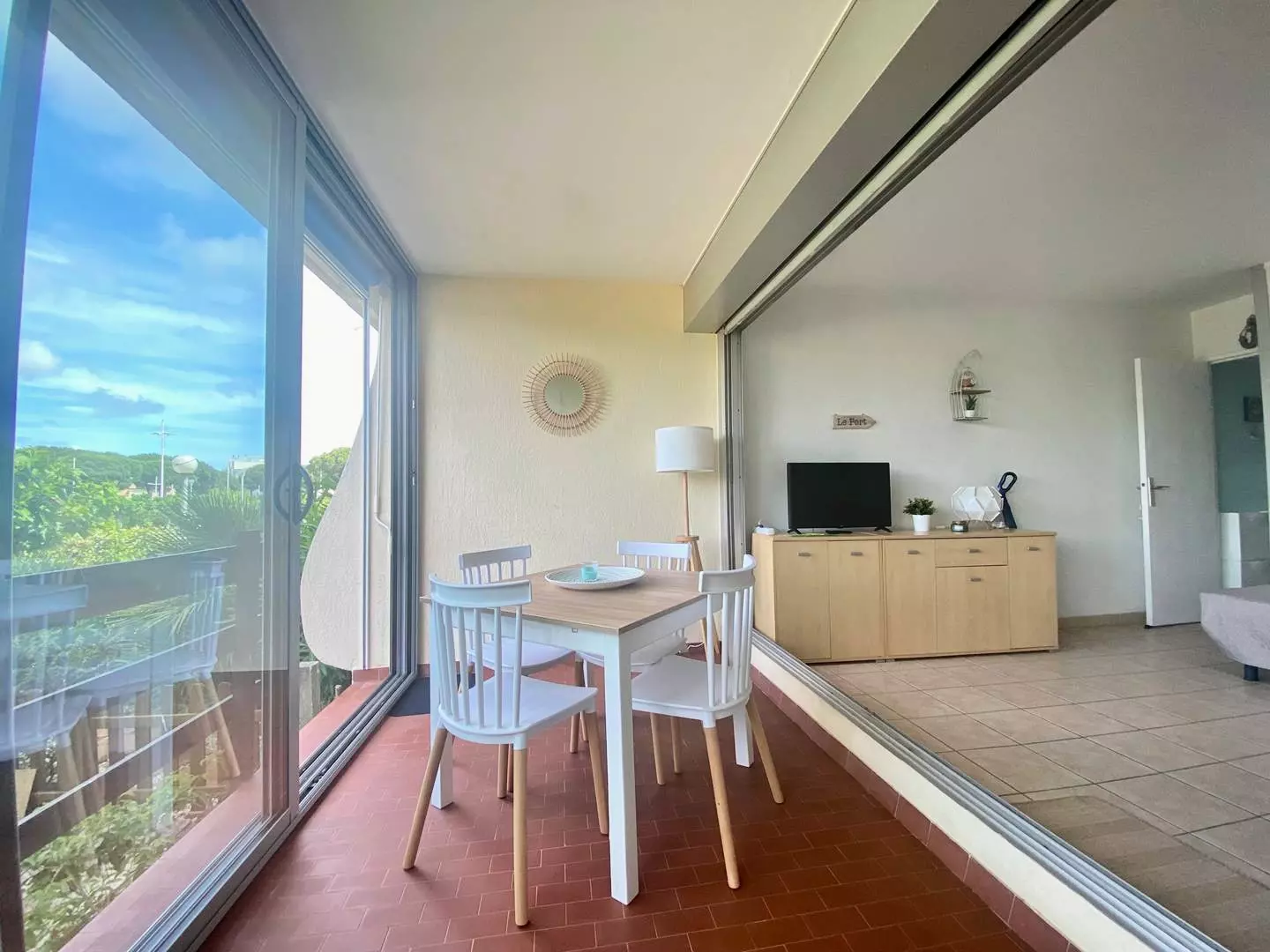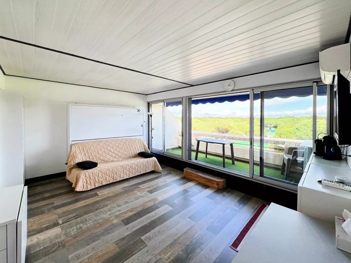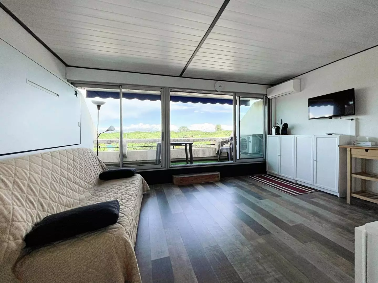 Situé au 3ème et dernier étage de la résidence Les Jardins du Port, nous vous proposons ce charmant appartement de 23m². Il se compose d un coin cuisine ouverte sur une grande pièce à vivre, une salle d eau.. Avec son canapé convertible et ses 2 lits simples depliables, sa capacité de couchage est de 4 personnes . Vous pourrez profiter de son grand balcon avec vue sur les jardins et les courts de tennis de Port Camargue. Vous bénéficierez d une place de parking et de la piscine de la résidence dès le mois de juin. Venez passer d agréables vacances au Grau du Roi et vous découvrir notre belle région.