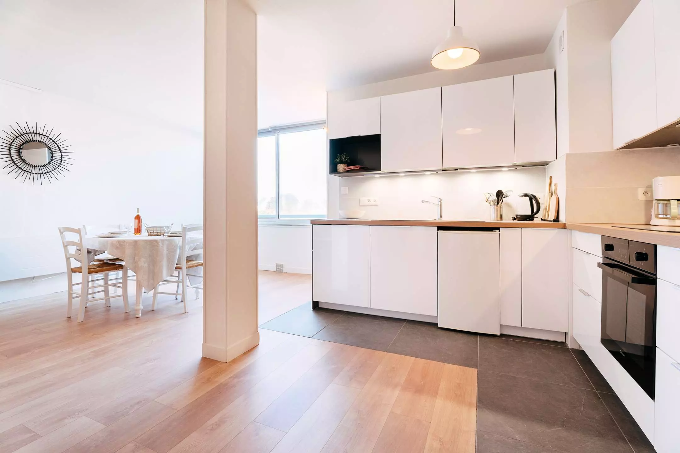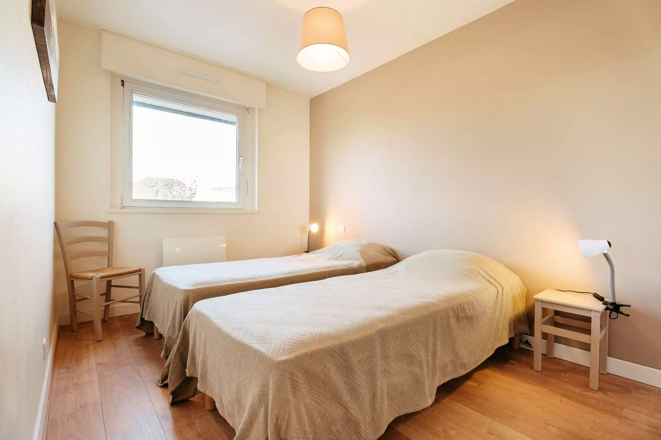 Dans le bourg de Carnac, à 200m de la place du marché et à environ 1.8 km de la Grande Plage et de la Thalasso, très bel appartement 3 pièces (env. 76m²) pour 6 personnes, situé dans la Résidence Les Korrigans (1er étage, porte 102).