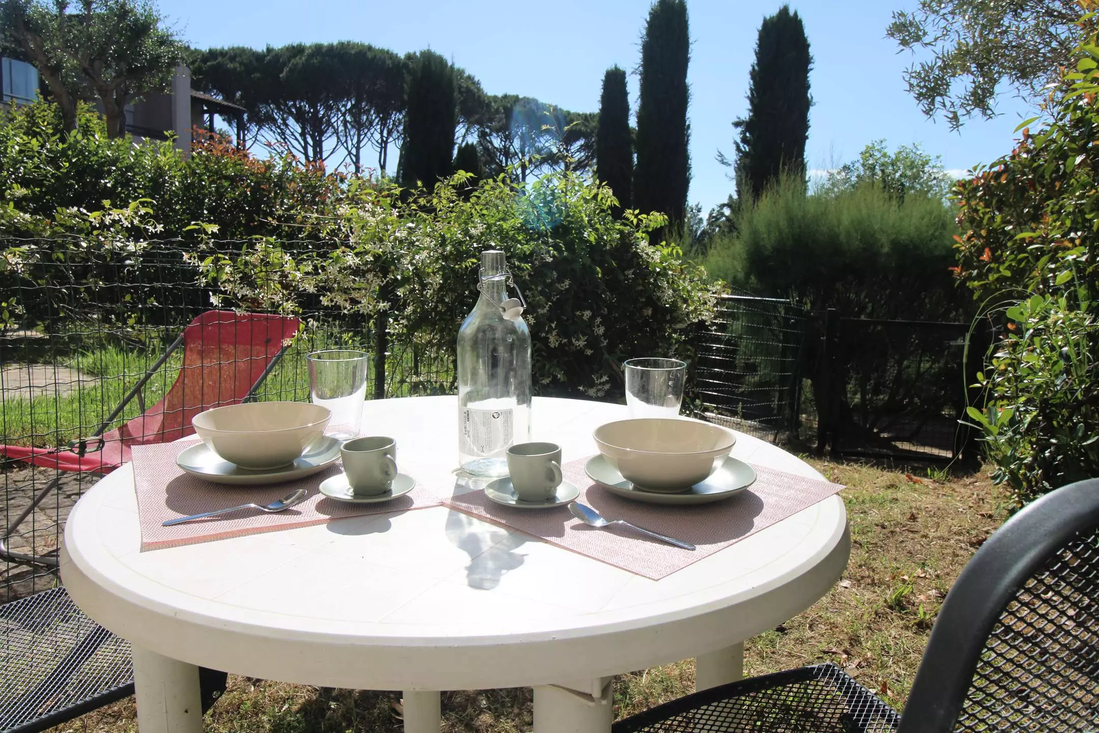 Profitez de la terrasse et du jardinet, avec un accès à la piscine et à la mer.