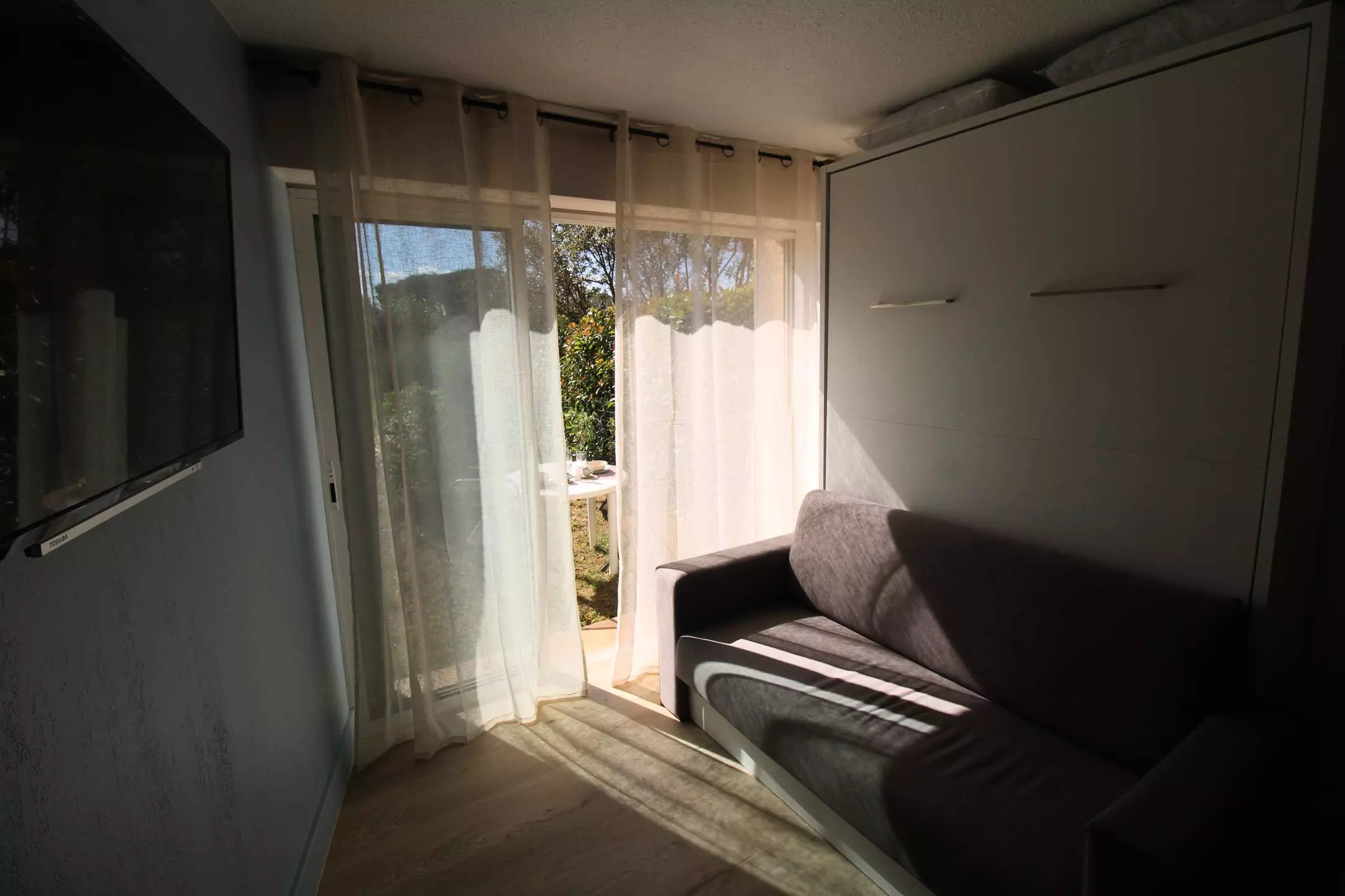 Venez découvrir ce charmant studio/cabine pour 4 personnes en rez-de-jardin, avec terrasse et jardinet situé dans la résidence " Ormarine des Marines de Gassin ", climatisé, bénéficiant d'un accès direct à la plage, d'une superbe piscine lagon de 650 m² ( ouverture du 23 mai à fin septembre ) et de 2 terrains de tennis.