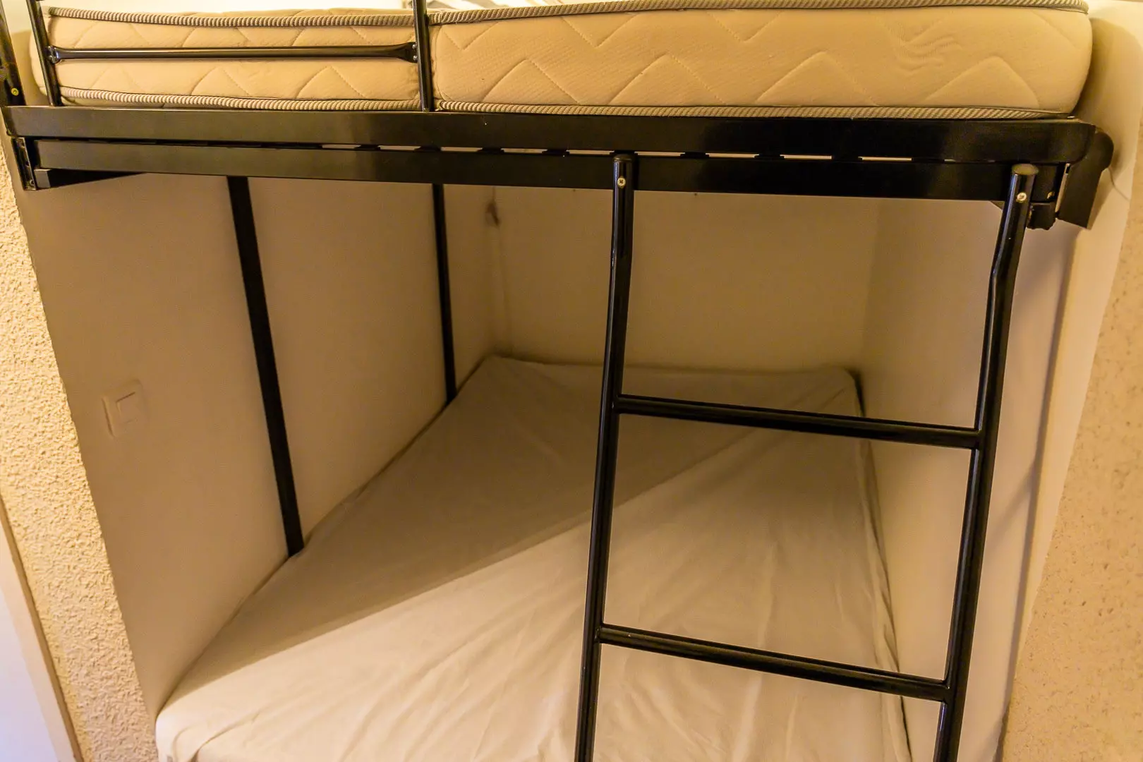 Le coin montagne dispose de deux lits doubles superposés (140 x 190 cm), d'espaces de rangement pour vos affaires personnelles et d'une télévision.