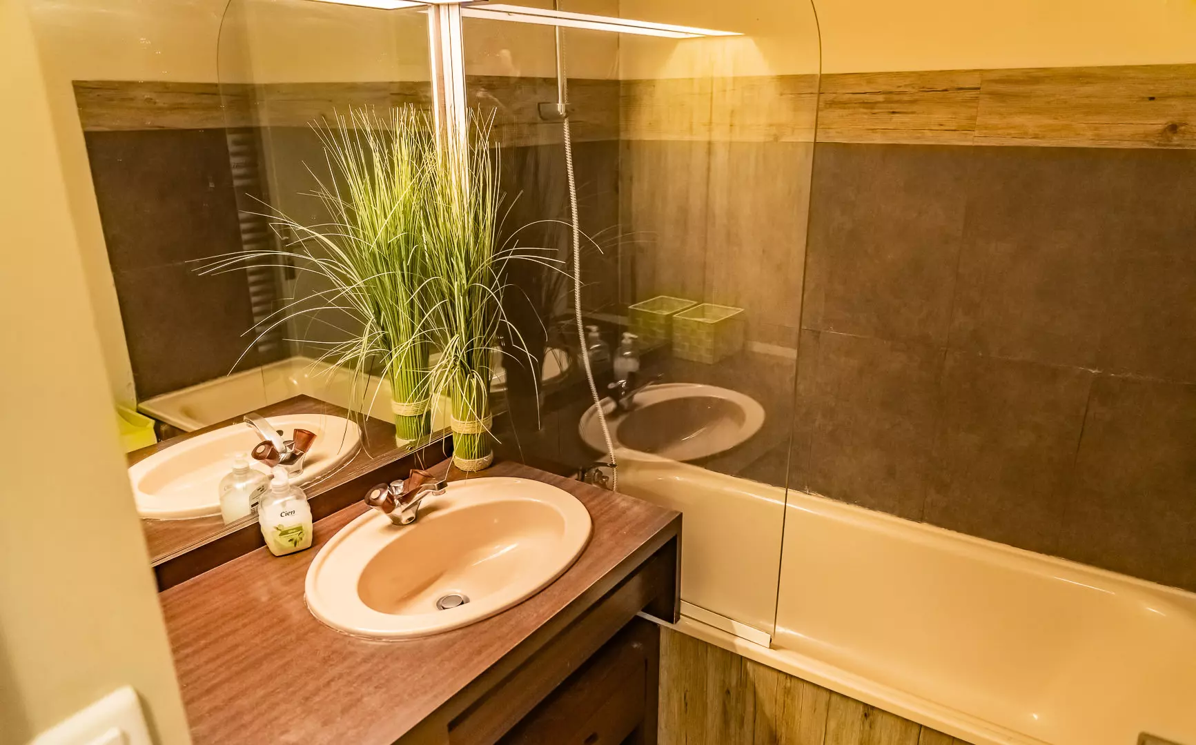 La salle de bain équipée d'un sèche-serviettes et d'un sèche-cheveux vous permettra de prendre un bain relaxant après une journée sportive en montagne.