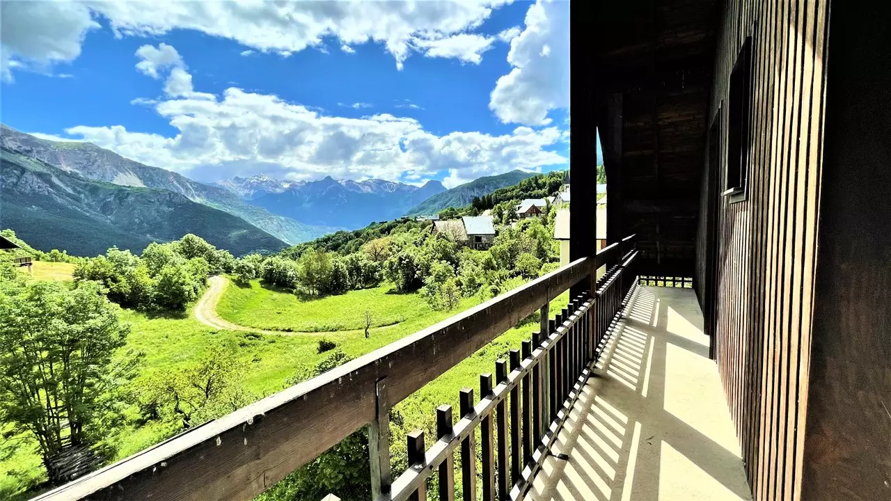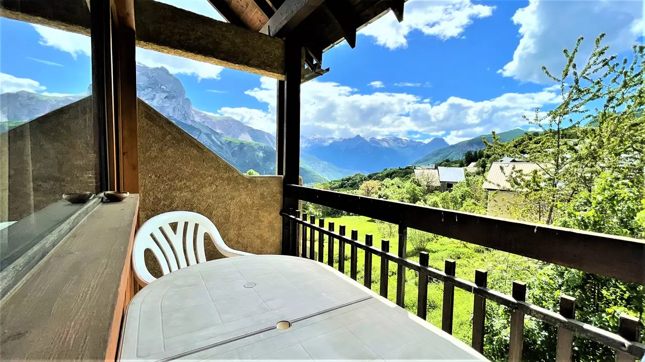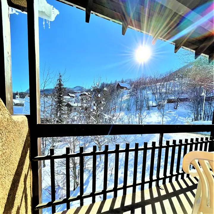 La résidence Les Soldanelles se situe au calme à Puy Saint Vincent 1400m, et dispose de deux balcons avec une vue panoramique sur les montagnes.