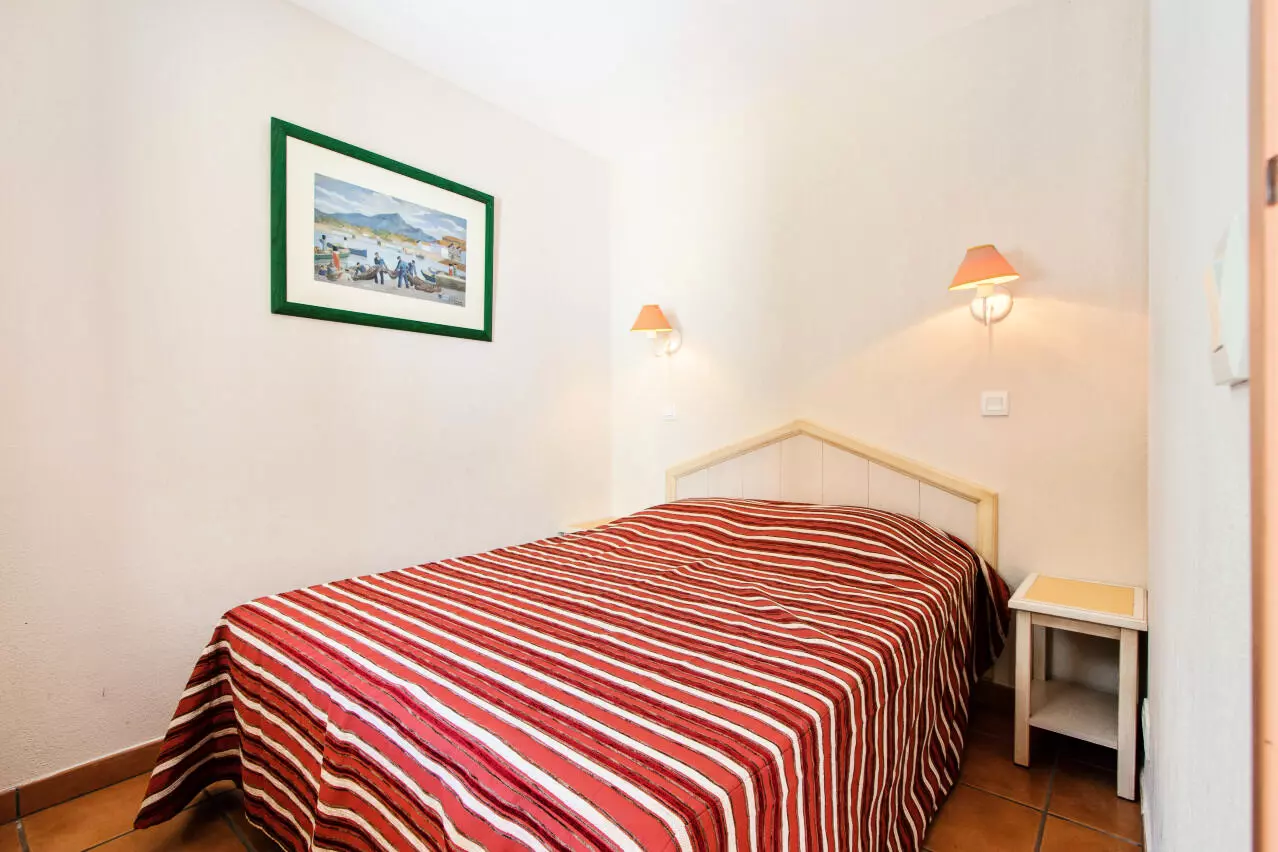 Chambres : 1 chambre avec 1 lit double et 1 coin cabine avec 2 lits simples superposés..